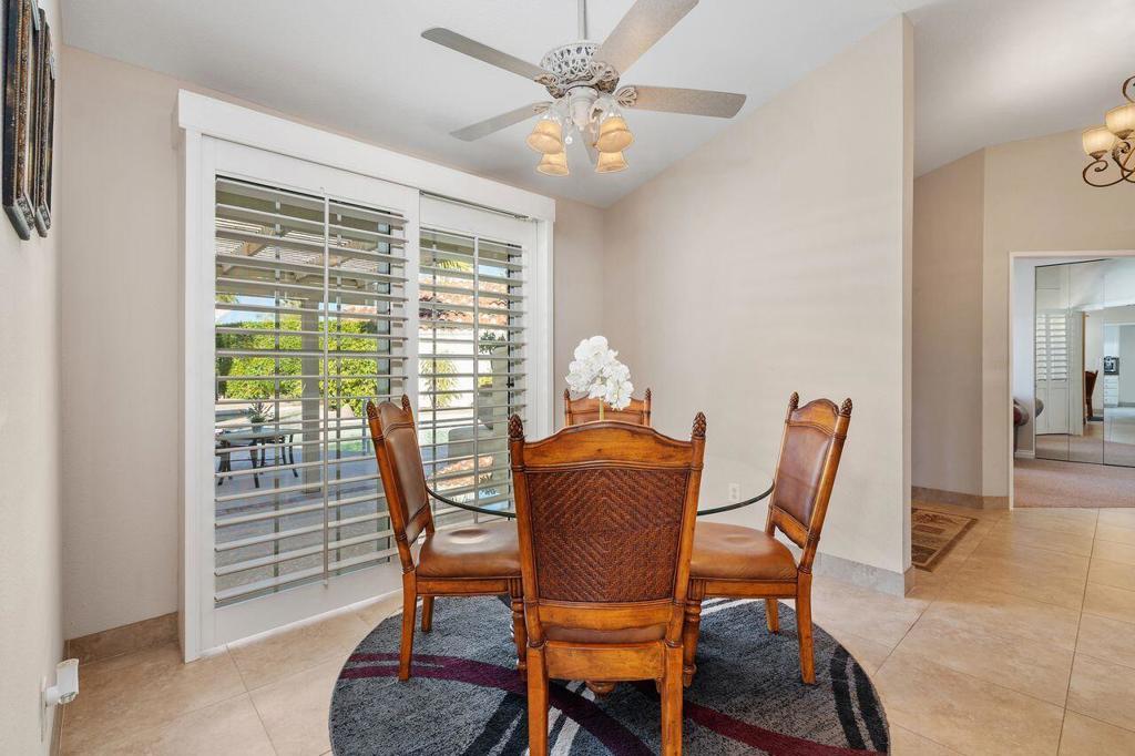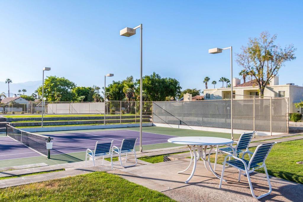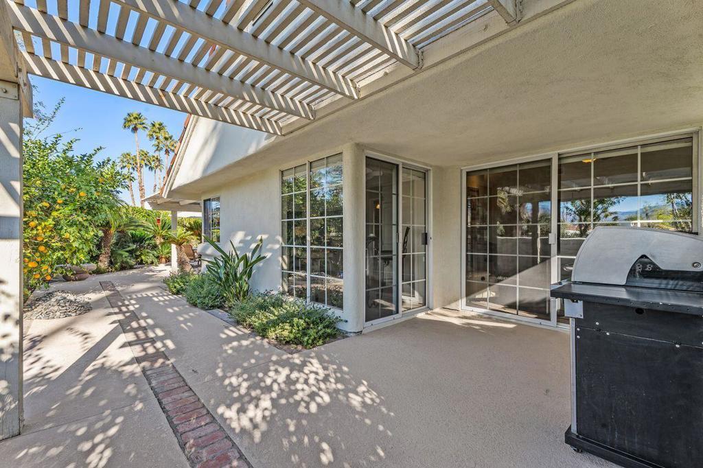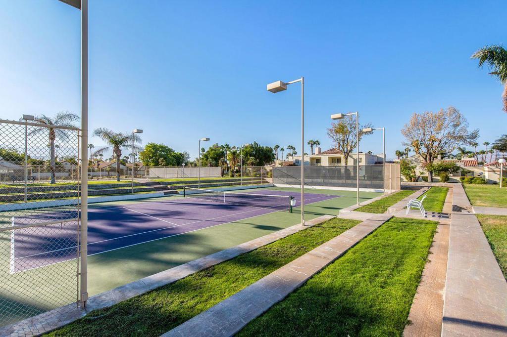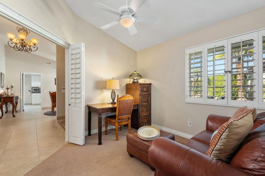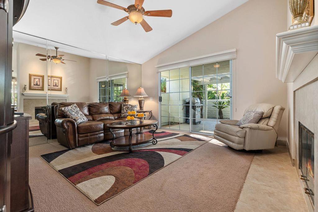 This well maintained Home in the Desirable Gated Community of Desert Breezes islocated on a quiet cul‑de‑sac,. This property features three‑bedroom two‑bath. Third bedroom currently being used as office. it offers resort‑style living with a private pool and spa surrounded by lush landscaping, mature palms, and citrus trees and gorgeous mountain views. A newer AC system and a two‑car garage add comfort and convenience.The home backs onto an expansive greenbelt--perfect for dog walking and outdoor enjoyment. Inside, you'll find a spacious primary suite with an en‑suite bath, a generous living room with a fireplace, and a formal dining room. Offered fully furnished per inventory.Desert Breezes is known for its pristine grounds and unbeatable location in Palm Desert, steps from La Quinta, and directly across from the world‑renowned Indian Wells Tennis Garden. Community amenities include low HOA, a state‑of‑the‑art fitness center, five pools and spas, four tennis courts, and pickle ball courts.