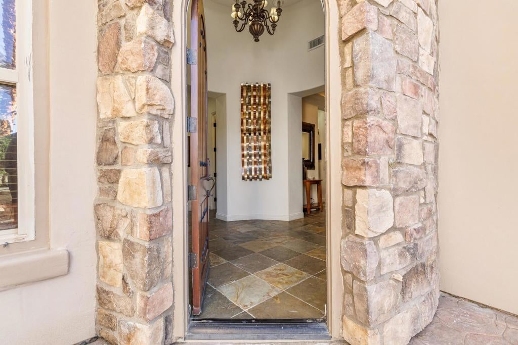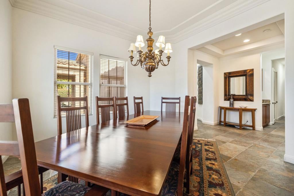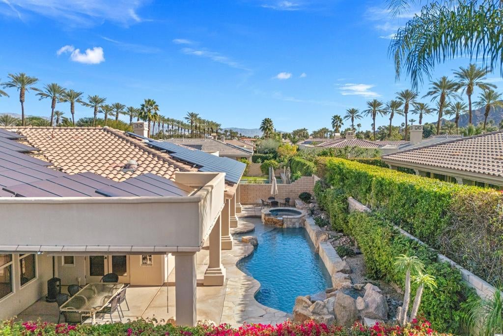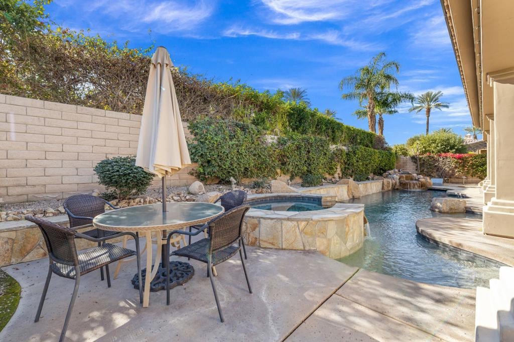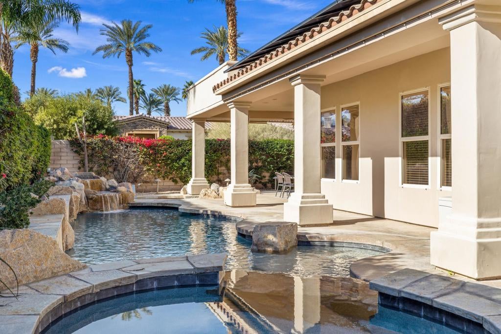 Welcome to Via Fiore, a stunning property located in the sought-after Indian Wells, CA. This luxurious home is nestled within Montelena, a secure gated community, and showcases an expansive layout on an impressive 10,019 square foot corner lot. Montelena is an immaculately kept gated community and combines privacy with security and benefits from low HOA fees. Its prime location is just steps from the Montelena private walking gate to the Tommy Bahama Miramonte Resort and close to exclusive golf clubs. As a resident of Indian Wells you enjoy special discounts at the Indian Wells Golf Resort, BNP Paribas Open, and all four Indian Wells resort properties.Upon entering the home, you'll be greeted by an open floor plan that seamlessly combines elegance and comfort. The spacious area provides ample room for relaxation or entertainment. The large kitchen, complete with modern appliances, plenty of storage space, and a walk-in pantry, is perfect for culinary enthusiasts who enjoy preparing delicious meals.The residence boasts three bedrooms and four bathrooms designed with thoughtful details to ensure your utmost comfort. The primary bedroom includes a large walk-in closets providing ample storage for personal items. The main guest bedroom is set up as an in-law suite with a built in kitchenette. A second on-suite guest bedroom and a separate office round out the design.The outside of this home is just as appealing as its interior. A south-facing backyard awaits where you can soak up the California sunshine. The recently renovated pool and spa offer an inviting spot to relax or entertain guests. An additional feature that sets this property apart is the sunken outdoor kitchen - ideal for hosting memorable gatherings amidst beautiful surroundings.This exceptional property also comes with a current rental agreement through 2026, with an option for extension into 2027 - making it a potentially lucrative investment opportunity.