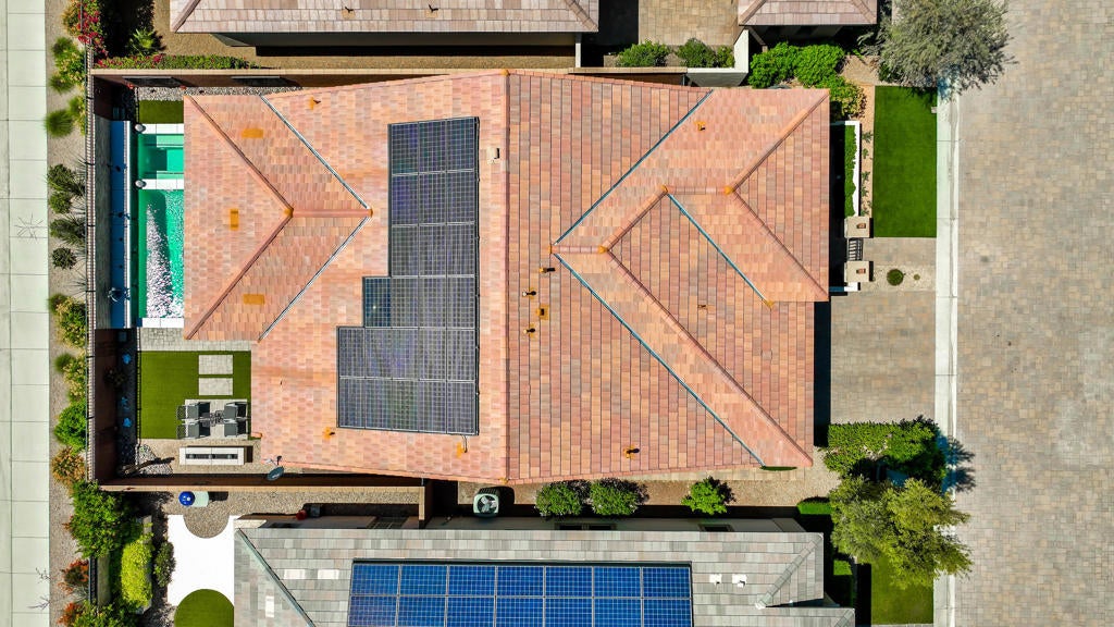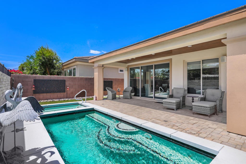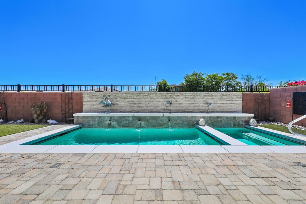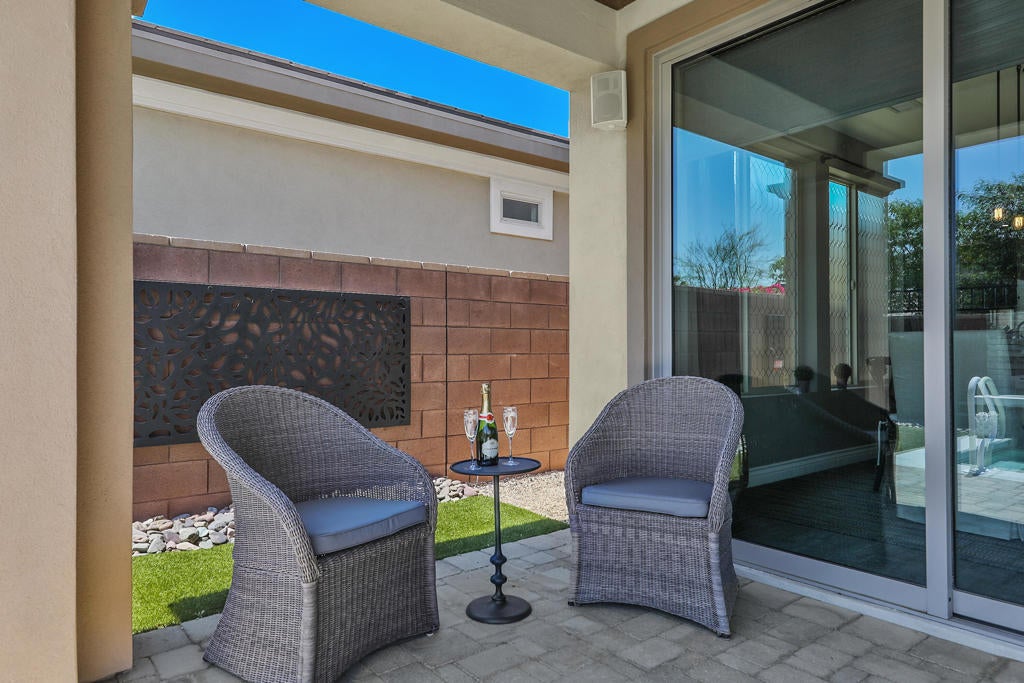 EXTRAORDINARY!!! Previous Model Home with Builder paid transferable lease for the solar panels.New homeowner will own in 9 yrs. Spectacularly, done and decorated from top to bottom, front to back. The kitchen was enhanced by the present owner to enlarge the Island for extra seating and prep space. Upgraded with a Fisher Paykel Range with 5 Burner Cook top of which middle burner has an extra brass heating ring specifically for Wok and high heat cooking. Large oven & warming drawer great for entertaining. The beautiful Quartz counter top accents this gorgeous kitchen, perfect for group gatherings. Side by side pantry with stainless pullout units for easy access. Corner cabinet with lazy Susan for convenience and loads of cupboard apace. 2 Wine Fridges, one in island and the other in builtin shelving unit for bar ware, books games etc. and seating space to just enjoy a book or a visit and is adjacent the open living and media area. Formal dining room table is also adjacent to the kitchen for serving and dining ease. Overlooking the serene pool & spa with seating to enjoy greeting the day or a quiet afternoon to unwind and relax poolside. The spacious Primary suite is tastefully decorated and also overlooks the beautiful backyard pool area. Luxury Bath has dual vanities and an extra large closet. The Guest Suite is separated for extreme privacy to the front of the home with triple windows offering a beautiful view of a park like setting and mountain top views. Den/office has built in shelving & tastefully appointed. Many more upgrades incl. the immaculate garage with epoxy floor, Tesla Charger, Newer AC unit with air scrubber, tankless water heater, and garage AC & humidifier. In the garage is the entry door to a spacious upstairs attic space, excellent for use as hobby room or just extra storage. The Polo Club at Trilogy is a private non-equity Club offering social membership which includes all of the amenities is your option to join. Initiation fee is $20,000 and $510 / mo. includes the HOA fee of $280 / mo. and $230 / mo. for the use of all of the resort and spa lifestyle amenities such as, Fitness Center, Tennis and Pickleball courts, Game and card rooms, Artisan Studio, Resort lap and fitness pools, meeting and multi purpose rooms, The flow strength and movement center, and June Hill's restaurant, & The Cuverie private dining & teaching kitchen. Seller is Highly Motivated!