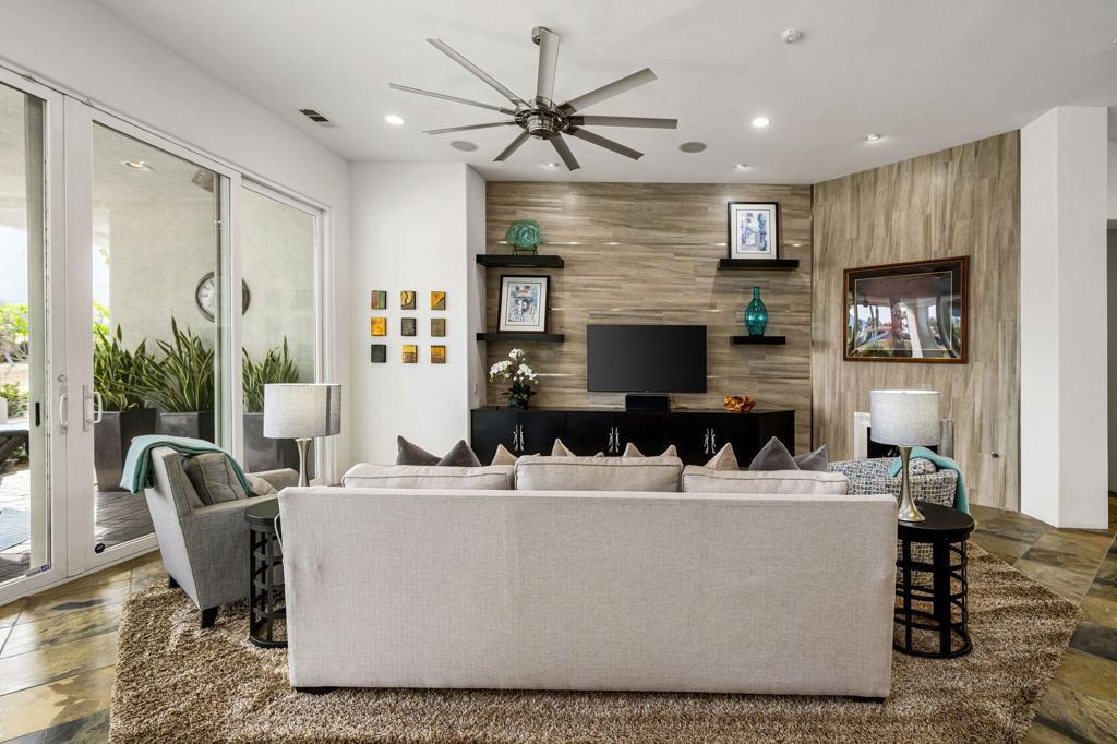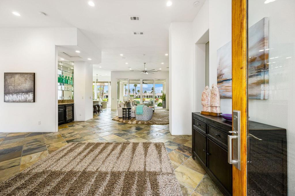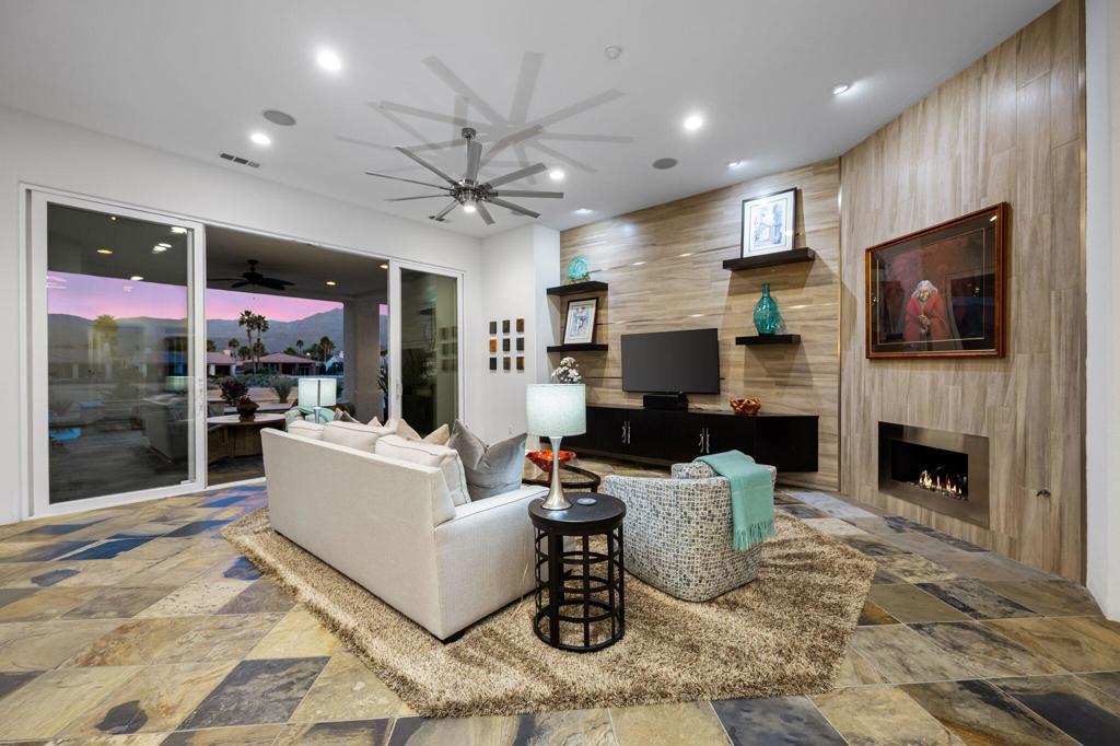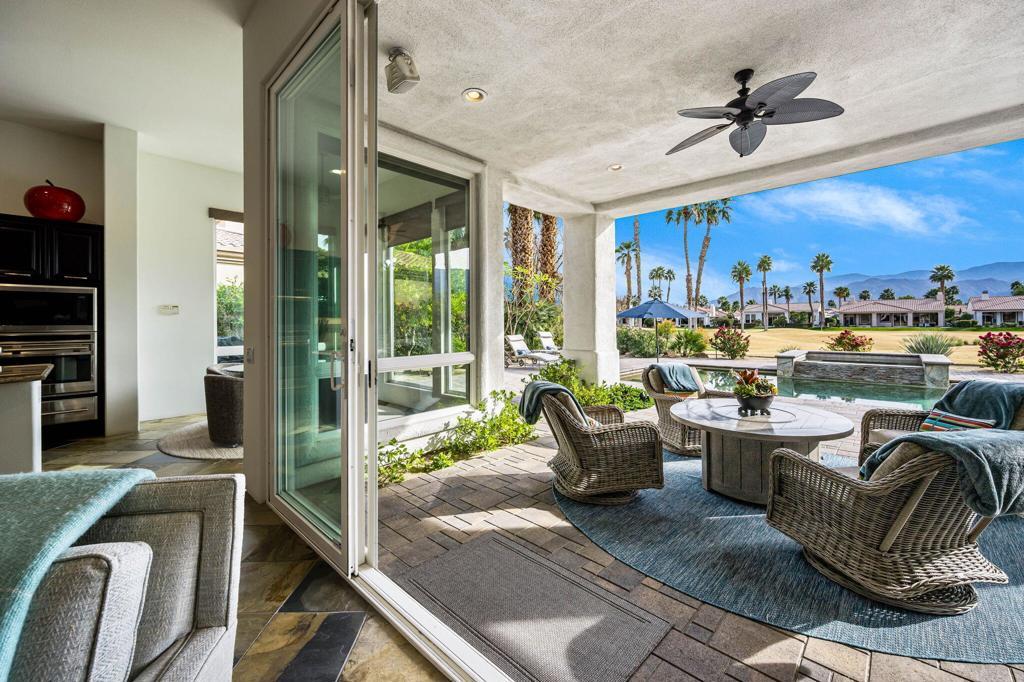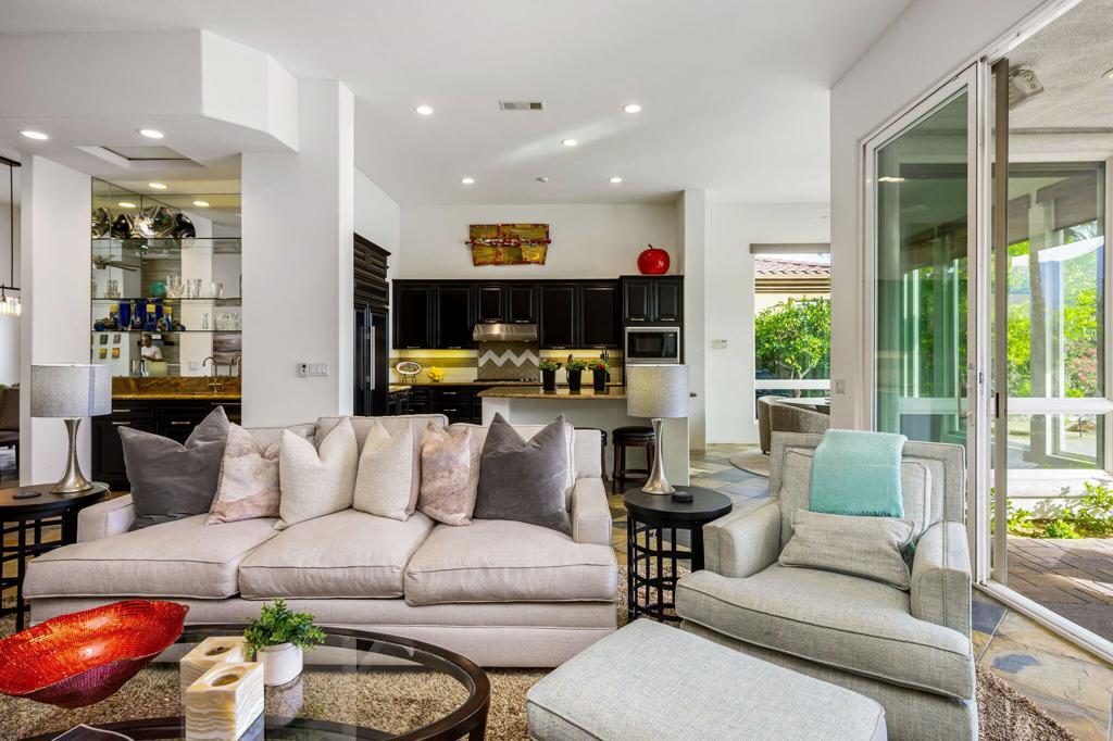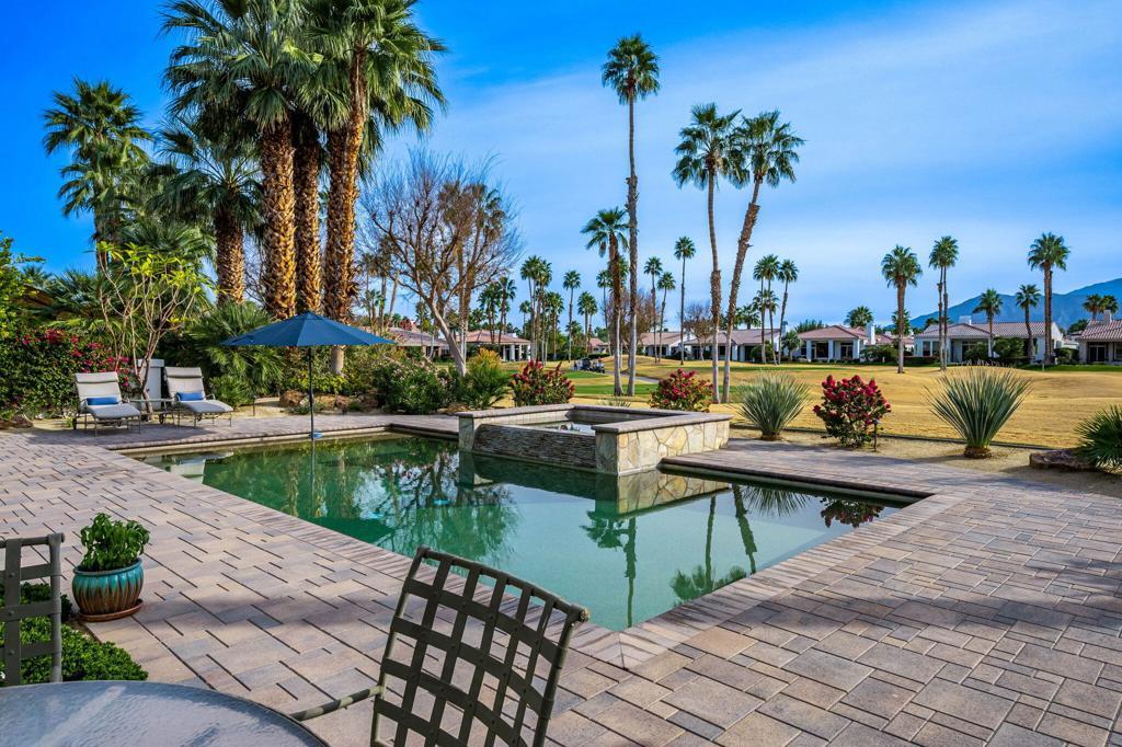 Fabulous South-facing Eagle Bend Plan 1 home with panoramic mountain views, perfectly positioned on the 17th hole of the signature Jack Nicklaus Tournament Course at world-renowned PGA West. Located on the quiet and highly desirable Bellerive Street, this exceptional residence offers 3,102 sq ft of luxury living and is loaded with premium amenities. The open floor plan features soaring ceilings and is flooded with beautiful southern light, making it ideal for entertaining and seamless indoor/outdoor living. The oversized lot showcases stunning mountain views, a private pool and spa, and overlooks the tees of a par-3 hole. The main home includes two spacious bedrooms with ensuite bathrooms, plus a powder room. A detached casita serves as the third bedroom and offers a private living area with a sofa sleeper, perfect for extended-stay guests. Upgrades include new kitchen countertops and backsplash, refinished cabinetry, high-end stainless steel Wolf and Sub-Zero appliances, custom fireplaces, a designer accent wall in the living room, new exterior pavers, a tankless water heater, and a mini-split system in the garage, among many others. Offered furnished, this home truly has it all--luxury, privacy, views, and location.