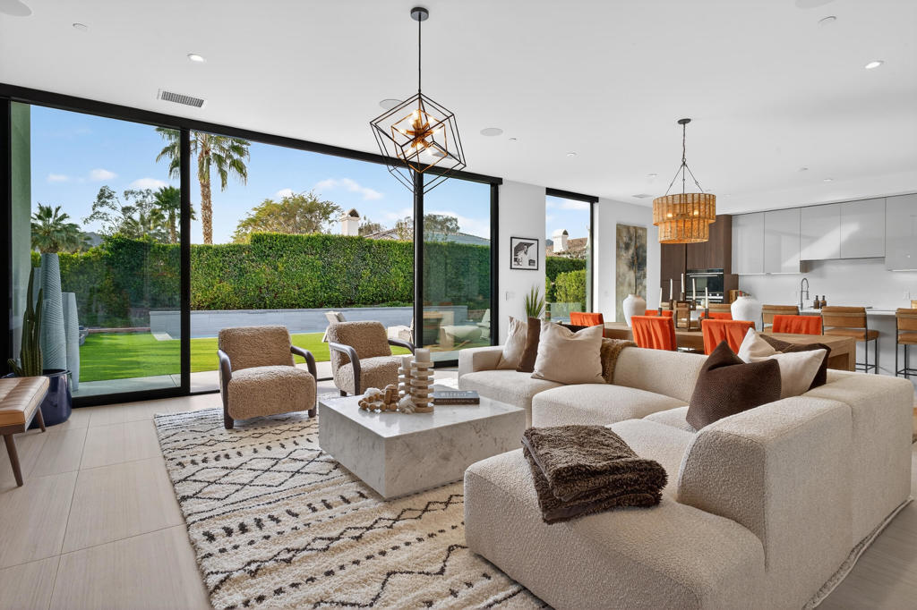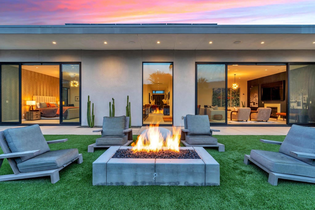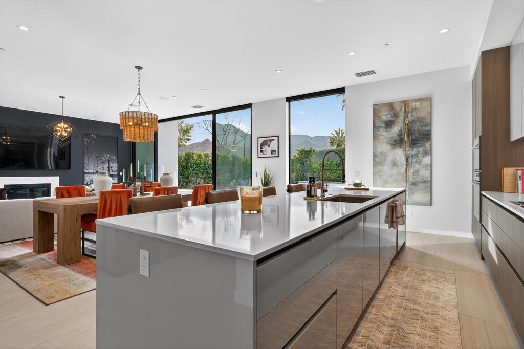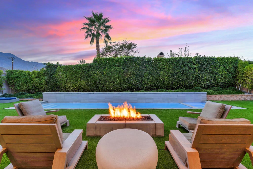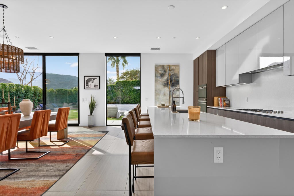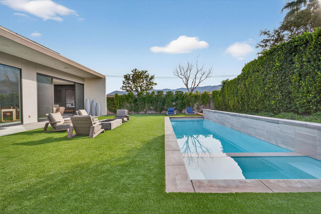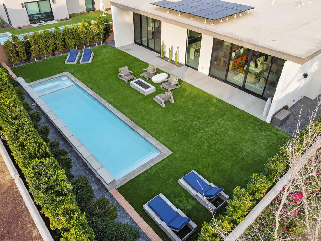 Welcome to your award-winning sanctuary in La Quinta, where modern luxury seamlessly intertwines with a blend of Italian inspired modern architectural brilliance. This stunning Zen Model residence comes fully furnished and stands as a testament to cutting-edge design and exceptional craftsmanship that only the Alta Verde group can create. As you step inside, you are greeted by a formal entryway that leads to an expansive great room with a centerpiece fireplace, bathed in natural light streaming through floor-to-ceiling glass windows that frame breathtaking views of the Santa Rosa Mountains. This home spans 2,708 sq. ft. and includes 3 bedrooms, 3.5 baths, and a versatile media/office room. Every detail of this home speaks of luxury, from the premier Italian cabinetry and Fisher & Paykel black glass appliances to the exquisite quartz countertops. The open floor plan is designed for both grand entertaining and serene relaxation. Highly upgraded designer elements include wall treatments, motorized window coverings and a surround sound system throughout the home. The primary bedroom is a tranquil retreat, featuring a luxurious bathroom with a stand-alone bathtub and a spacious walk-in shower. The expansive wall of sliding glass doors in the great room (and primary bedroom) leads to your private oasis. Outside, a sprawling artificial turf and desert-landscaped yard with a sparkling lap pool await.