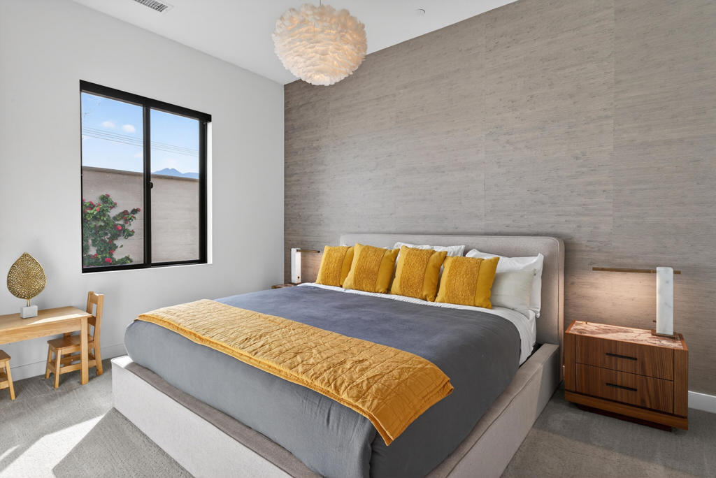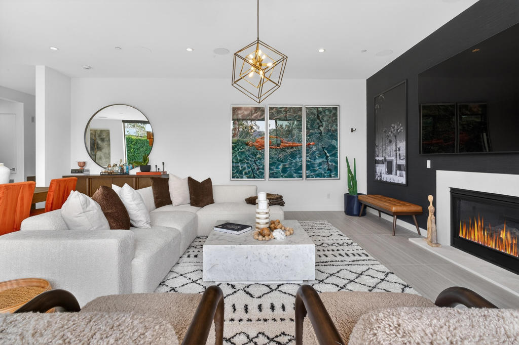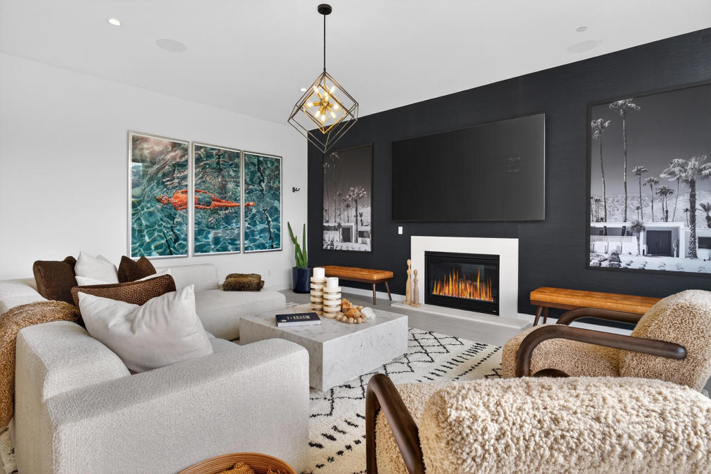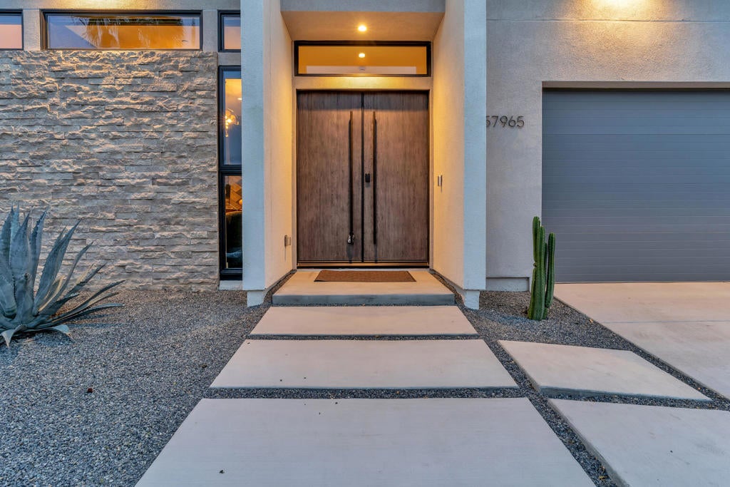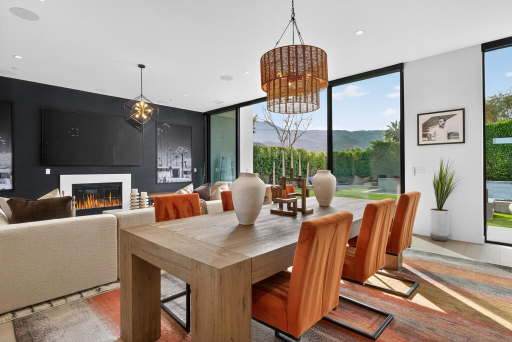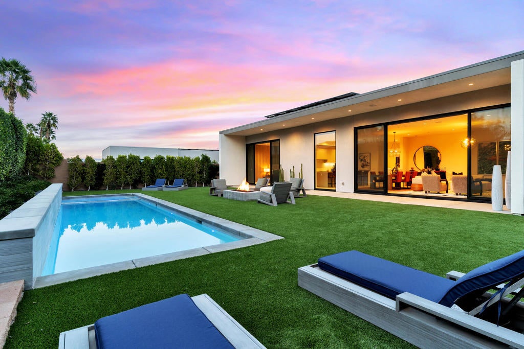 Welcome to your award-winning sanctuary in La Quinta, where modern luxury seamlessly intertwines with a blend of Italian inspired modern architectural brilliance. This stunning Zen Model residence comes fully furnished and stands as a testament to cutting-edge design and exceptional craftsmanship that only the Alta Verde group can create. As you step inside, you are greeted by a formal entryway that leads to an expansive great room with a centerpiece fireplace, bathed in natural light streaming through floor-to-ceiling glass windows that frame breathtaking views of the Santa Rosa Mountains. This home spans 2,708 sq. ft. and includes 3 bedrooms, 3.5 baths, and a versatile media/office room. Every detail of this home speaks of luxury, from the premier Italian cabinetry and Fisher & Paykel black glass appliances to the exquisite quartz countertops. The open floor plan is designed for both grand entertaining and serene relaxation. Highly upgraded designer elements include wall treatments, motorized window coverings and a surround sound system throughout the home. The primary bedroom is a tranquil retreat, featuring a luxurious bathroom with a stand-alone bathtub and a spacious walk-in shower. The expansive wall of sliding glass doors in the great room (and primary bedroom) leads to your private oasis. Outside, a sprawling artificial turf and desert-landscaped yard with a sparkling lap pool await.