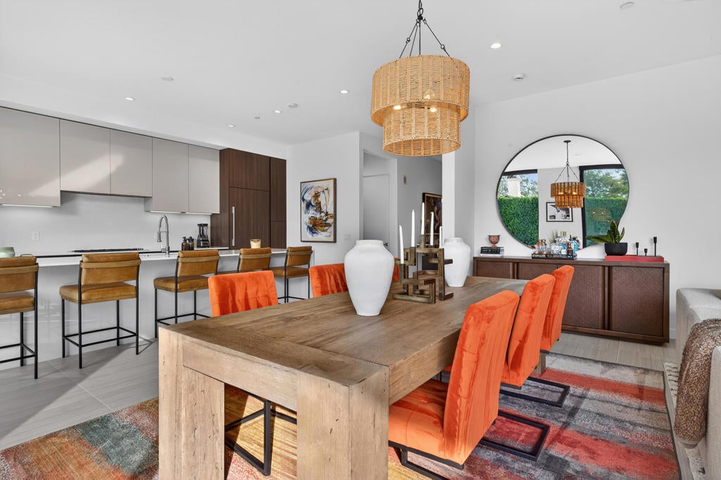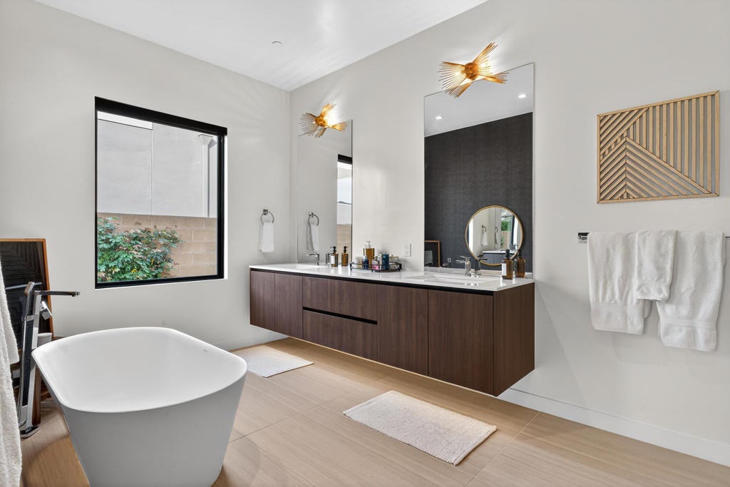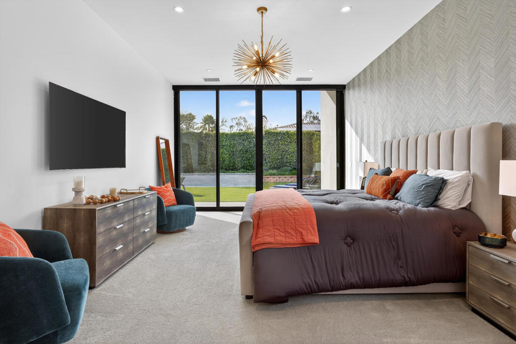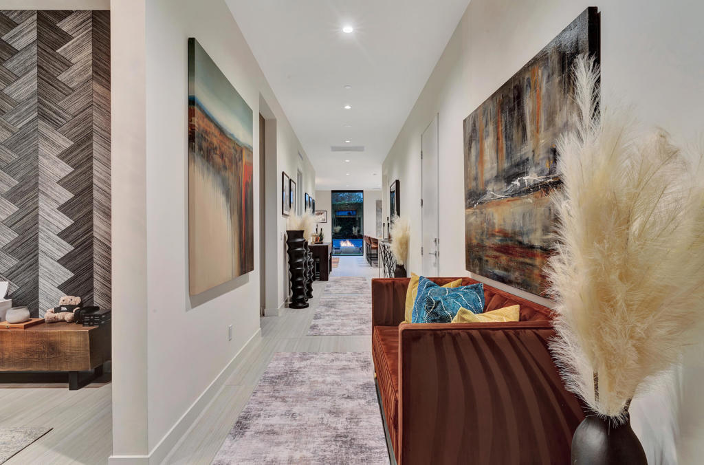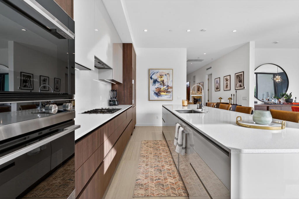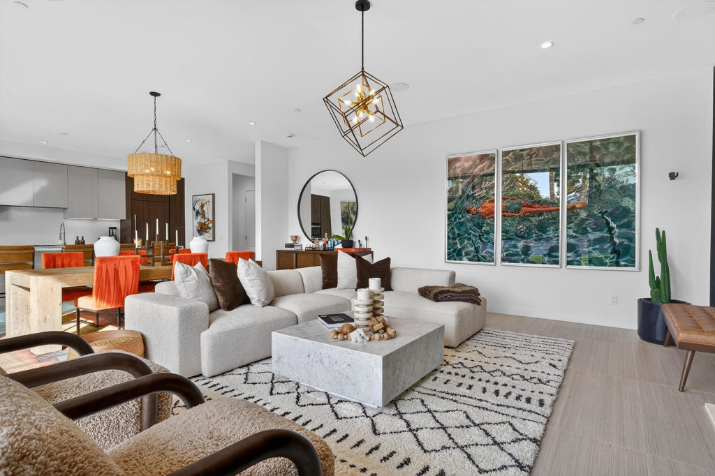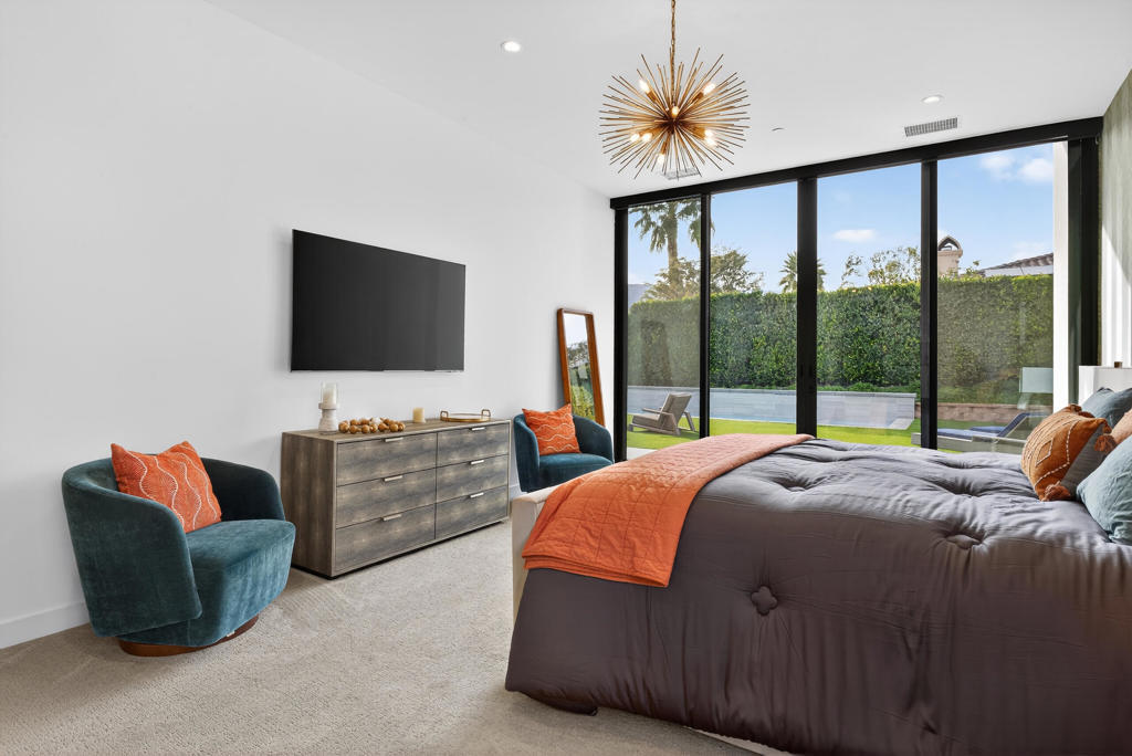 Welcome to your award-winning sanctuary in La Quinta, where modern luxury seamlessly intertwines with a blend of Italian inspired modern architectural brilliance. This stunning Zen Model residence comes fully furnished and stands as a testament to cutting-edge design and exceptional craftsmanship that only the Alta Verde group can create. As you step inside, you are greeted by a formal entryway that leads to an expansive great room with a centerpiece fireplace, bathed in natural light streaming through floor-to-ceiling glass windows that frame breathtaking views of the Santa Rosa Mountains. This home spans 2,708 sq. ft. and includes 3 bedrooms, 3.5 baths, and a versatile media/office room. Every detail of this home speaks of luxury, from the premier Italian cabinetry and Fisher & Paykel black glass appliances to the exquisite quartz countertops. The open floor plan is designed for both grand entertaining and serene relaxation. Highly upgraded designer elements include wall treatments, motorized window coverings and a surround sound system throughout the home. The primary bedroom is a tranquil retreat, featuring a luxurious bathroom with a stand-alone bathtub and a spacious walk-in shower. The expansive wall of sliding glass doors in the great room (and primary bedroom) leads to your private oasis. Outside, a sprawling artificial turf and desert-landscaped yard with a sparkling lap pool await.