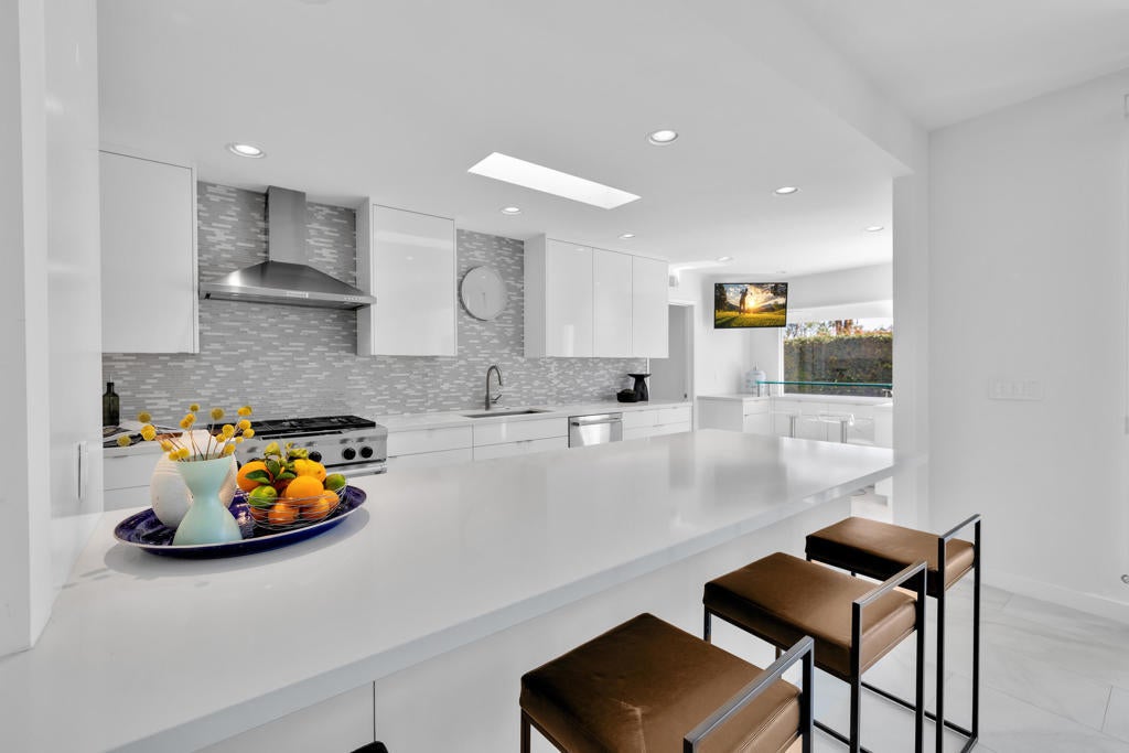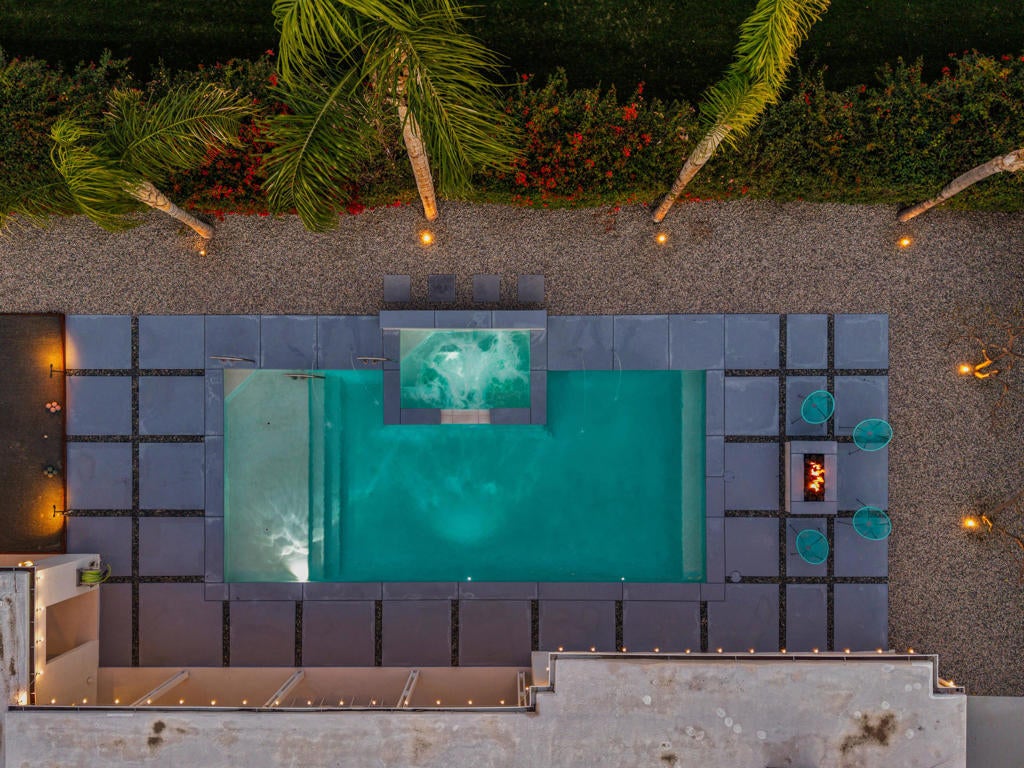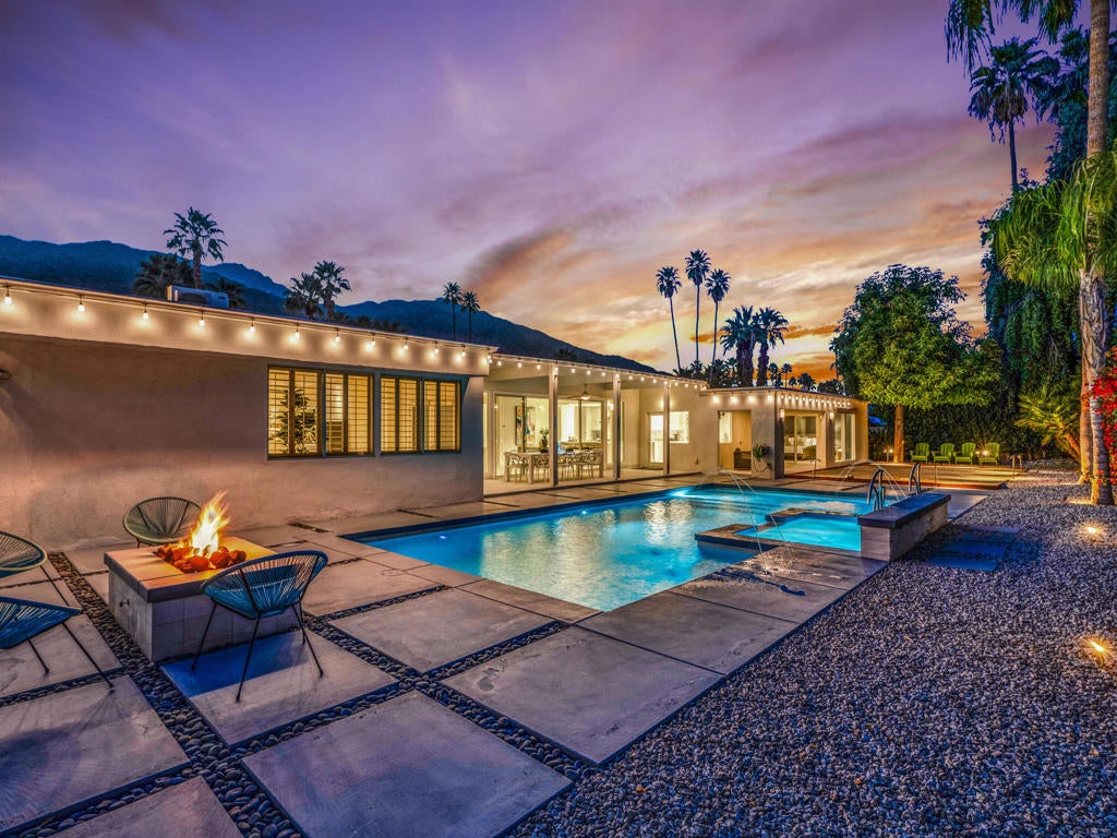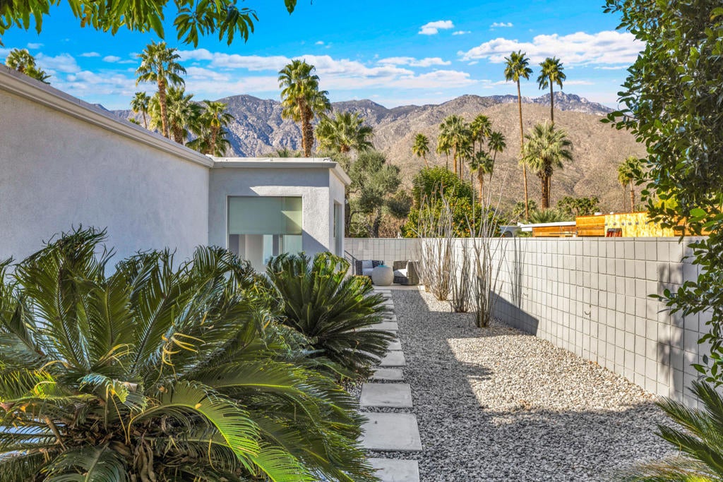 This distinguished mid-century residence is set on one of the largest parcels along Alhambra Drive in the Indian Canyons enclave of Palm Springs. Designed by Boris Gertzen, the home reflects classic desert modernism, highlighted by his signature marble faced fireplace, strong horizontal lines, and expansive walls of glass that connect interior spaces to the outdoors.The floor plan is open and intentional, allowing natural light throughout while thoughtfully separating bedrooms, each with mountain views. The primary suite opens directly to the covered patio and pool, while additional bedrooms enjoy individual access to exterior spaces. The central kitchen is modern and efficient, featuring KitchenAid(r) appliances, a large built-in refrigerator, and a separate built-in ice maker designed to support both daily living and entertaining. Living and dining areas are generous and fluid, complemented by a game room and a family room with a substantial wet bar. Storage is abundant, including multiple interior closets, an oversized walk-in closet in the primary suite, exterior storage for pool essentials, and additional closets in the spacious garage.The landscaped grounds are framed by views of Mount San Jacinto and include a Zanzibar white mini pebble pool and spa completed in 2020 with Pentair equipment, water features, and cascading spa. Additional amenities include a built-in firepit, lighted bocce court, multicolored bougainvillea hedge, white plumeria, multiple citrus trees, and a mature fruiting mango tree.Located on the 17th fairway of the historic Indian Canyons North Golf Course, the property offers seclusion, open views, and a setting within one of the least windy areas of town. The Indian Canyons neighborhood is known for premier mountain views, a strong sense of community, underground utilities, and access to hiking trails, all just minutes from shopping and dining.