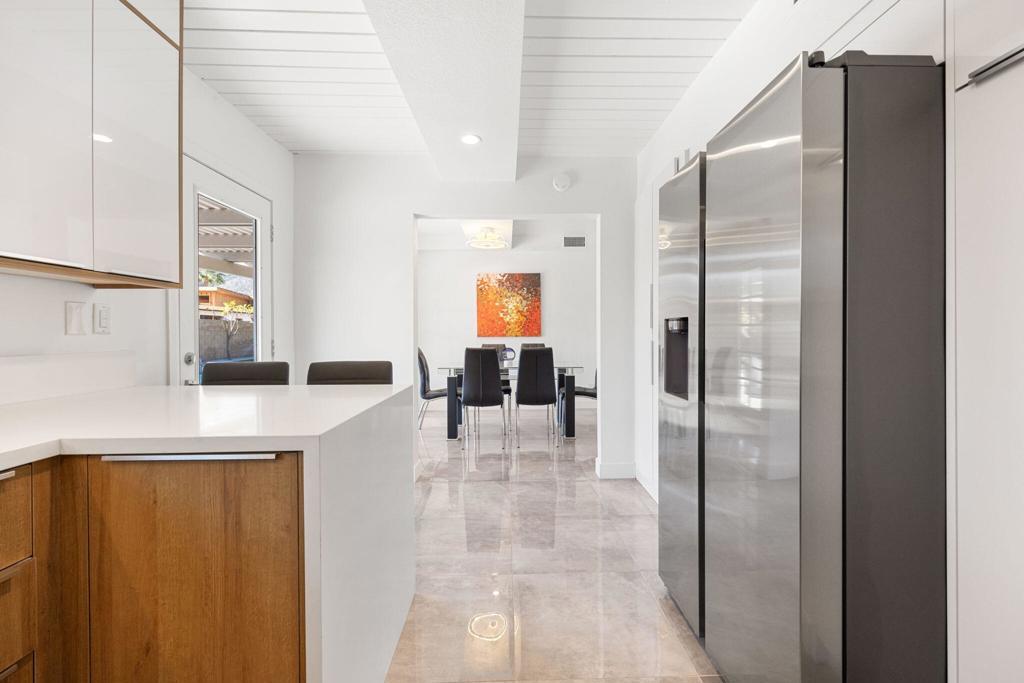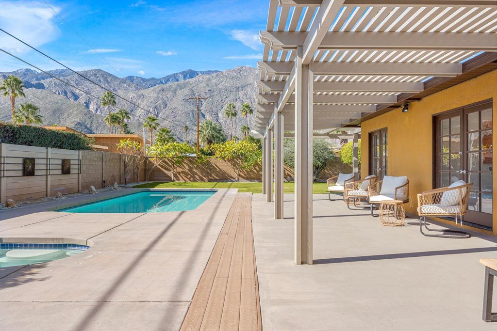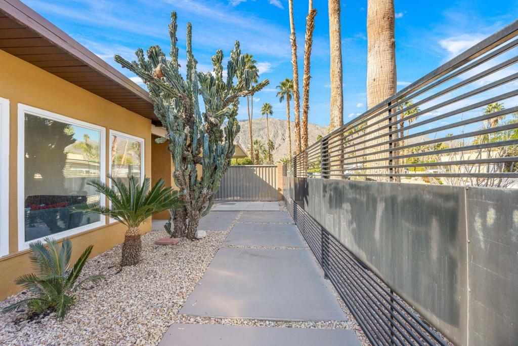 Nestled in historic Tahquitz River Estates, this 1950 single level home blends midcentury pedigree with contemporary luxury. Remodeled just three years ago, it now features marble floors flowing through open living spaces and a chef's kitchen outfitted with custom cabinetry, quartz counters and premium appliances. The property sits on fee land, meaning you own the land outright, with no lease. 3 serene bedrooms boast spa inspired baths and custom closets, while upgraded lighting, fans and a new HVAC system with Nest control ensure comfort year-round.Outside, desert living reaches its pinnacle. A brand new pool and spa with updated pump and heating anchor the lush backyard oasis, framed by mature palms and manicured lawns. An outdoor shower, misting system and gas fire pit create resort style amenities perfect for entertaining. From the patio and shimmering pool, you can gaze across the beautifully landscaped yard to the rugged peaks of the San Jacinto Mountains perfect for sunset cocktails and relaxed mornings.Tahquitz River Estates is prized for its palm lined streets, Spanish revival cottages and mid century modern homes. South Palm Canyon Drive steps away, offers acclaimed dining and boutique shopping. Hiking trails, the Moorten Botanical Garden and downtown Palm Springs are minutes away, marrying serenity with convenience.Investment minded buyers will appreciate that the neighborhood's vacation rental percentage is currently below the citys 20 percent cap.With its blend of mid century heritage, recent high end updates, fee simple ownership and enviable location, 971 E San Lucas offers a sophisticated desert lifestyle and strong investment potential.