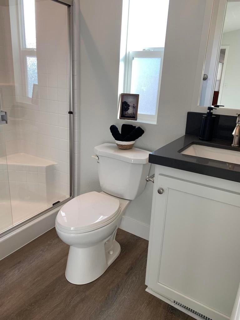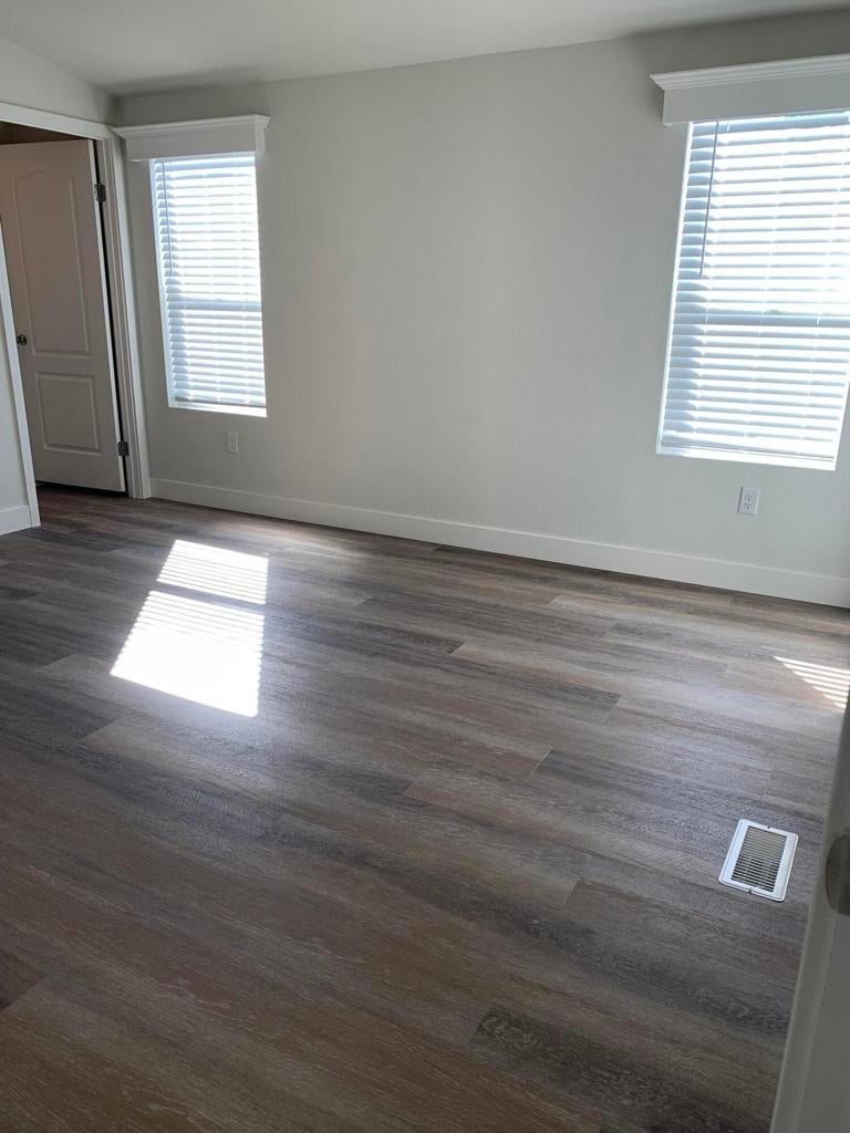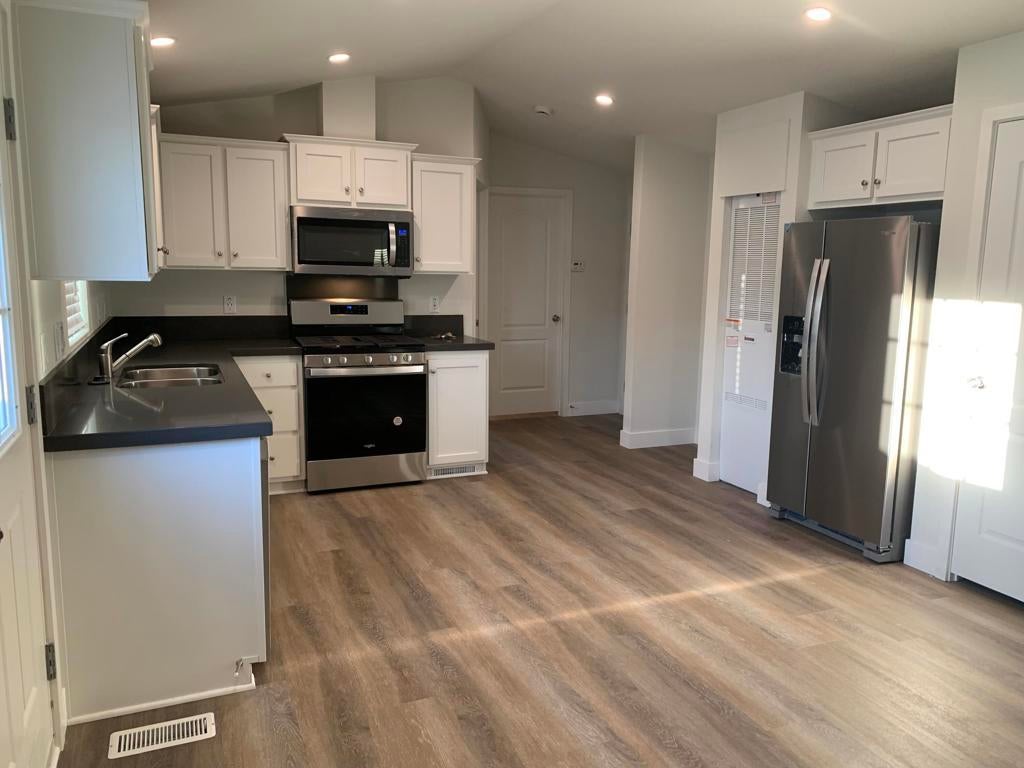 RENT SPECIAL: $100 OFF FIRST 6 MONTHS - This brand-new 2024 Fleetwood manufactured home has 2 bedrooms, 1 3/4 bathrooms and is approximately 900 sq ft. The kitchen has been upgraded with shaker style hardwood cabinets, quartz countertops and backsplash, undermount stainless steel sink. The stainless-steel appliance package includes 21 CF refrigerator with icemaker & water in door, gas self-cleaning range, over-range microwave, dishwasher, and a garbage disposal. The bedroom and living room are carpeted; there is vinyl plank flooring throughout the remainder of the house. The master bathroom has a walk-in shower, quartz countertops and backsplash, and a rectangular undermount sink. Master bedroom includes walk-in closet. The guest bathroom has a glass enclosed tub/shower, quartz countertop and backsplash, and a rectangular undermount sink. Canned lighting, kitchen pantry, 2'' faux wood blinds, area for stackable washer and dryer, covered carport parking and more!
