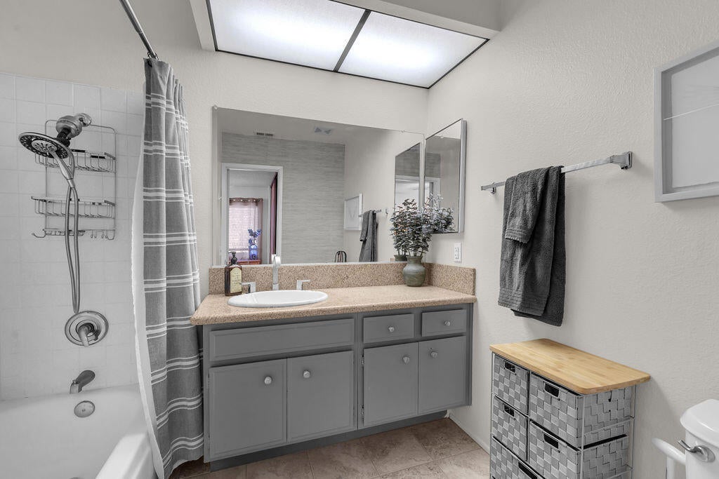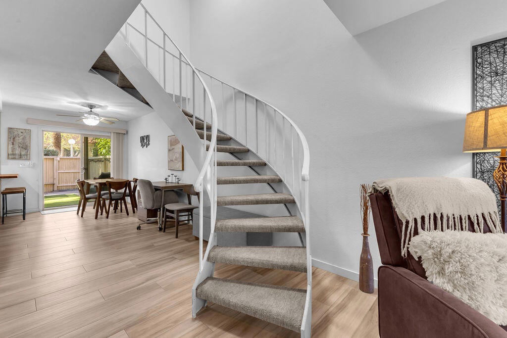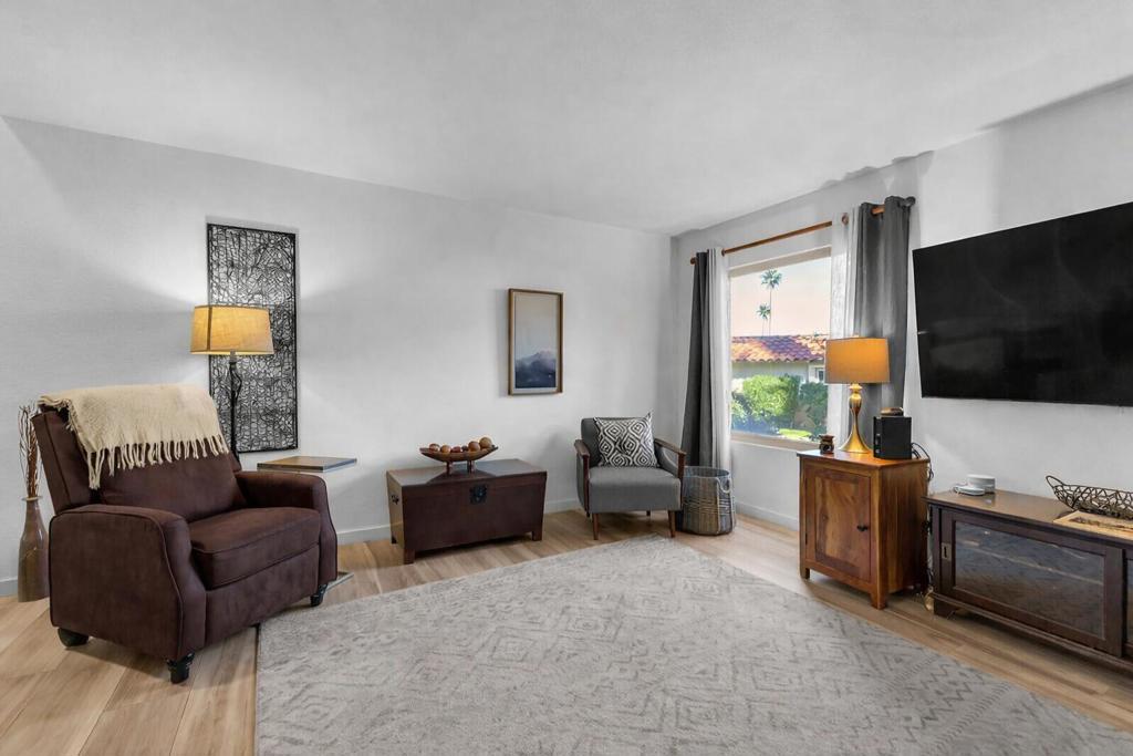 Nestled within the desirable Deep Canyon enclave of South Palm Desert, this two bedroom, two and a half bath townhouse offers a composed blend of contemporary design and serene, greenery lined surroundings. Filled with natural light, the home feels bright and inviting throughout, elevating each living space with an effortless sense of ease. Thoughtfully updated with modern finishes and intentional enhancements, the interiors strike a refined balance between comfort and style, feeling current, clean lined, and easy to live in. Outside, lush landscaping sets a tranquil, resort like tone, complemented by an appealing suite of recreational amenities including tennis courts, pickleball courts, and bocce ball courts, along with a communal garden that lends itself beautifully to seasonal rental enjoyment. Ideally located just one and a half miles from El Paseo, you are effortlessly connected to Palm Desert's most celebrated high end shopping and fine dining, offering a lifestyle that feels both vibrant and refined. An exceptional opportunity to experience the best of desert living, this residence is where outdoor leisure, modern convenience, and everyday calm converge into an elegant retreat in which luxury and relaxation comfortably coexist.