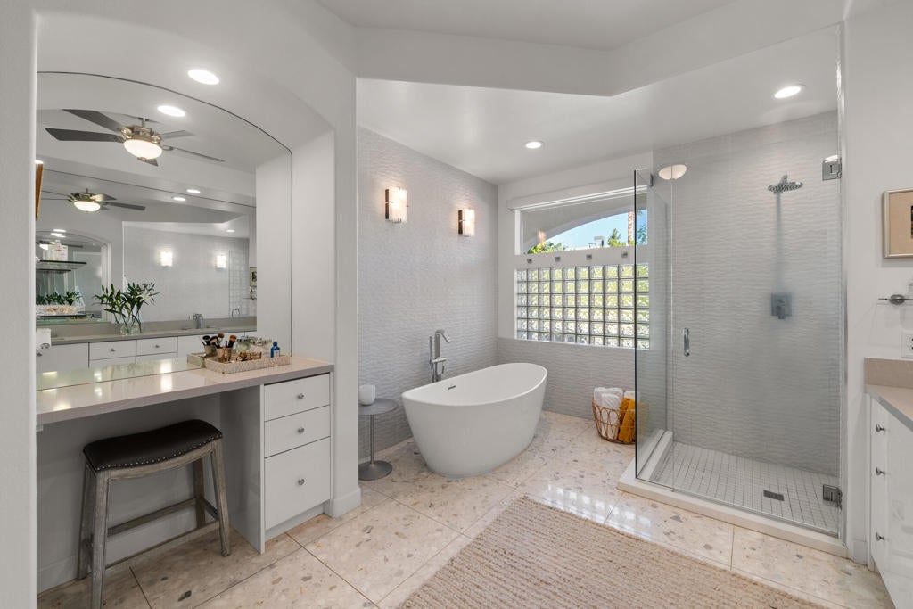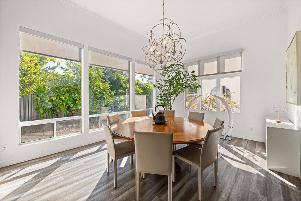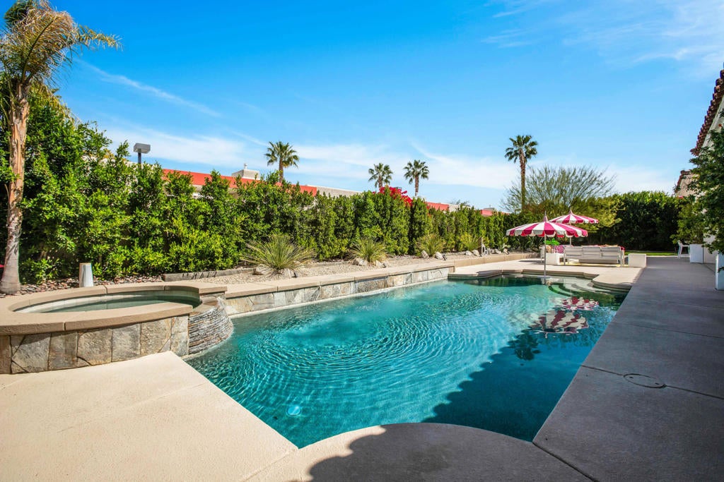 Located in the prestigious Colony at El Mirador, this beautifully remodeled residence combines elegance, comfort, and modern efficiency. The home offers approximately 3,505 sq. ft. with three bedrooms and three bathrooms in the main house, plus a detached casita with private bath--ideal for guests or a private retreat. The spacious primary suite offers a large walk-in closet and a sizable bath providing a spa-like oasis experience. High-volume ceilings and bright, airy rooms create an inviting atmosphere throughout the enter property. The gourmet kitchen is designed for both function and style and includes filtered/instant hot water with an oversized island and generous amounts of storage. The climate-controlled wine cellar features storage for more than 1,200 bottles creating the perfect setting to showcase, enjoy, or share your favorite vintages. This residence provides ample space for entertaining including a private backyard retreat with a sparkling pool, lush landscaping, and breathtaking mountain views. With a 51-panel owned solar system and an AC split in the garage you can enjoy eco-friendly living while saving on energy costs.Book your private tour today of this exquisitely remodeled desert sanctuary offering luxurious living, private spaces for relaxation, and exceptional entertaining
