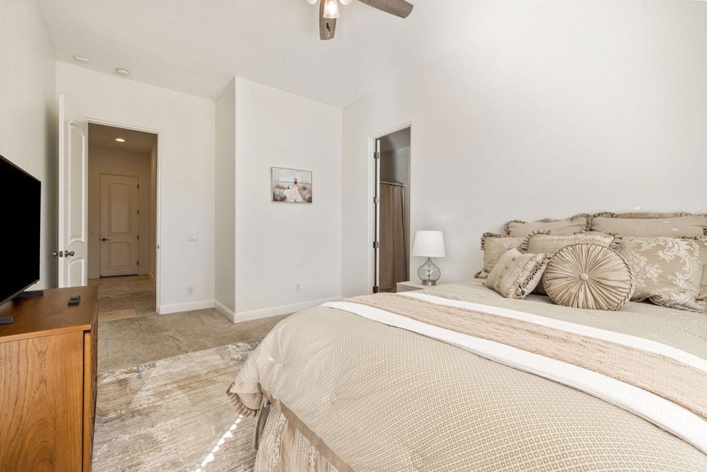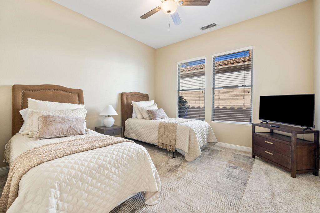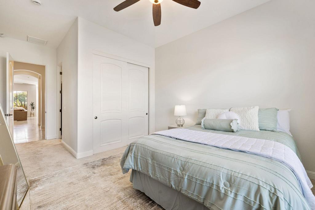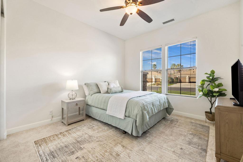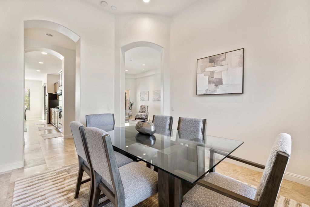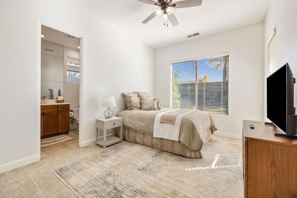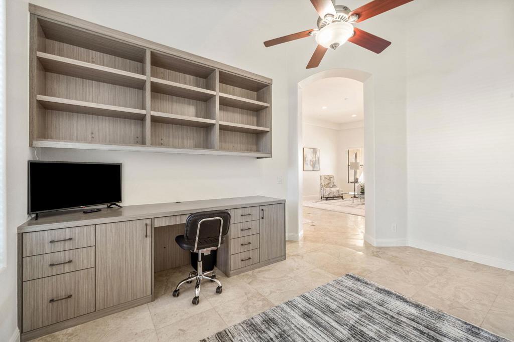 Welcome to Talante Retreat, a luxury seasonal or long-term rental home in the gated community of Talante in La Quinta! Spacious and beautifully appointed, this private desert retreat offers approximately 3,640 square feet on a single level with 4 bedrooms, each with its own en suite bathroom and walk-in closet, plus a dedicated den/office with custom built-in cabinetry and a formal dining room. Ideally located just minutes from the Empire Polo Grounds, Indian Wells Tennis Garden, world-class golf courses, shopping, dining, and entertainment, this home places you in the heart of La Quinta while still offering a peaceful, private sanctuary.Enter through the grand wrought-iron double doors to an elegant interior featuring travertine flooring, coffered ceilings, and expansive living areas designed for both entertaining and relaxing. The spacious layout offers ideal separation and privacy with a highly sought-after split floorplan, creating a comfortable retreat for family and guests alike. The primary suite serves as its own private haven, complete with a sunroom perfect for morning coffee, reading, or unwinding at the end of the day.The generous living spaces are perfect for gathering with friends or enjoying quiet time at home. The formal dining room anchors the main living space, while the thoughtfully designed layout flows seamlessly throughout the home.Step outside to your own private desert oasis set on a spacious cul-de-sac lot. The backyard features a newly constructed pool surrounded by lush landscaping, creating a tranquil space to relax, soak up the sun, and enjoy the La Quinta lifestyle year-round.Additional highlights include a three-car garage, low HOA dues, and fresh interior paint throughout. Offered furnished or unfurnished and move-in ready, this exceptional Talante home delivers the perfect blend of luxury, comfort, and privacy in one of La Quinta's most desirable gated communities. Variable seasonal rates apply.