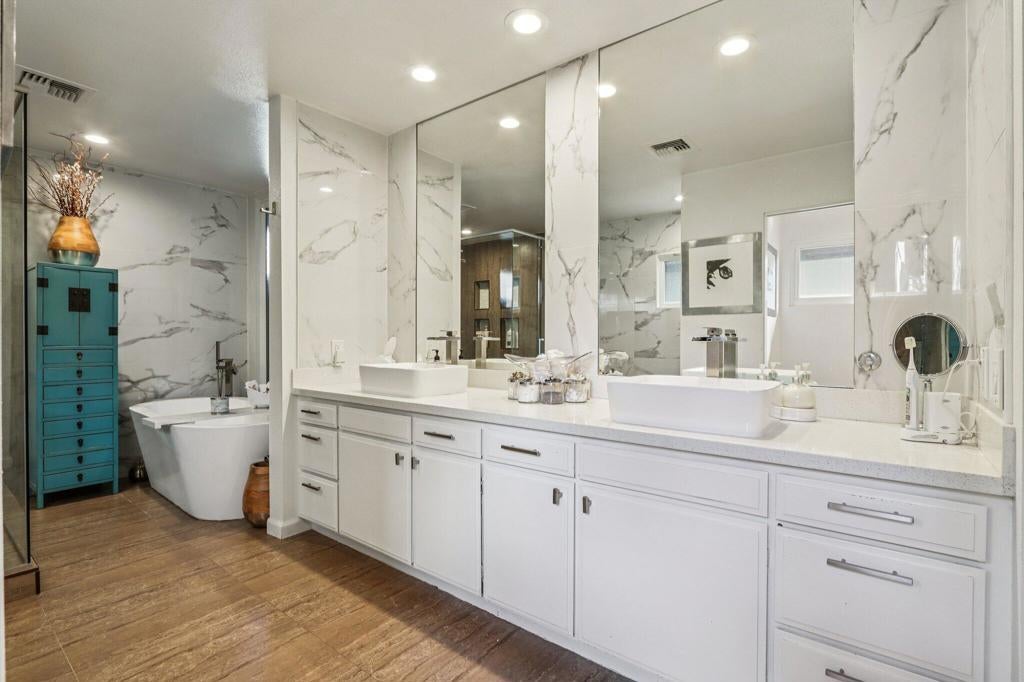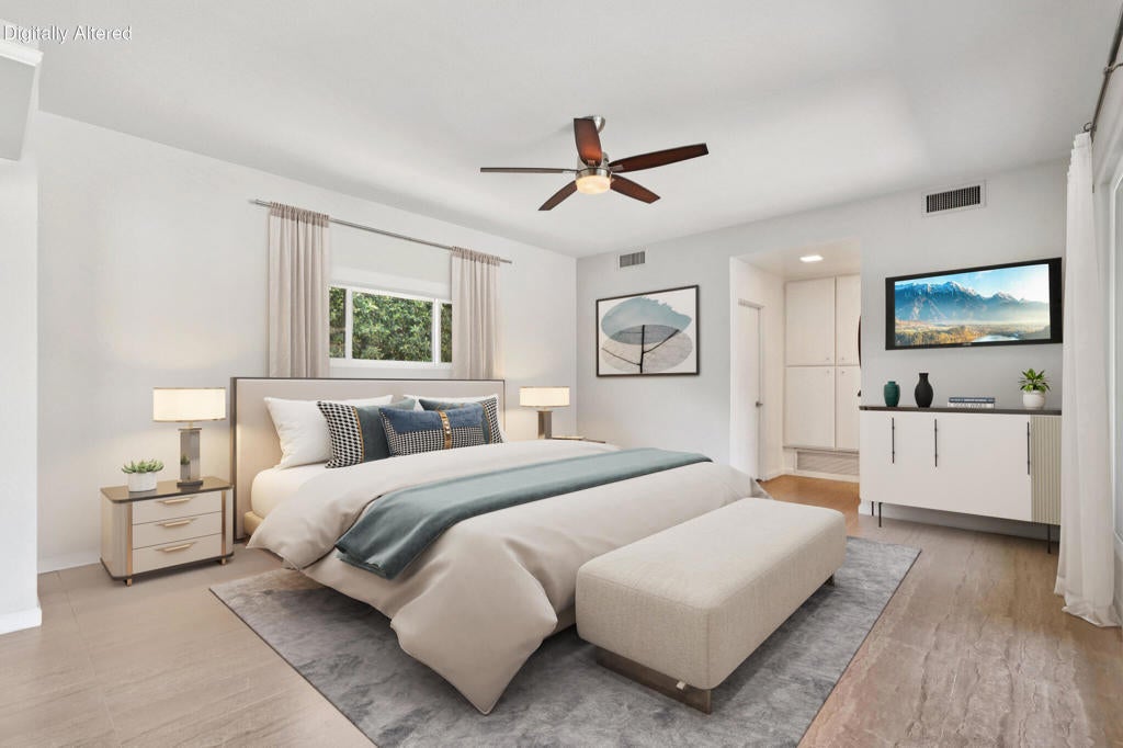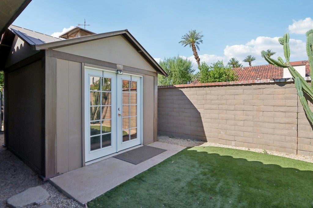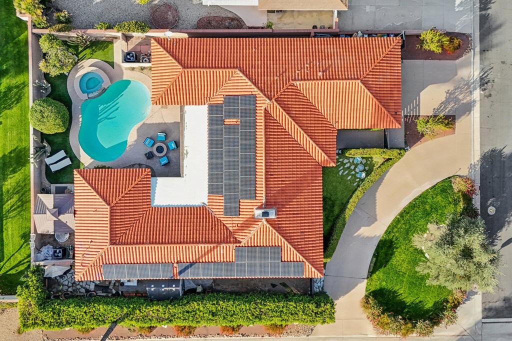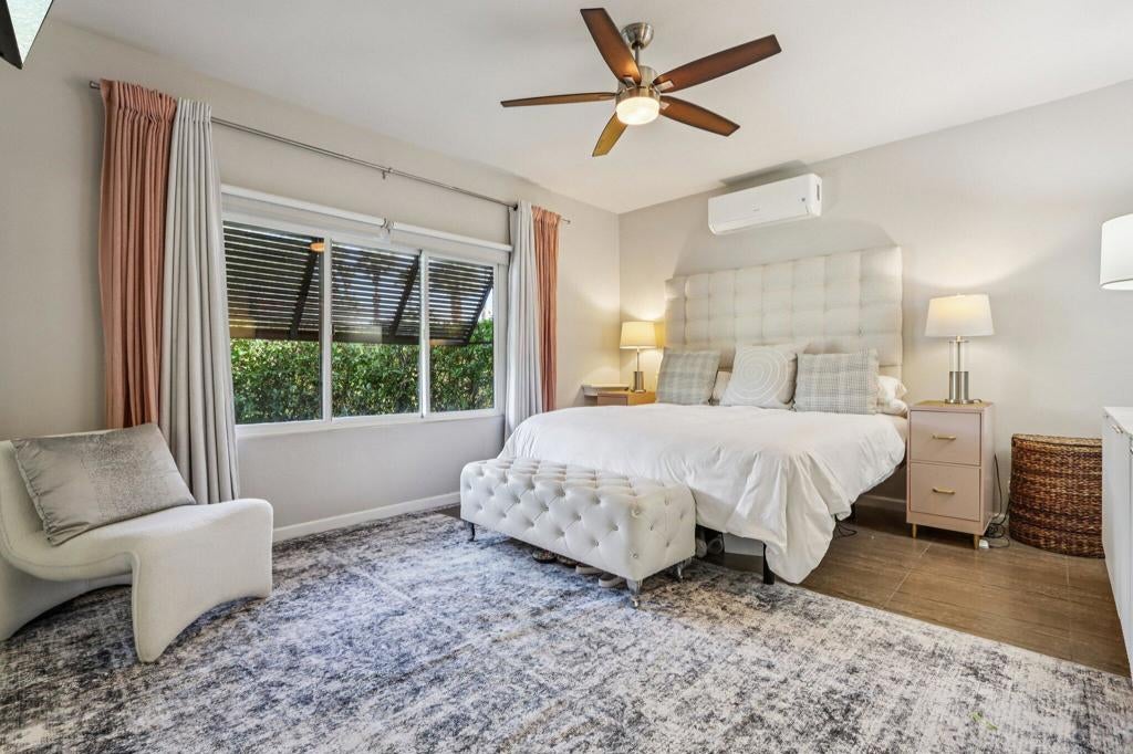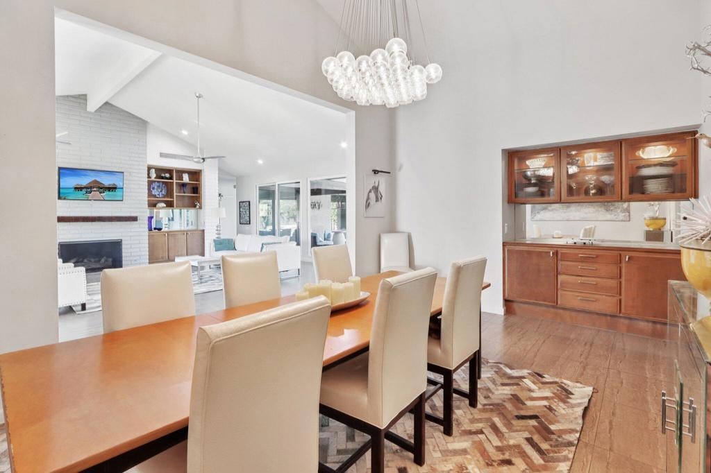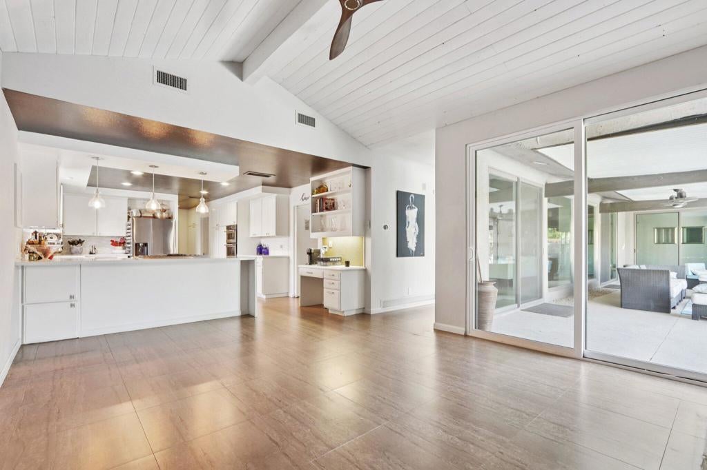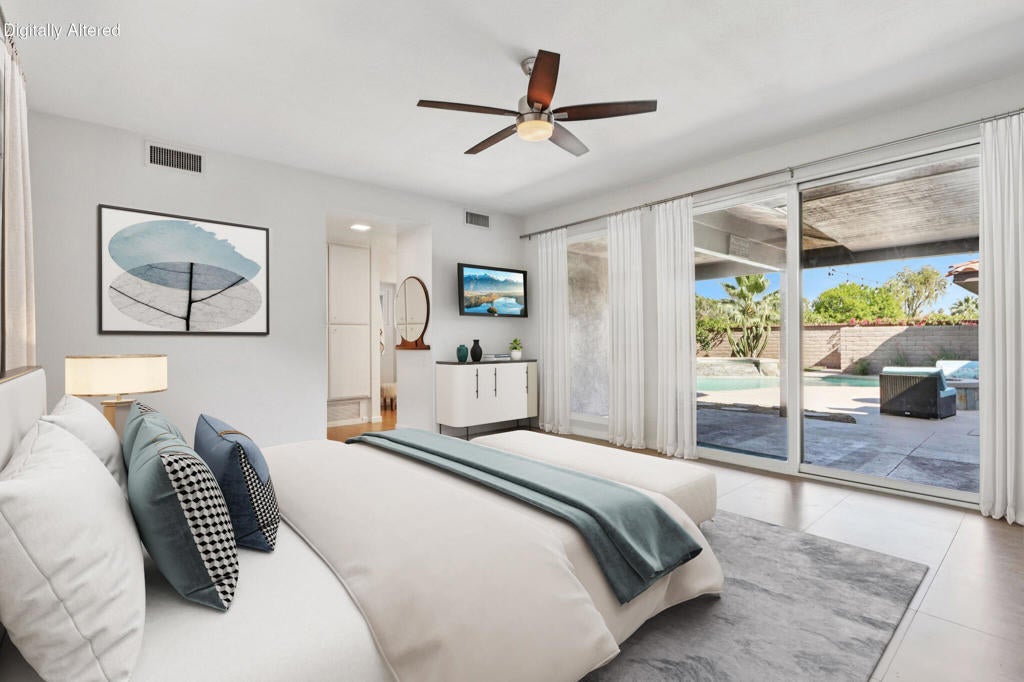 MOTIVATED SELLER INVITES YOU to experience an environment where every day feels extraordinary in this classic contemporary Rancho Mirage home. Be inspired by the dramatic living area with soaring ceilings, natural gas fireplace, and a stunning block-stone chimney--resulting in an atmosphere of limitless possibility. Recent renovations include luxurious porcelain tile throughout the entire home, all new double-pane windows and sliding doors, updated kitchen, bathrooms and more. Imagine hosting joyful celebrations in the spacious dining area, where laughter and good company fill the air. Entertain with confidence in your stylish family/TV room, complete with a sleek cocktail/wine bar--ready for unforgettable evenings. The chef's kitchen, a vision in white quartz, is more than a place to cook; it's a launchpad for creativity, connection, and culinary adventure, featuring top-tier appliances for every ambition. Embrace indoor-outdoor living as you open the doors to a generous covered loggia--perfect for movie nights, al fresco dining, or simply soaking in the serene desert air. Recharge in your private backyard oasis boasting a sparkling pool with soothing raised spa framed with magical starlit evenings by the fire pit, all of which awaits your next moment of inspiration. Let your passions thrive in the versatile 'Hoby Hut'--ideal for yoga, art, and personal growth. At day's end, retreat to the primary suite, where direct patio access and a spa-like bathroom offer relaxation and renewal. Two more bedrooms and a second updated bathroom provide comfort for loved ones and guests. With energy-efficient windows, water-saving synthetic turf, and a powerful 48-panel solar system, your future here is as sustainable as it is bright. Make every day motivating in this ideally situated, wind-protected area of Rancho Mirage's desirable 'Tamarisk Heights' hamlet which is known for well-maintained mid-century and custom homes featuring private pools, mature landscaping, and mountain views. Even though the community offers a quintessential, relaxed desert experience in a prime central location, the cherry on top with this home is the fee-simple (owned) land, and a secluded corner lot with no HOA.