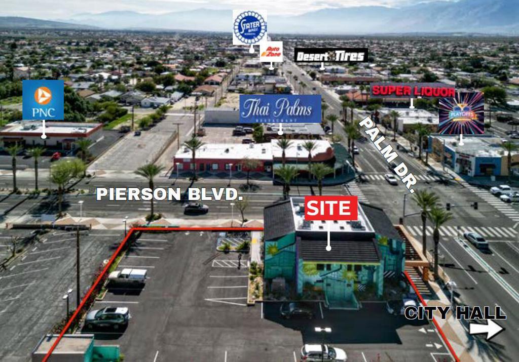■ +/- 5,328 SF Building On Prime Corner at Palm Dr & Pierson Blvd■ Located in Downtown Desert Hot Springs Commercial District■ High Visibility With Strong Drive-By Traffic■ Easy Access From All Directions■ Over 100 Ft Palm Dr Frontage on Main City Corridor■ High Visibility Mural Artwork Design By TRAV■ Ideal for Retail, Office, or Service Use■ Close to City Events, Public Art, and Downtown Activity■ Strong Signage and Branding Opportunity