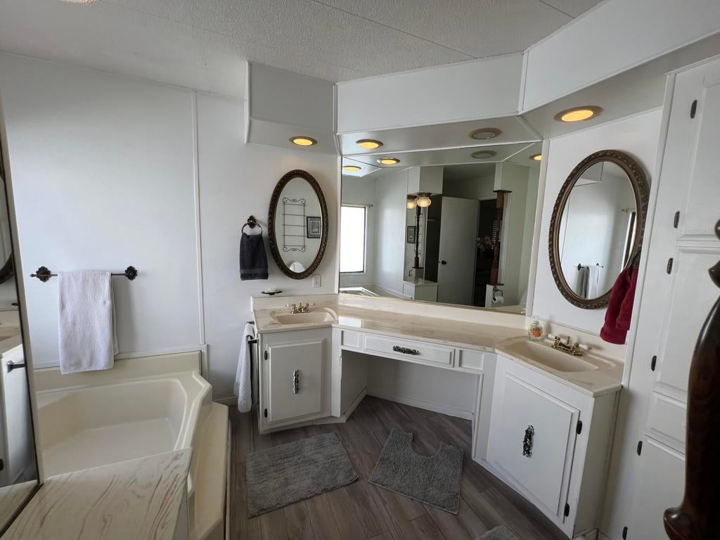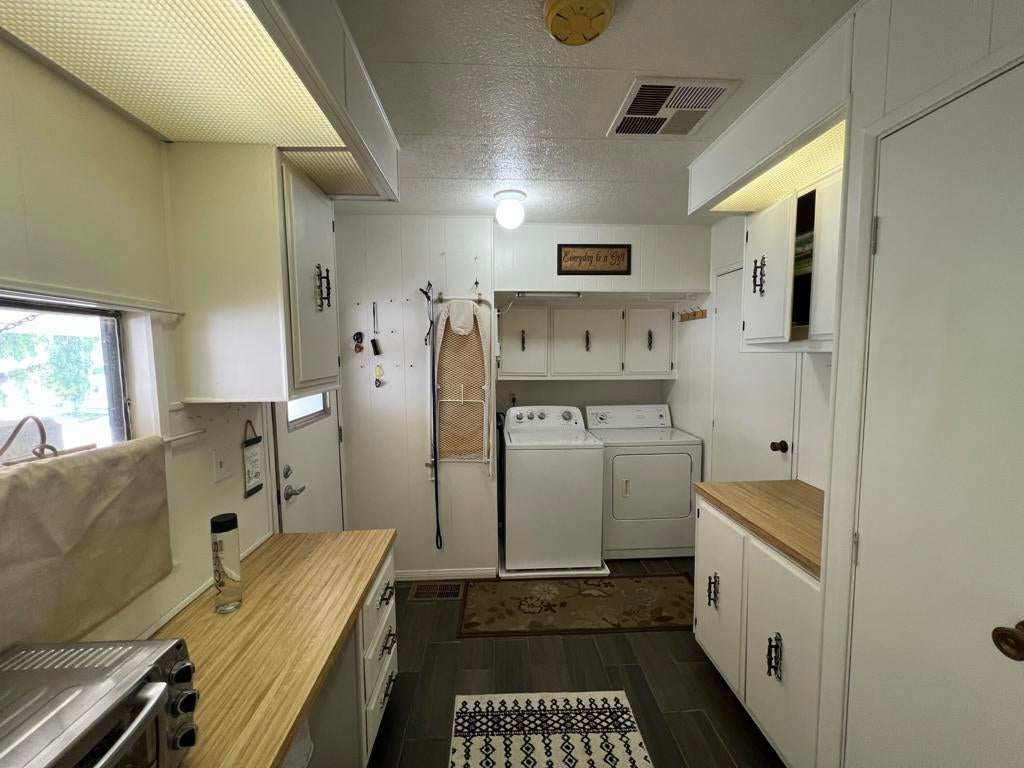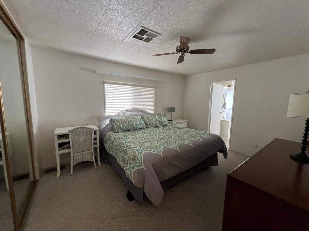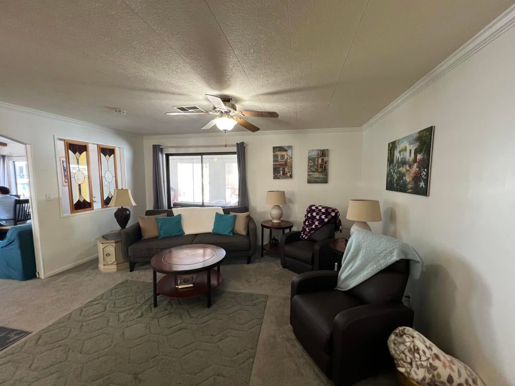 BEAUTIFUL MOVE-IN READY HOME WITH CATHEDRAL CEILINGS!This well-maintained home is in excellent condition and offers a bright, open floor plan with soaring cathedral ceilings. Featuring 2 bedrooms, 2 bathrooms, plus a bonus room, this property provides generous living spaces and large, comfortable bedrooms.Recent upgrades include a new A/C unit and new water heater. Stylish laminate flooring enhances the kitchen, bathrooms, and inside laundry room, offering both durability and easy maintenance. The spacious two-car carport includes a convenient storage shed, ideal for a golf cart or additional storage needs.All appliances and furniture are included (excluding select personal items), making this home truly turn-key.Located in the desirable Desert Crest Country Club, a 55+ senior community where you OWN THE LAND (no space rent!), with low monthly dues of just $152. Community amenities include unlimited golf on a 9-hole par-3 course, a natural hot mineral water pool and spa, clubhouse with game room, library, gym, entertainment facilities, and 8 enclosed shuffleboard courts.All streets are county-owned and maintained, with city water, sewer, natural gas, and cable/satellite services. Enjoy an active lifestyle with aqua aerobics, longevity (stick) exercises, line dancing, weekly gatherings, dinner dances, bingo, golf, and shuffleboard.The perfect place to live, relax, and play!