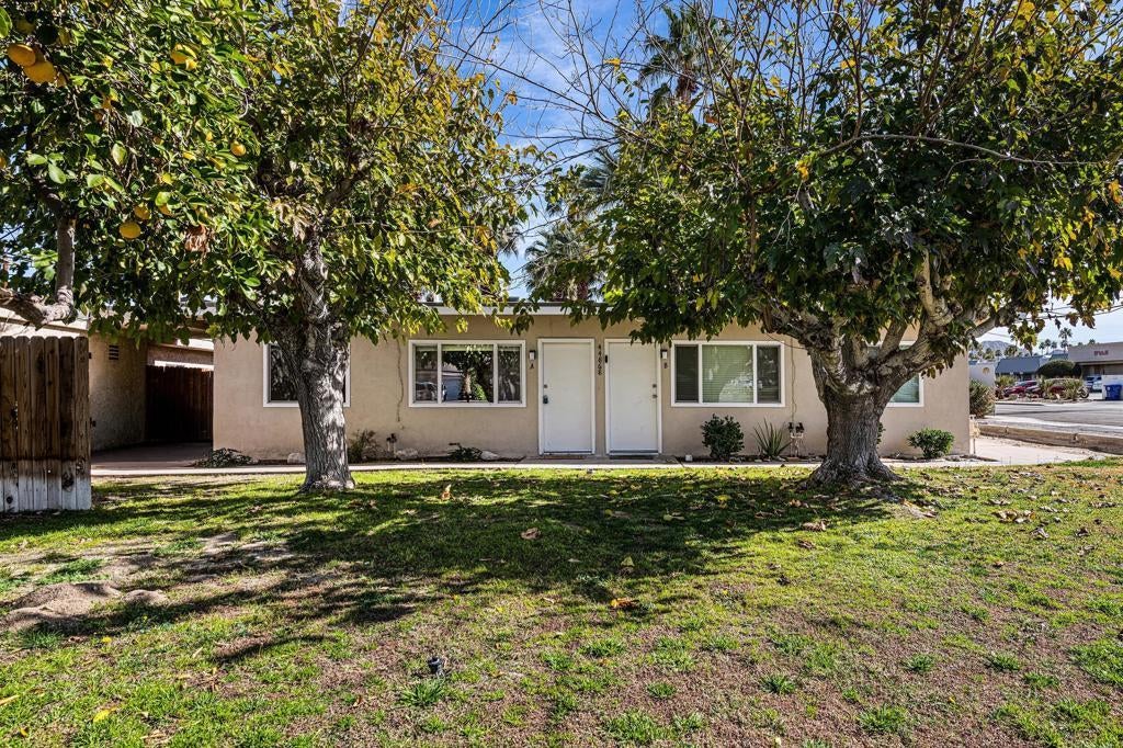Exceptional central Palm Desert investment opportunity situated on a large corner lot with three total income units--a single-family residence plus a separate duplex. The 3-bedroom, 2-bath home is approx. 1,528 sq. ft., and is currently leased. The home offers the privacy and functionality of a standalone residence with a spacious living room, separate kitchen and dining area, private fenced backyard with swimming pool. Features include custom birch cabinetry, Corian countertops in the kitchen and bathrooms. The interior and exterior have been painted recently, and a new roof installed in 2024.The duplex consists of two 2-bedroom, 1-bath units which are approx. 759 sq. ft. each. Both units have new HVAC systems installed in 2025. Unit 1 has been extensively updated and features new windows, new interior and exterior paint, vinyl plank flooring throughout with the exception of the bathroom, all-new kitchen cabinetry and countertops, updated plumbing fixtures and electrical outlets/switches, new stove and hood, tiled shower/tub, new vanity and sink, and window treatments. Unit 2 is currently leased and offers new carpeting, granite kitchen countertops, new stove and hood, updated sink and fixtures, and window blinds. Additional highlights include new roofing on both the house and duplex in 2024. Ideally located just minutes from El Paseo, shopping, dining, retail, business centers, and College of the Desert.