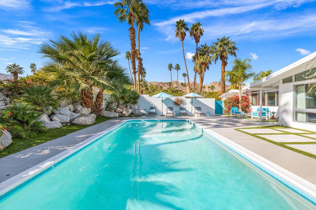 🌞A True 'Mid-Century''Jewel in Magnesia Falls Cove!!!💠This stylish 1956 Mid-Century home offers three bedrooms plus a flexible office/den or optional fourth bedroom. The open floor plan seamlessly connects the living room, kitchen, and dining area, thoughtfully designed to showcase the home's iconic architecture.🌴WALLS OF GLASS blur the line between indoors and out, flooding the interior with natural light and framing breathtaking poolside, mountain, and desert views. Enjoy sweeping mountain vistas from nearly every angle, both inside and outside.Outdoor lounging spaces are ideal for relaxing, entertaining, or simply soaking in the beauty of the cove. This is a rare opportunity to own an architecturally significant Mid-Century retreat in one of the area's most desirable neighborhoods.Additional features include OWNED SOLAR. Many homes of this era and style in the neighborhood are believed to have had involvement from television host Art Linkletter, adding to the historic allure of this exceptional property.