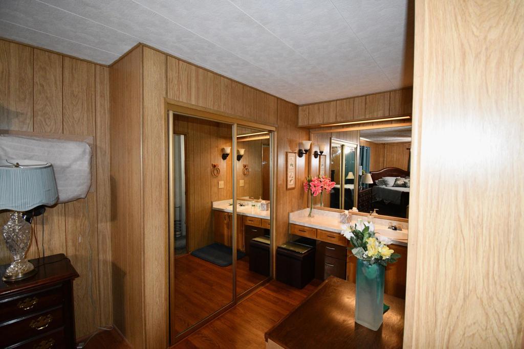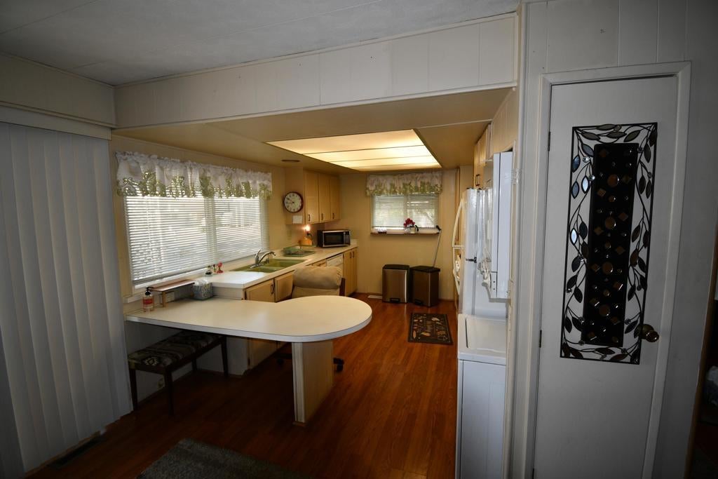 2bd/2ba Fabulous mountain views from this corner double-wide located in a desirable 55+ gated community. Spacious floor plan featuring laminate wood flooring, newer appliances, living room plus family room/dining area open to the kitchen with breakfast/party bar. Large primary suite with dressing area, abundant wardrobes and closets. Lattice-fenced backyard with party area, expansive views, and large covered patio with fencing suitable for a small dog. Low-maintenance landscaping, central A/C and heat. Located close to shopping, and public transportation Sold furnished per seller's inventory. Community amenities include pool, spa, pickleball courts and clubhouse.