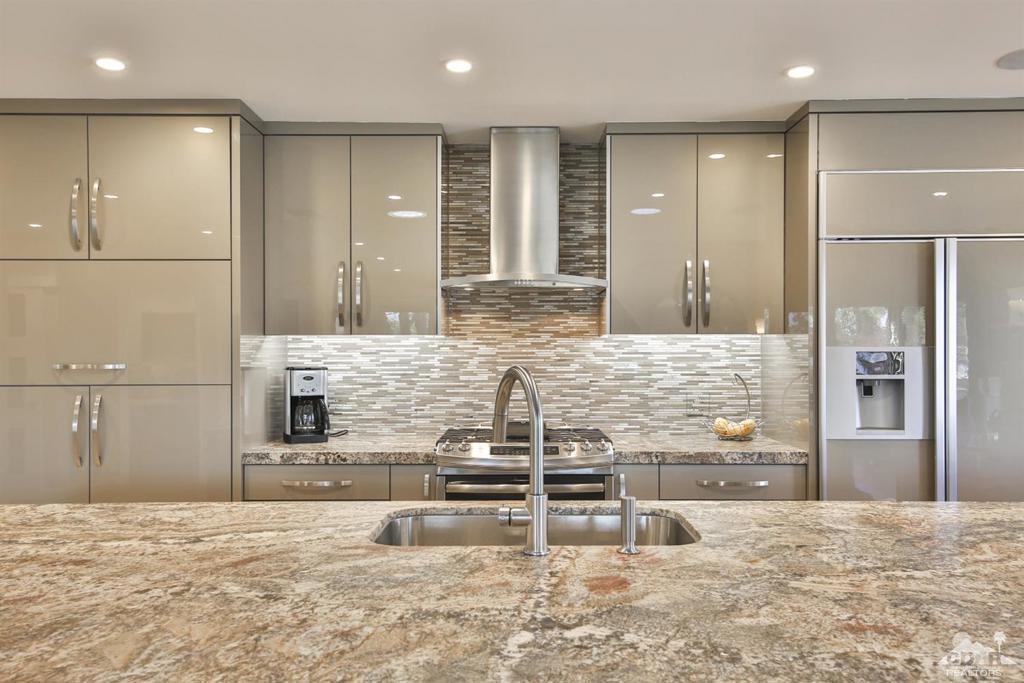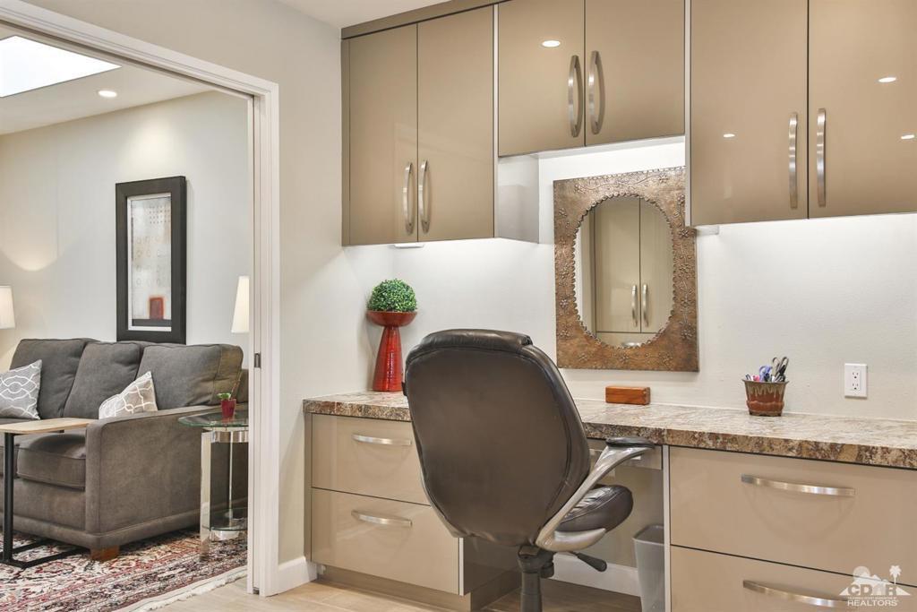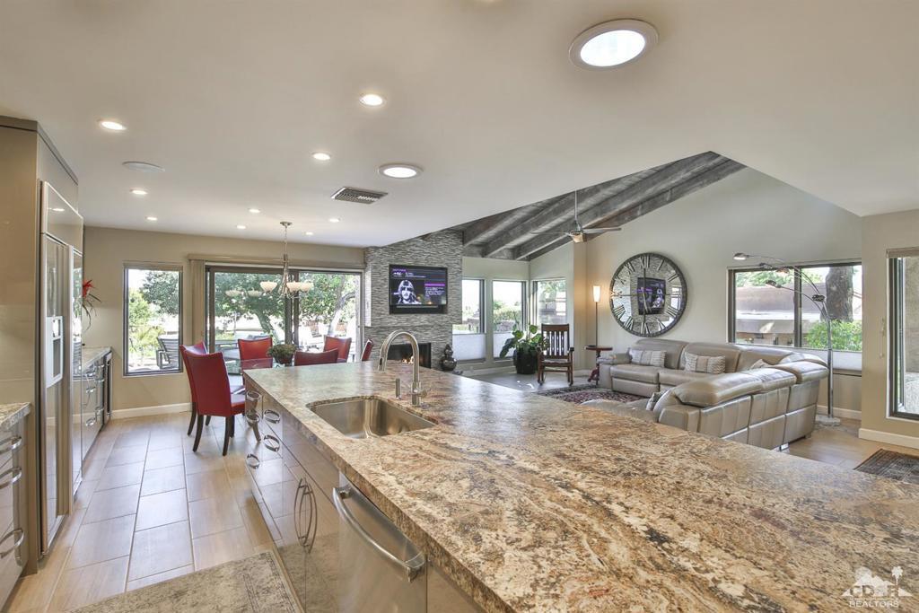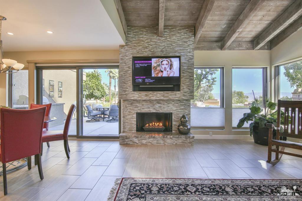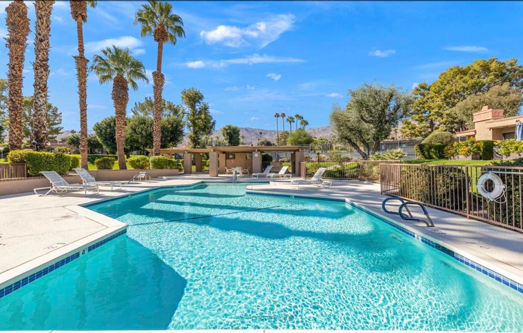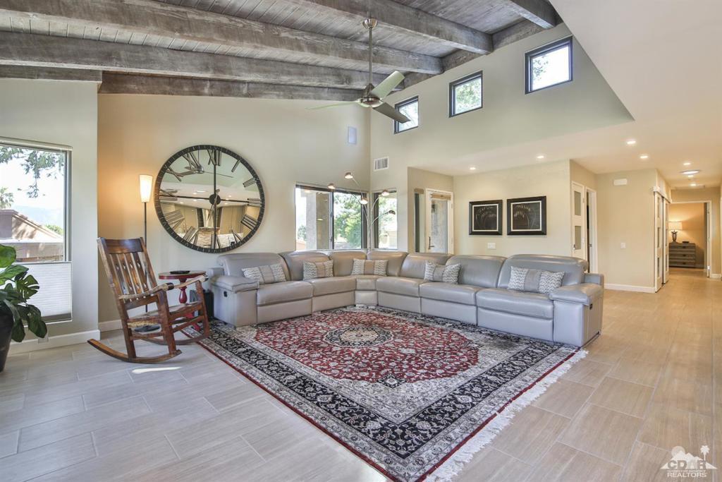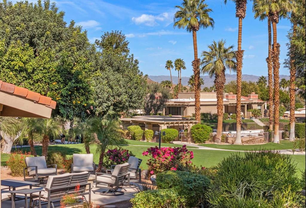 Sophisticated Indoor-Outdoor Living in the Heart of South Palm Desert is Indian Hills - a desirable community located just below the prestigious Bighorn Golf Club. Situated on an elevated lot this exceptional residence offers breathtaking mountain views from every window and embodies true pride of ownership. The home welcomes you into a grand great-room where a vaulted wood-beam ceiling creates a sense of warmth, volume, and architectural character. Designed for both everyday comfort and elegant entertaining, the open layout flows seamlessly into a chef's kitchen featuring high-end appliances, generous workspace, and thoughtful finishes. Indoor living extends effortlessly outdoors through expanded front and rear patios, ideal for year-round enjoyment. The outdoor spaces are complete with a built-in BBQ, fire pit, and refrigerator, creating a private retreat for entertaining or relaxing beneath the desert sky. Additional highlights include dual-pane windows, interior laundry, a surround-sound stereo system, ample storage space and a location just steps from the community pool and spa. Ideally situated near El Paseo's upscale shopping and dining, with hiking, biking, and nature trails just outside the community, this home offers a rare combination of tranquility and convenience -- centrally located to everything Palm Desert has to offer. An exceptional opportunity to experience indoor-outdoor living at its finest in one of the desert's most desirable settings. The 3rd bedroom is currently being used as an office/den with a pull-out sofa sleeper. Schedule your private tour today!