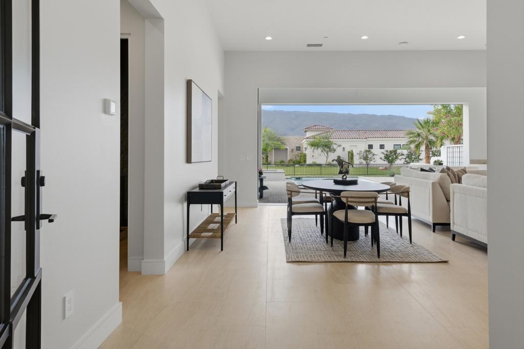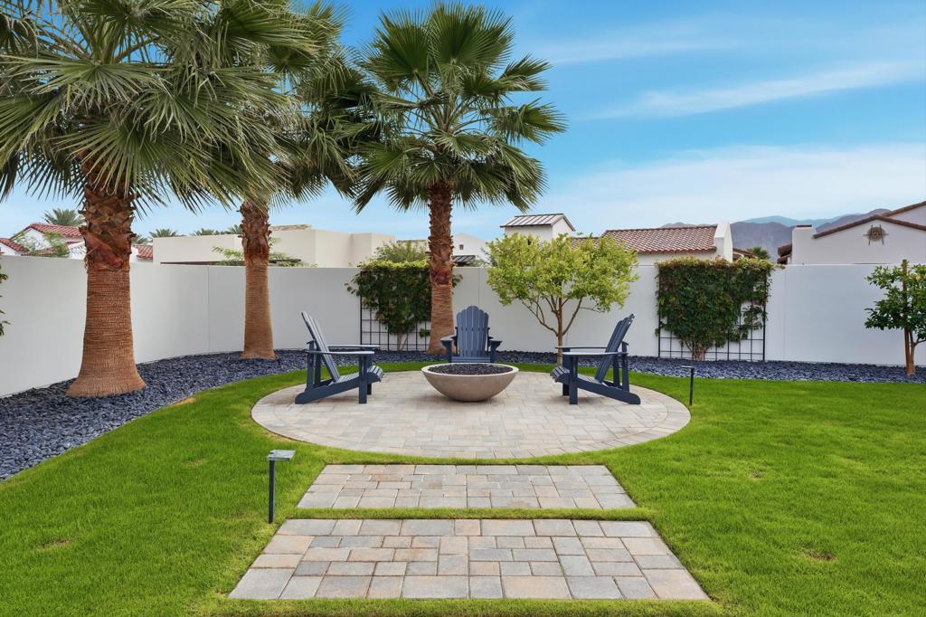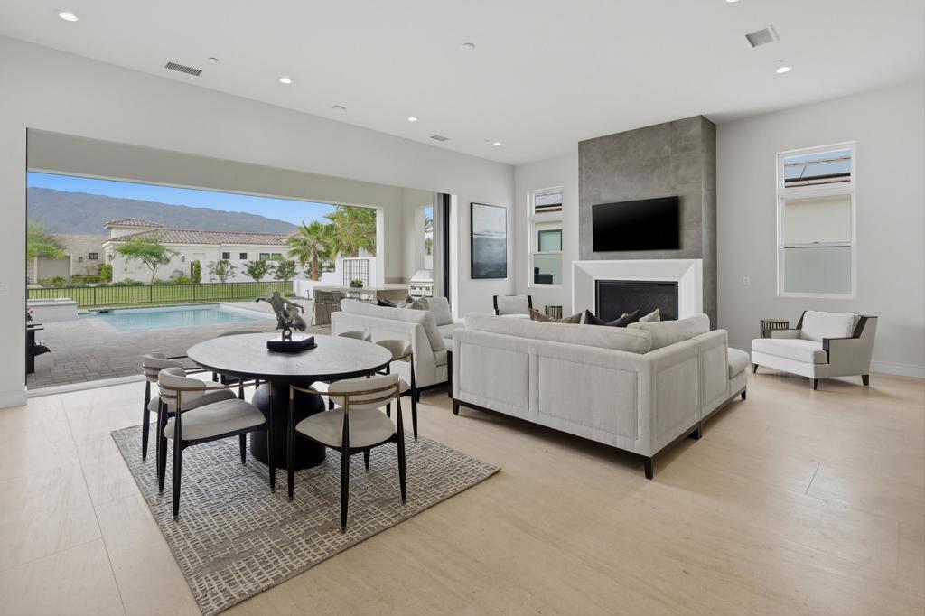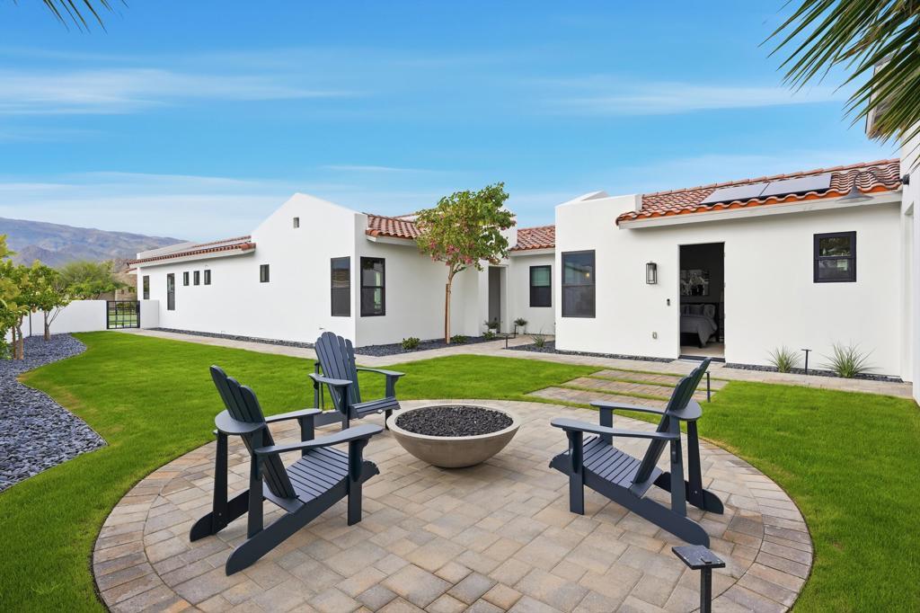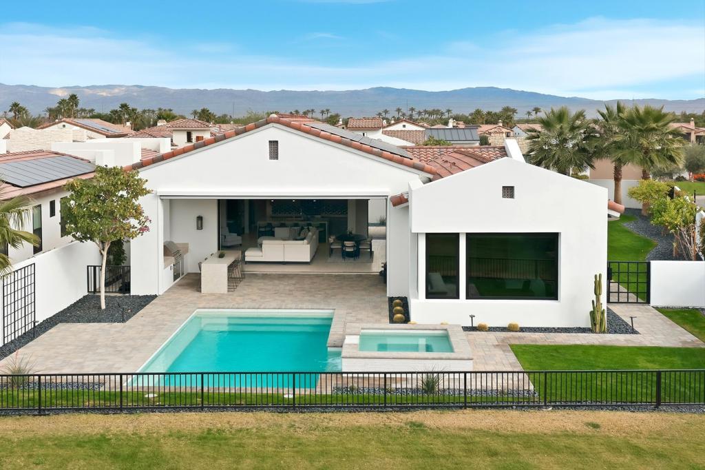 This extensively upgraded home blends refined design with modern comfort, offering a truly turnkey living experience within the gates of Andalusia Country Club. Thoughtful enhancements and high-end finishes are found throughout, anchored by custom cabinetry, upgraded hardware, and a cohesive palette of limestone, quartzite, marble, and designer tile surfaces that elevate every space. The kitchen is a standout, designed for both everyday living and entertaining, featuring premium appliances including Wolf, SubZero, and Bosch. An expanded waterfall-edge island, generous pantry storage, and elegant pendant lighting create a space that is both highly functional and visually striking. The great room features a custom fireplace, upgraded interior doors, expansive multi-slide pocket doors, and motorized designer window shades that create a seamless indoor-outdoor connection. Throughout the home, upgraded lighting, custom paint, and added baseboards add a polished, finished feel. The primary suite offers a serene, spa-like retreat with a beautifully appointed bath featuring multiple shower fixtures and carefully curated finishes that feel both luxurious and calming. Guests enjoy exceptional privacy and comfort in the detached casita, complete with its own kitchenette and a beautifully finished bath. Outdoor living is equally impressive, thoughtfully designed to capture the dramatic Santa Rosa and Coral Mountain views. A custom pool and spa, fire pit, upgraded hardscape, and covered patio with ceiling heaters, electric patio screens, and a built-in BBQ and bar area with waterfall limestone counters create an ideal setting for both relaxation and entertaining. Beautiful landscaping, custom gates, and ambient path lighting complete the resort-like atmosphere. Additional highlights include upgraded solar panels, epoxy-finished garages with EV charging, HVAC splits in both garages, and a full security system with cameras. This home offers a rare opportunity to own a meticulously upgraded residence where luxury, comfort, and thoughtful design come together effortlessly. Furnishings negotiable. Come live the life you've always imagined!