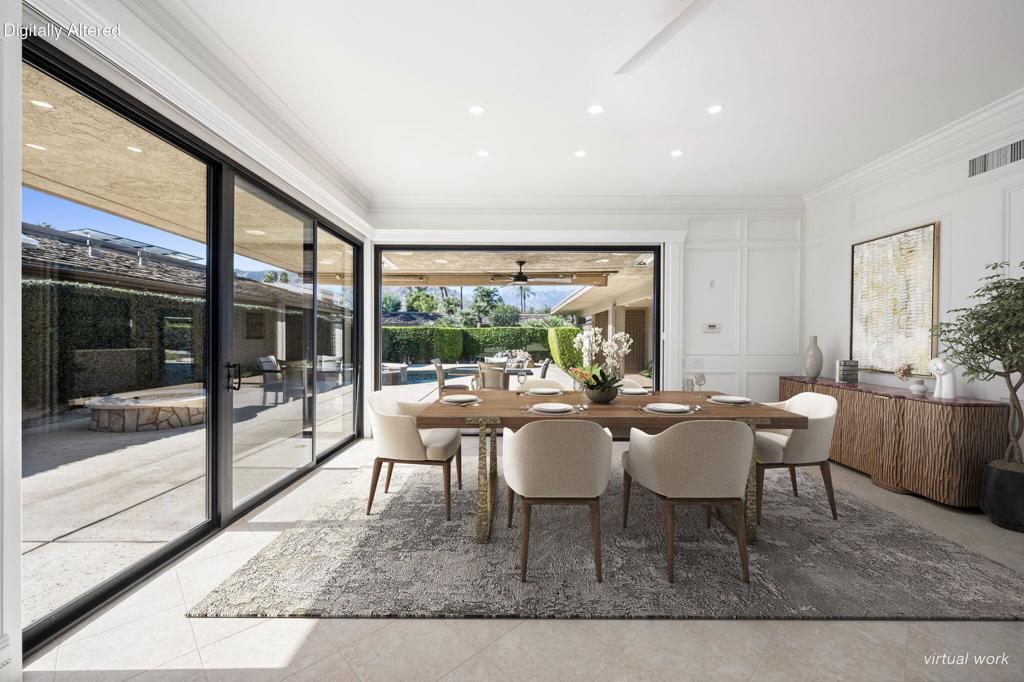 Welcome to Modern Romance meets Luxury Living @ it's finest! If you're looking for an upscale, rare desert estate, go no further! This stunning, detached St. Andrews floor plan is a newly renovated; 3BD/4BA sanctuary that offers the perfect blend of elegance, privacy and comfort, ideal for those seeking the ultimate high-end desert lifestyle. This private retreat on an expansive lot offers 2,544 square feet of living space and speaks ''Elegance'' at every turn. The bright, open floor plan is perfect for both relaxed desert living, and entertaining guests in style. You'll love the professional kitchen outfitted with quartz countertops, with a rare, custom 60'' Viking double Professional Chef's cooktop/oven and double Designer Frig. And for those who demand entertaining in style, there's even a secondary catering kitchen/Butler's Pantry offering high-end appliances, dishwasher, bathtub sink, and Subzero wine cabinet, Impressive! The primary bedroom offers a quiet retreat, adorned with designer quartz countertops and high-end finishes throughout. The additional bedrooms offer luxurious finishes and privacy for family or guests, with four bathrooms featuring imported Italian stone - talk about bathing in luxury! Beautiful custom woodwork is found throughout this stunning home. Enjoy down-time in the dedicated media room or relax in your expansive private courtyard, showcasing a pebble-tec saline pool, spa, and flowing rock water feature. With stunning southern views of the gorgeous San Jacinto mountains, you won't want to leave. Add a gas BBQ, gather around the gas fire pit, and enjoy serene desert moments. An exercise room with a sauna are just some of the many fabulous touches to enjoy. At the warm and friendly Springs Country Club, you're just a short drive from amenities like Eisenhower Medical Center, The River shopping center and world famous El Paseo.NOTE: All rooms shown furnished have been virtually staged.