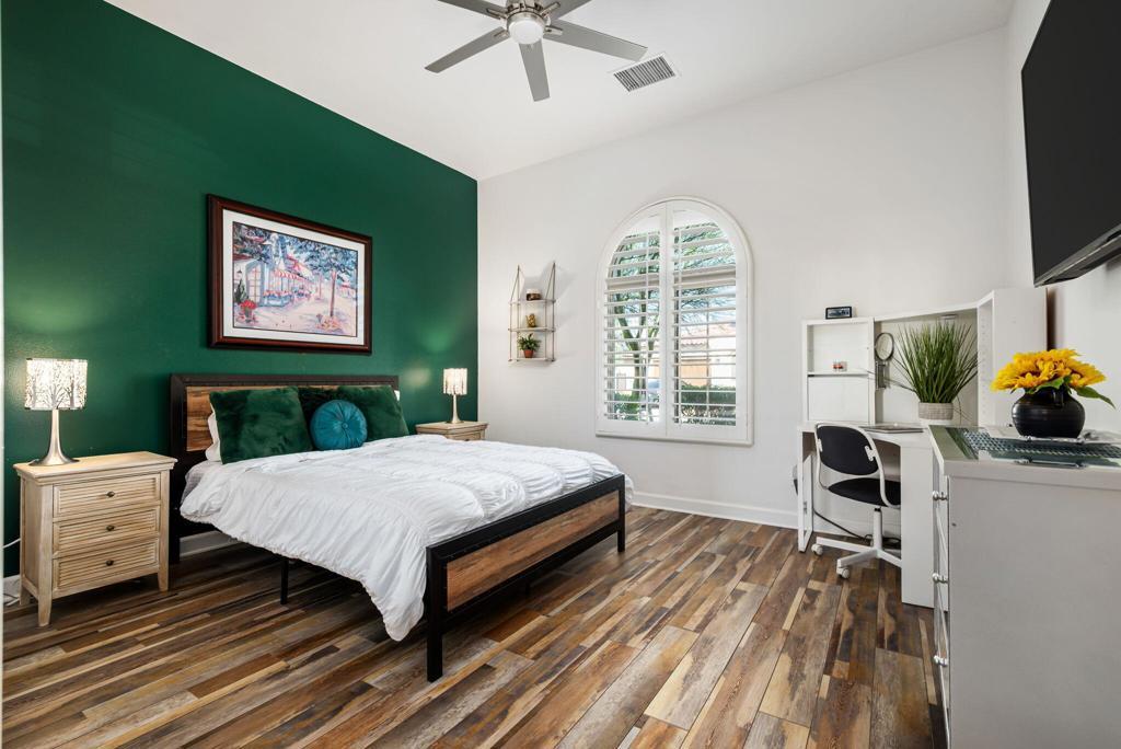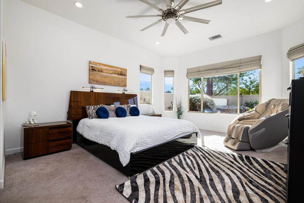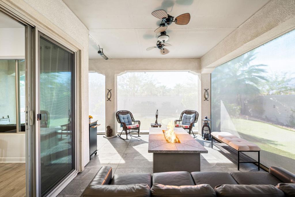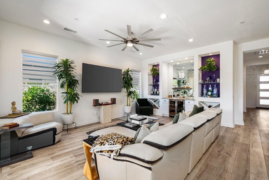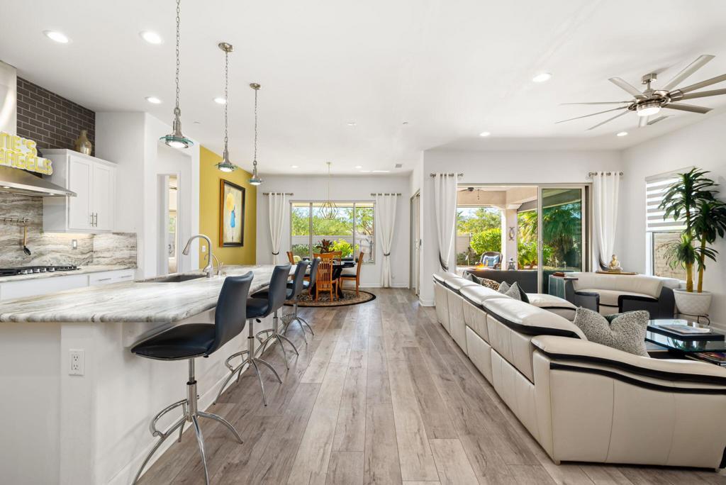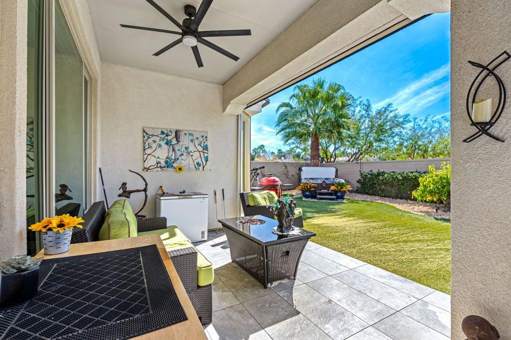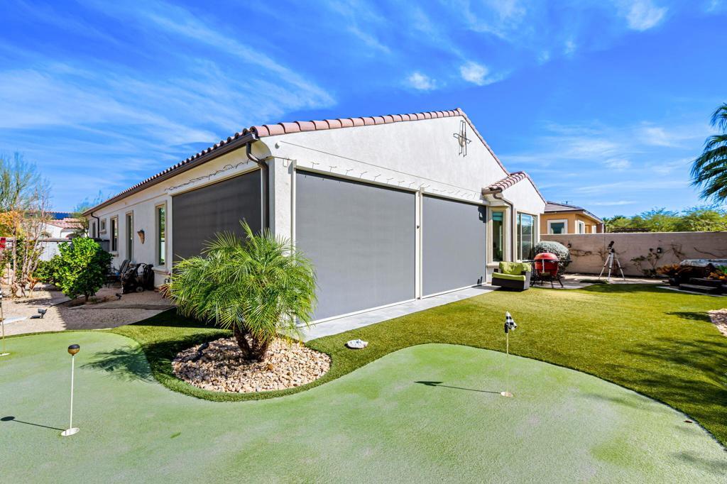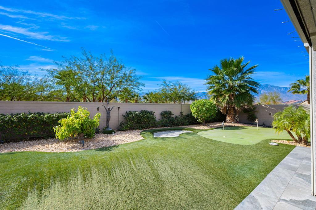 BEST VALUE Preserve floor plan in Del Webb Rancho Mirage! Experience elevated desert living in this beautifully upgraded home within this sought-after 55+ community. Built in 2019 and thoughtfully enhanced throughout, this residence offers 2,034 square feet of refined living space on a generous 7,579 square foot lot, featuring 2 bedrooms plus a versatile den or optional third bedroom and 2 well-appointed baths. Inside, the open-concept great room is designed for both comfort and entertaining, highlighted by custom sliding doors that create seamless indoor-outdoor flow and a striking custom bar complete with wine and beer refrigeration. The chef's kitchen showcases quartz countertops with full backsplash and subway tile, custom beveled glass pantry door with added shelving, as well as pull-out spice rack, instant hot water dispenser, and a new Bosch dishwasher--blending beauty with everyday functionality. A whole-house water filtration system and custom fans throughout further enhance comfort and efficiency. The spacious primary suite serves as a private retreat, featuring a bay window, huge upgraded custom shower, and bidet toilet for spa-like luxury. Step outside to a resort-inspired backyard designed for year-round enjoyment, where tile patio flooring, motorized shades, cooling misters, custom outdoor fans and heaters, a jacuzzi hot tub, putting green, and a custom gas fire pit create the ultimate setting for relaxation or entertaining under the desert sky. Located in the premier gated community of Del Webb Rancho Mirage, residents enjoy world-class amenities, vibrant social opportunities, and an exceptional active-adult lifestyle--making this impeccably upgraded home a rare opportunity to enjoy the very best of desert living.