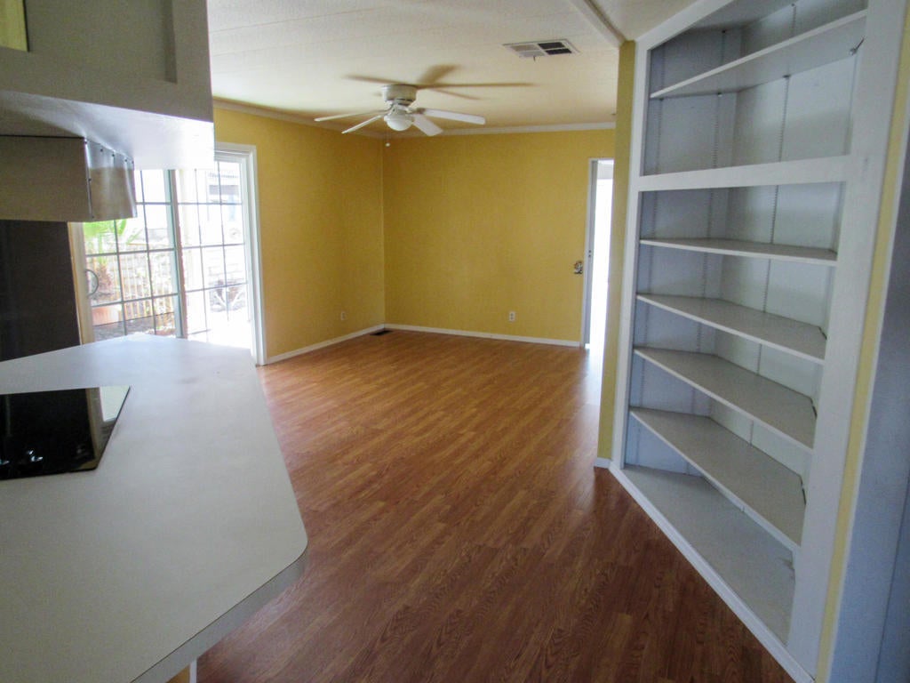 6.098 Sq. ft. lot featuring a sparkling Swimming pool and spa with Mountain Views. The primary bedroom has a slider leading out to the pool and spa. The suite in the rear of the home, has a walk-in closet and a large bathroom with double sinks. The family room is open to both bedrooms and the kitchen for a spacious TV area or office area. The living room/dining room area enjoys a wall of windows for an enjoyable sitting area for dining and entertaining. Laminate flooring and dual pane windows add to the desirability of this unique home in Palm Desert Greens. Relax in style in this resort style home!