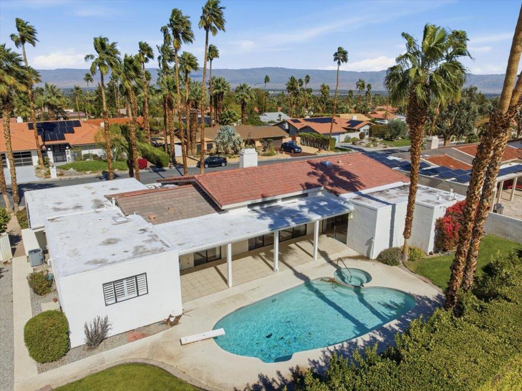 Original owner - great opportunity to reimagine a south palm desert gem. Excellent location with private south facing rear yard. Refinished pool and spa. Excellent floorplan with large master bedroom suite , and 2 additional bedrooms. Family room, dining room, and huge living room with vaulted ceilings, loads of natural light, and full sunken wet bar. Separate laundry room with access to backyard and bathroom Located in prestigious /coveted Washington Charter school district