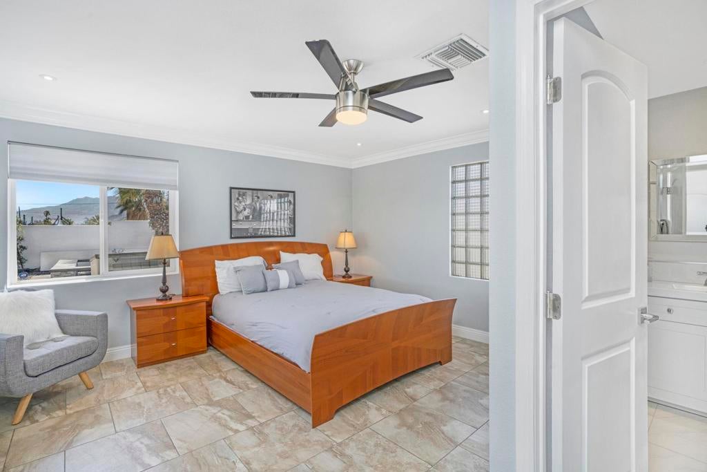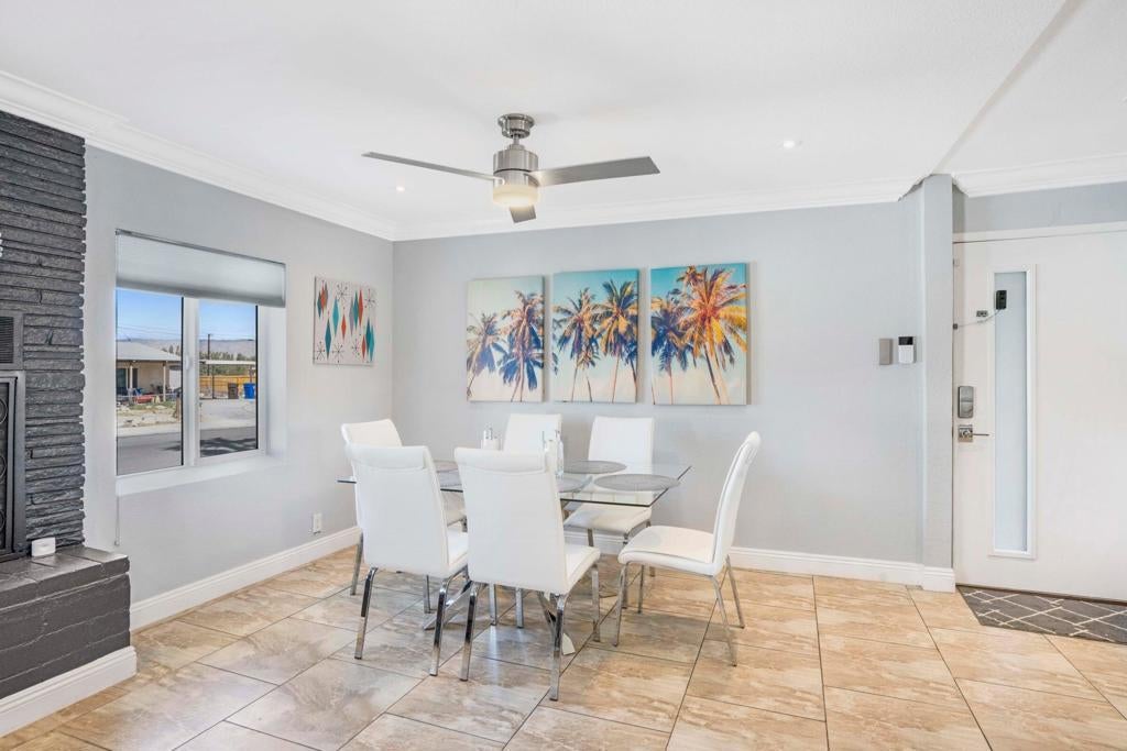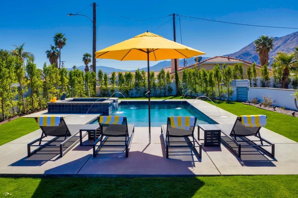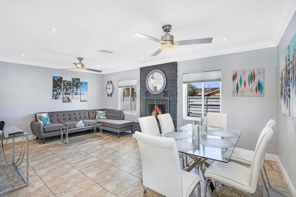 Welcome to desert living in this exquisitely reimagined Mid Century modern residence, where timeless Palm Springs architecture meets sophisticated contemporary design. Ideally situated just moments from the vibrant dining, boutique shopping, and world class entertainment of downtown, this three bedroom, two bath retreat offers 1,309 square feet of beautifully curated interiors on an expansive 9,583 square foot lot. Crafted for both serene relaxation and effortless entertaining, the home's open concept layout flows seamlessly into a private outdoor oasis. A resort caliber saltwater pool and spa custom designed and built by Tessera anchor the breathtaking backyard, framed by sweeping mountain views. Evenings are elevated around the impressive oversized fire feature, while the outdoor kitchen, with abundant counter space and seating for more than 20 guests, creates the perfect setting for unforgettable gatherings under the desert sky. Every detail has been thoughtfully refined, including a newer roof, energy efficient solar system, tankless water heater, and premium appliances. Offered turnkey fully furnished, this residence reflects a harmonious blend of comfort and sophistication, ready to enjoy from the moment you arrive. Whether envisioned as a lucrative short-term rental opportunity or an exceptional personal getaway, this home captures the very essence of the Palm Springs lifestyle luxurious, effortless, and endlessly inviting.