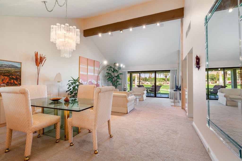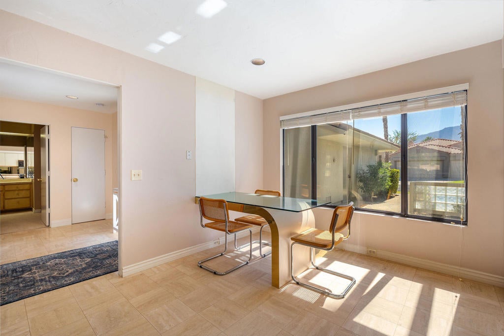 Discover the essence of desert living at 78088 Calle Norte, a charming 2-bedroom, 2-bath condo ideally positioned on the 10th hole of the Dunes Golf Course in the highly sought-after Duna La Quinta community. Once a model home, this well-maintained residence is offered by its original owners and showcases timeless character paired with thoughtful care, including a newer AC unit. With a motivated seller and incredible potential to update or personalize, this is a rare opportunity to create your ideal desert retreat.Spanning 1,678 square feet, the home features an inviting open-concept layout filled with natural light, highlighted by vaulted ceilings with beautiful exposed beams and centered around a cozy fireplace that creates a warm, welcoming ambiance. The spacious kitchen offers abundant counter space and cabinetry--perfect for everyday living or entertaining. Both bedrooms are generously sized, providing comfort, privacy, and flexibility for guests or a home office.Step outside to a large exterior patio with breathtaking mountain views, just moments from one of the community's three sparkling pool complexes--ideal for enjoying the desert lifestyle year-round.Located minutes from Old Town La Quinta, residents enjoy easy access to boutique shopping, fine dining, cultural events, and nearby attractions including the historic La Quinta Resort, El Paseo's premier shopping district, the Indian Wells Tennis Garden, and Indio's Polo Fields--home to the world-famous Coachella and Stagecoach festivals.Duna La Quinta is celebrated for its peaceful setting and exceptional access to world-class golf, making this home a perfect desert retreat for full-time living, seasonal enjoyment, or investment. Bring your vision and make the most of the opportunity this motivated seller is offering.