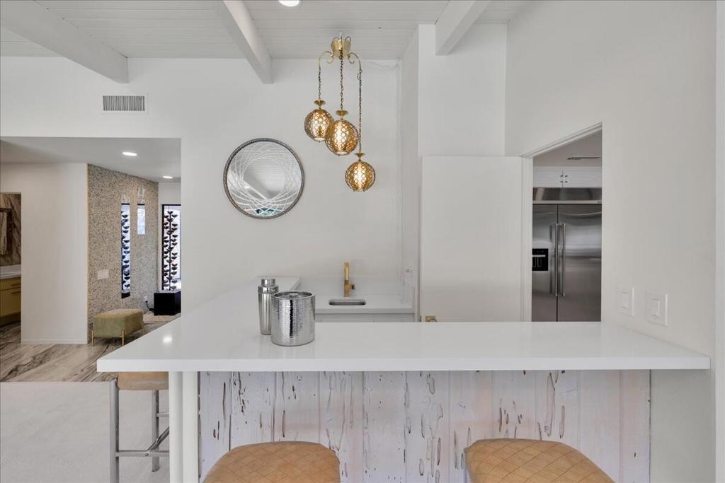 Live your Palm Springs dreams to the fullest! A beautifully remodeled and up-to-date Desert Regency style home in the highly desirable Canyon Palms enclave of south Palm Springs. This home has been re-imagined from top to bottom and meticulously updated with custom touches everywhere! 3 en-suite bedrooms, each with access to the outdoors and its own patio. Additional powder room for your guests when entertaining. The grand living space is ideal for hosting gatherings of all sizes, with tall beamed ceilings, large rock-facade fireplace, and visually striking pecky cypress wet bar - all looking out a wall of glass towards the new sparkling pool and Mount San Jacinto. Your new kitchen awaits with all-new appliances, perfectly sited for everyday living and for hosting large dinner parties - just off the bar and dining area for easy access while still providing separation from your guests. The adjacent breakfast nook leads out to the covered dining patio. Every inch of this home was carefully thought out by the original architect, Charles E Du Bois. Style, function, layout and location. This home ticks every box on your dream home wish list. Live and entertain the way you've always wanted to. The Canyon Palms neighborhood is an enclave of approximately 200 single family homes on fee-simple land that YOU own in south Palm Springs bounded on each side by Indian Canyons, Twin Palms and Smoke Tree Ranch. This is one of the most desirable areas in all of Palm Springs, with lush landscaping, towering palm trees, and close proximity to all of your favorite things to do - whether its shopping, dining, or golfing! Call to see it TODAY!