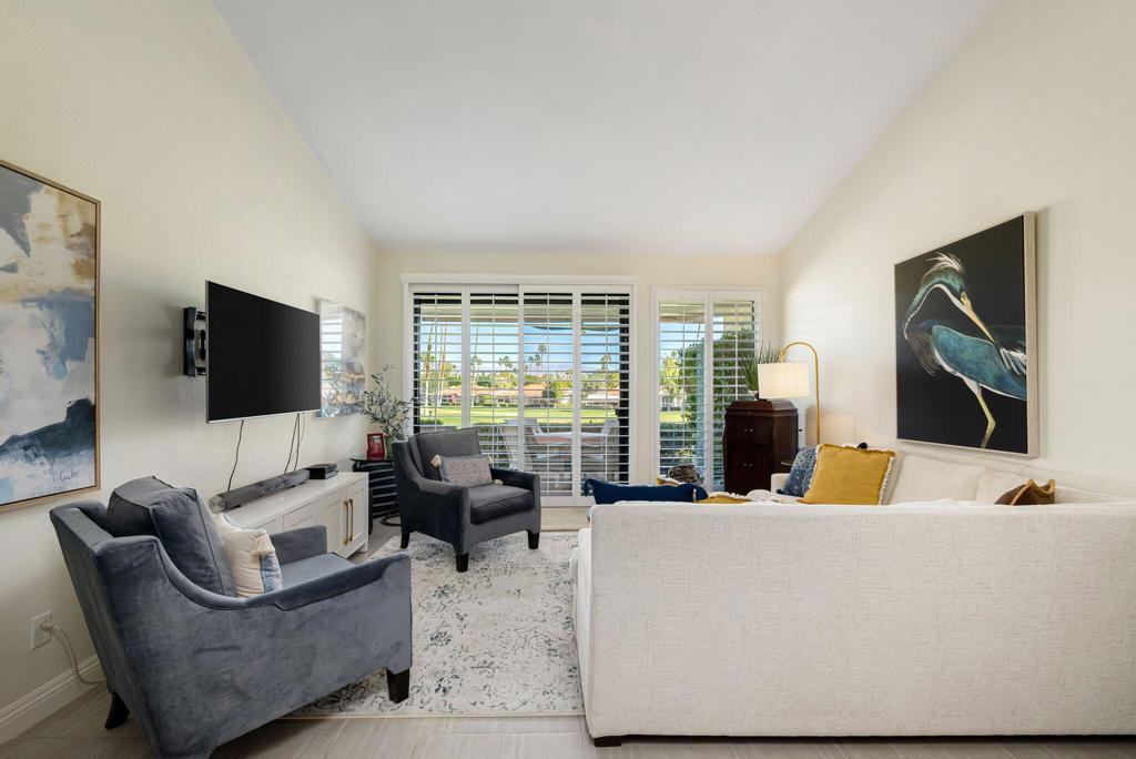 Designed for comfort and flow, this home features a spacious open-concept layout ideal for both everyday living and entertaining. Generously sized bedrooms provide privacy and flexibility, while the primary suite offers a peaceful retreat after a day on the course or by the pool. Thoughtfully planned interiors allow for seamless indoor-outdoor living--perfect for enjoying the desert climate year-round.UPGRADES: Newer Water Heater, AC Unit, AC Duct System, New plumbing throughout the home, Auto Retractable Awning, Outside Fan with light,, Remodeled Kitchen and Bathrooms, Newer Tile floors, Drip system outside, New garbage disposal, All dual Pane Windows with Shutters and Insulated Garage