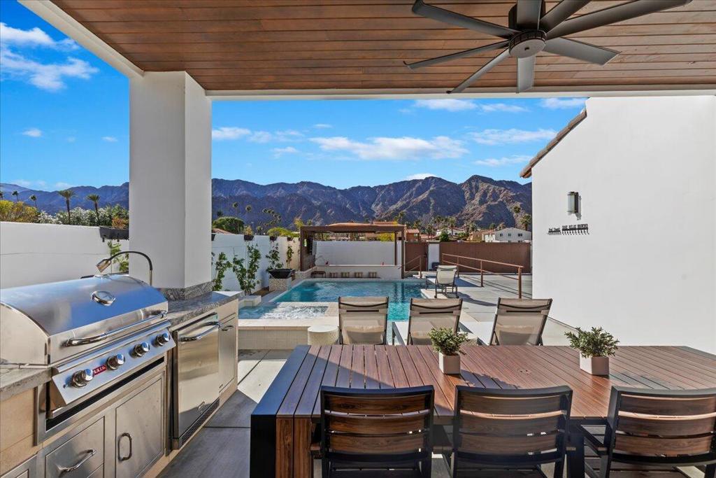 Experience Santa Barbara charm in Old Town La Quinta with this new build luxury 4-bedroom retreat. Featuring ensuite baths, dual masters, a resort-style pool with swim-up bar, firepit lounge with TV, outdoor dining & BBQ, and putting green. High ceilings, quartz finishes, balconies with mountain views, and seamless indoor-outdoor living create the perfect desert escape steps from dining, cafes, and shopping.