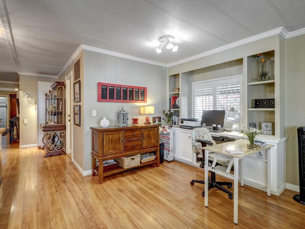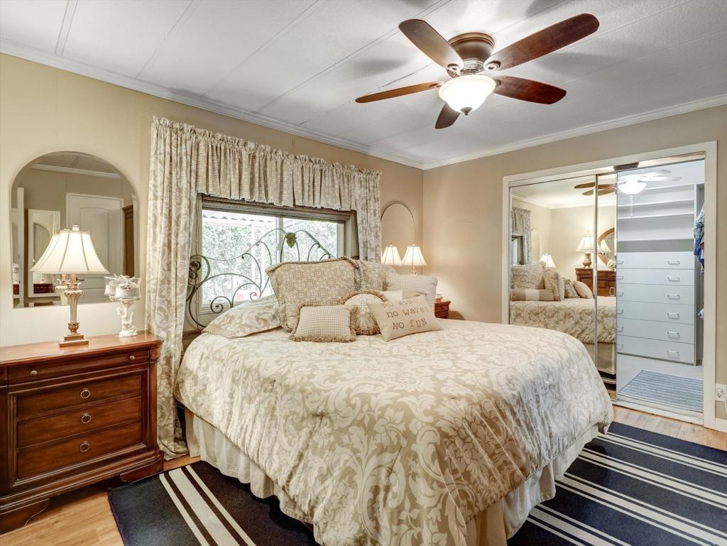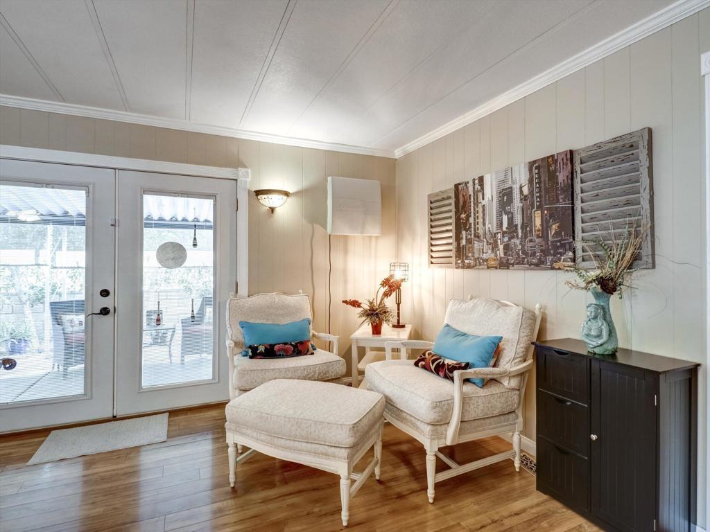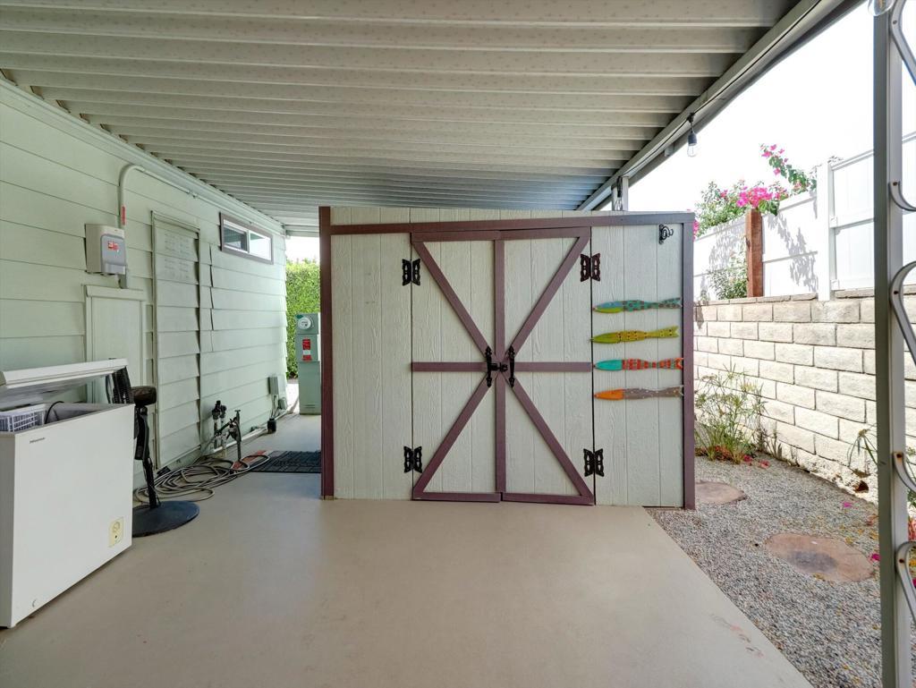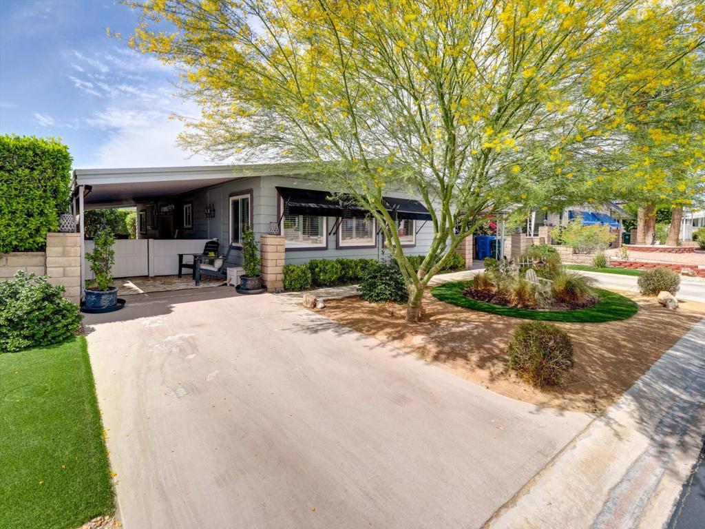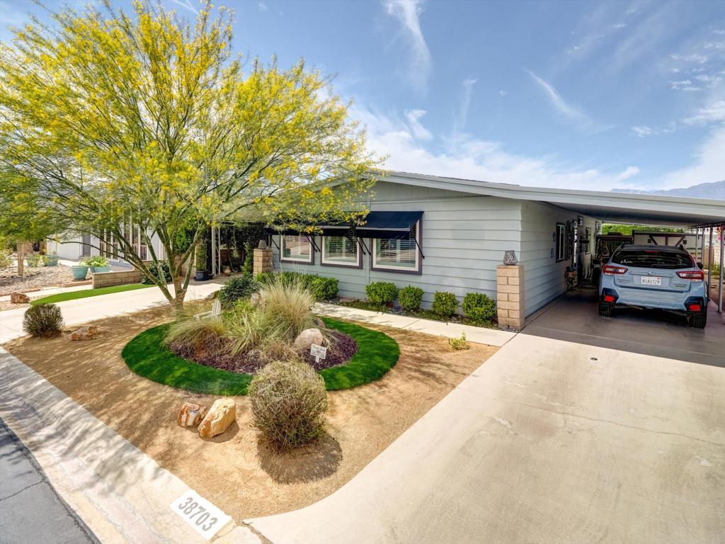 This beautifully updated two-bedroom, two-bath home boasts designer finishes throughout. Crown molding and laminate floors provide a touch of elegance, while shutters in the living and dining areas enhance the welcoming atmosphere--perfect for entertaining guests. The kitchen is equipped with custom quartz countertops, a modern backsplash, ample cabinetry with soft-close drawers and pull-out shelves, newer stainless-steel appliances, and a practical butcher block island, creating an ideal space for cooking. The primary bedroom features a spacious walk-in closet with built-ins and mirrored doors, making the actual sq. footage to 1314 sq. ft. , as well as an en suite bath with a large tiled walk-in shower. For guests, there's a Murphy bed and a dedicated bathroom to ensure comfort during their stay. Outside, a landscaped private patio makes an excellent spot for relaxing or hosting gatherings. Situated in the heart of the desert, Palm Desert Greens Country Club is considered one of the top 55+ communities in the area. The affordable $400 monthly HOA fee covers 24/7 guard-gated security, cable TV, internet, trash service, FREE GOLF, and so much more. Come see why this exceptional home could be your ideal retreat. SELLER IS MOTIVATED AND ALL REASONABLE OFFERS WILL BE CONSIDERED!