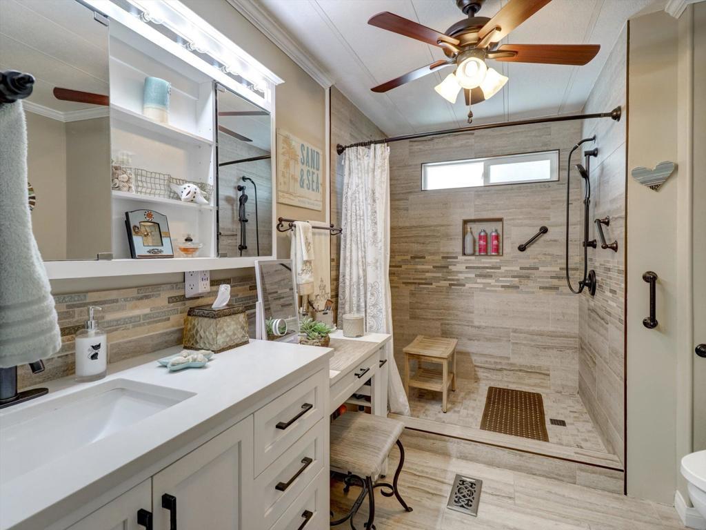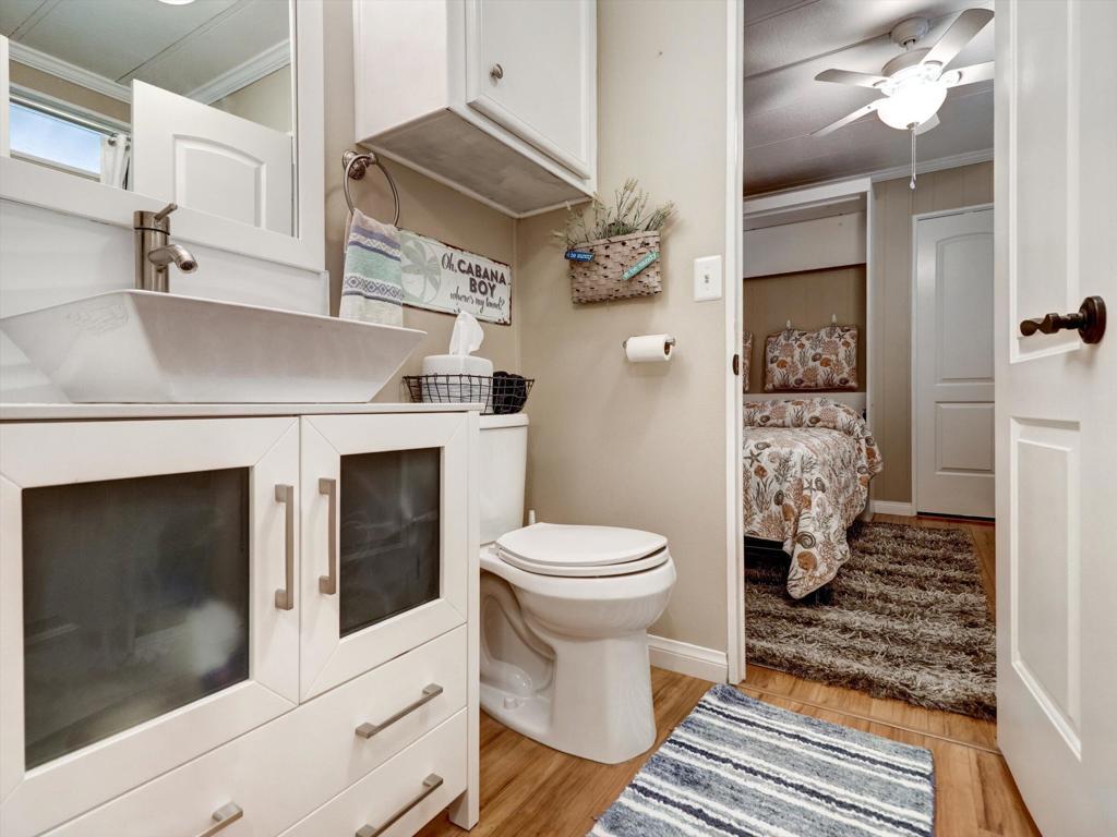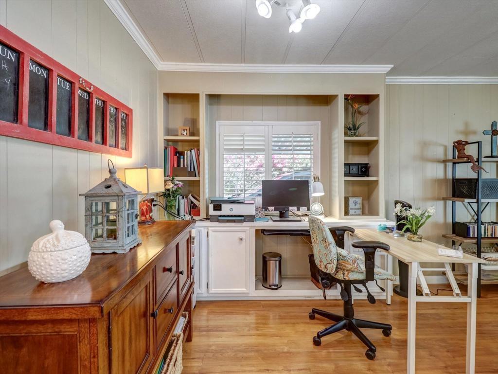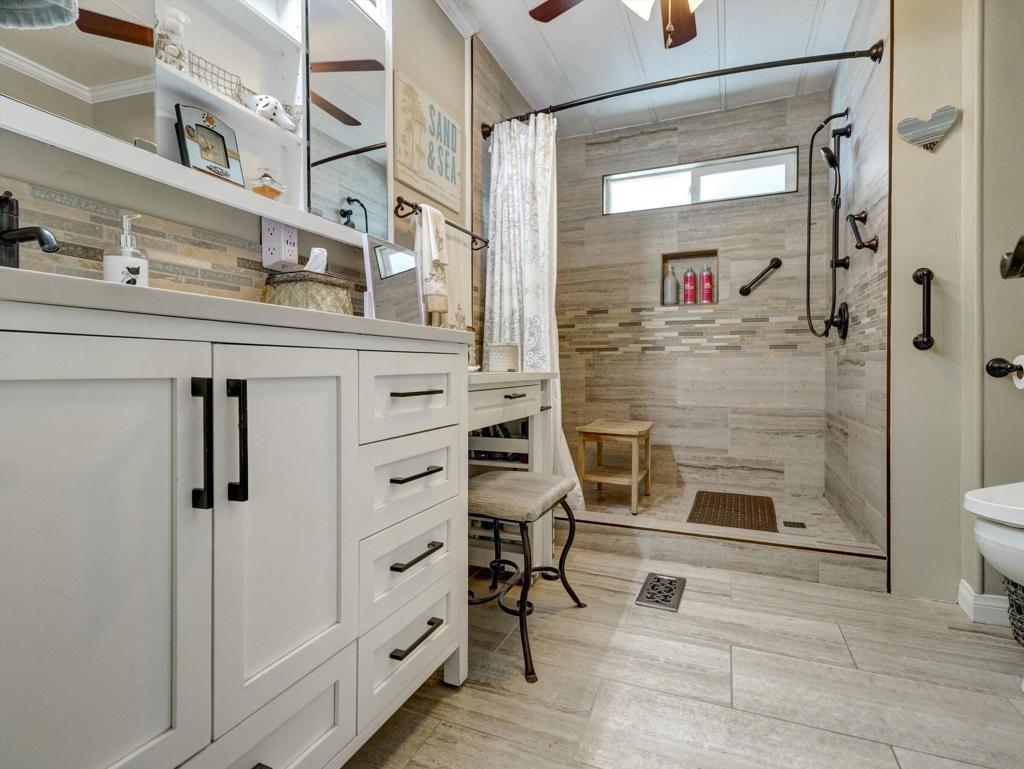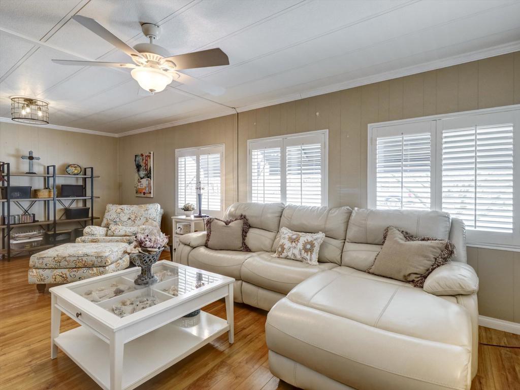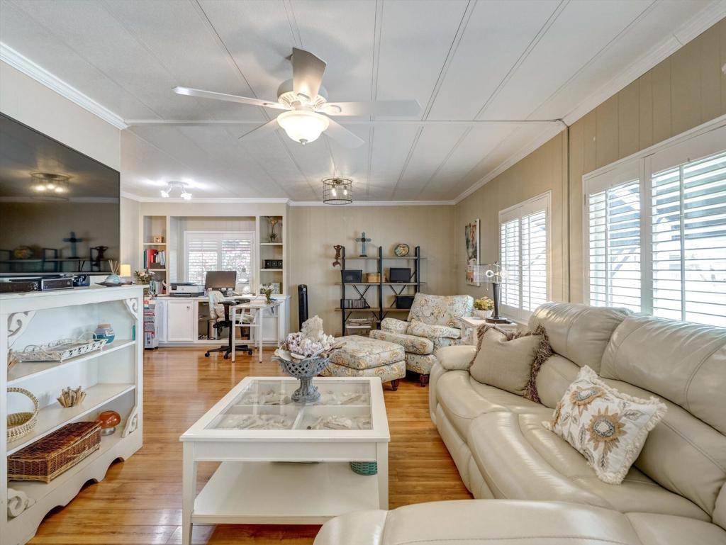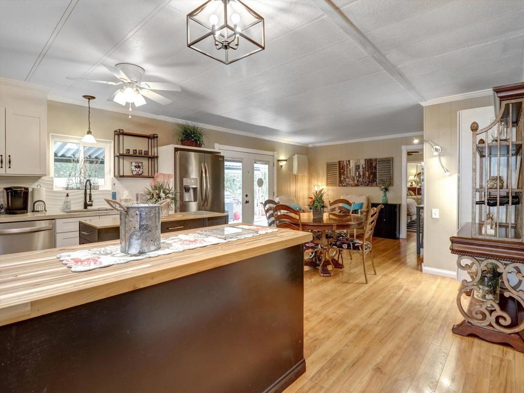 This beautifully updated two-bedroom, two-bath home boasts designer finishes throughout. Crown molding and laminate floors provide a touch of elegance, while shutters in the living and dining areas enhance the welcoming atmosphere--perfect for entertaining guests. The kitchen is equipped with custom quartz countertops, a modern backsplash, ample cabinetry with soft-close drawers and pull-out shelves, newer stainless-steel appliances, and a practical butcher block island, creating an ideal space for cooking. The primary bedroom features a spacious walk-in closet with built-ins and mirrored doors, making the actual sq. footage to 1314 sq. ft. , as well as an en suite bath with a large tiled walk-in shower. For guests, there's a Murphy bed and a dedicated bathroom to ensure comfort during their stay. Outside, a landscaped private patio makes an excellent spot for relaxing or hosting gatherings. Situated in the heart of the desert, Palm Desert Greens Country Club is considered one of the top 55+ communities in the area. The affordable $400 monthly HOA fee covers 24/7 guard-gated security, cable TV, internet, trash service, FREE GOLF, and so much more. Come see why this exceptional home could be your ideal retreat. SELLER IS MOTIVATED AND ALL REASONABLE OFFERS WILL BE CONSIDERED!