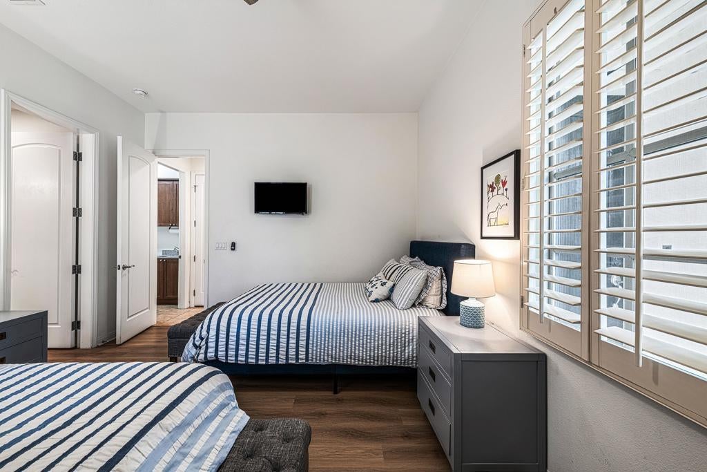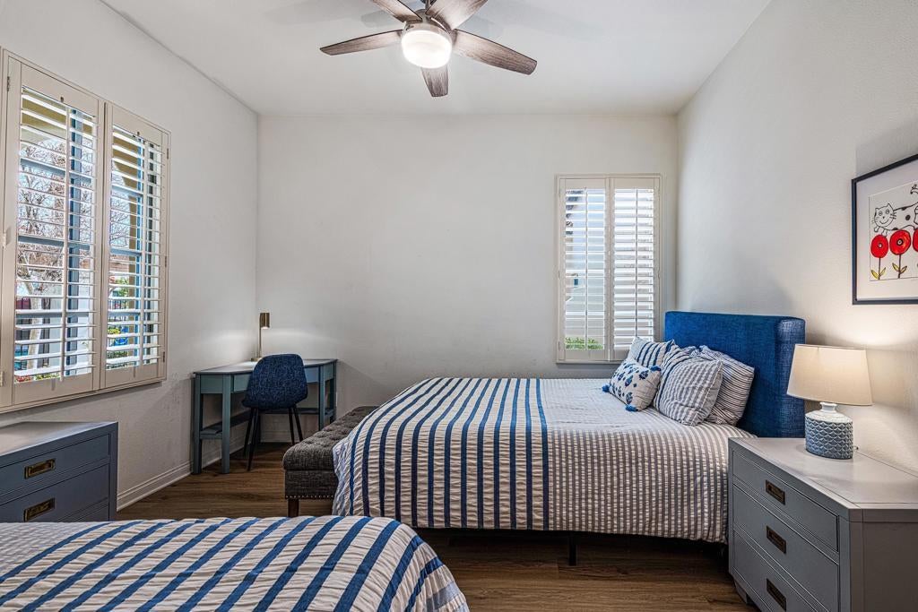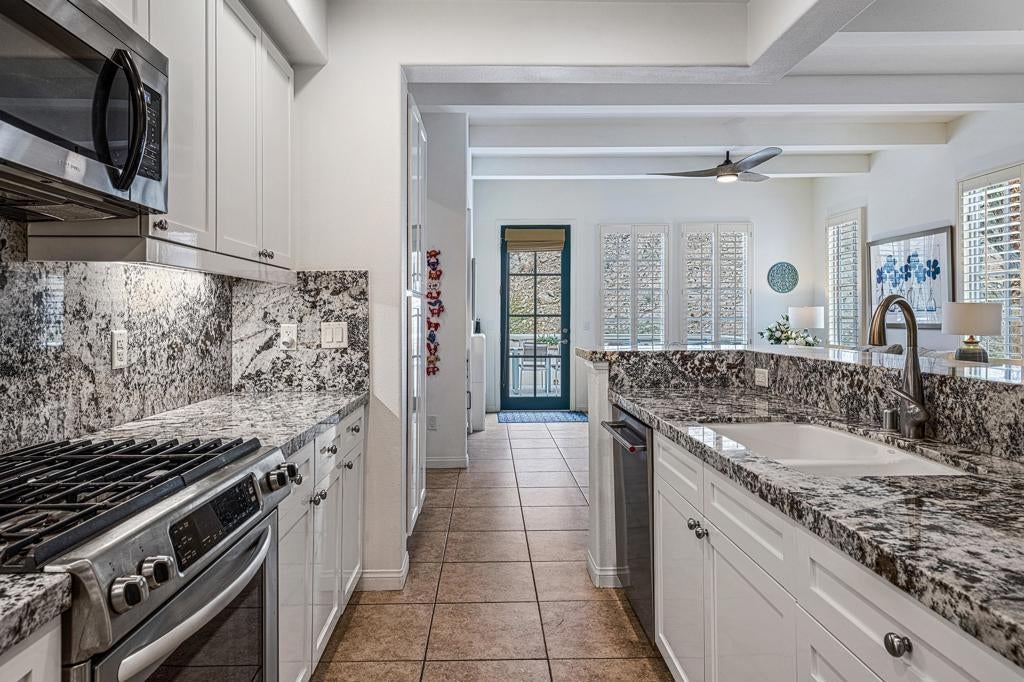 Light, Bright 3BR/4BA Townhome nestled up against the mountains of the Santa Rosa Nat'l Monument. This is the largest floorplan in Legacy Villas, with 3 separate bedroom suites (2 down, 1 up), each ensuite with double vanities. The 2-car garage has direct access into the townhome. The adjacent community pool and spa feel like they're your own. Located on the 'sunny' side of the community, this townhome remains in the sun later each afternoon. HOA's include access to all amenities of the community plus building and roof maintenance, landscape and landscape maintenance, street and street maintenance, waste and recycling, and internet and cable. Legacy Villas is a residential resort development with 24/7 guarded gates, 12 pools (including 2 lap pools), 11 spas, 19 fountains, citrus, a 11,000+ sq. ft. Clubhouse w/state of the art fitness center and The Legacy Grille. It is one of only a few communities in the City of La Quinta where short-term rentals are allowed. So, here is a seasonal or vacation home that can help pay for itself when you are not enjoying it! Legacy Villas -- Resort Living at its Best! Offered furnished with some exceptions.