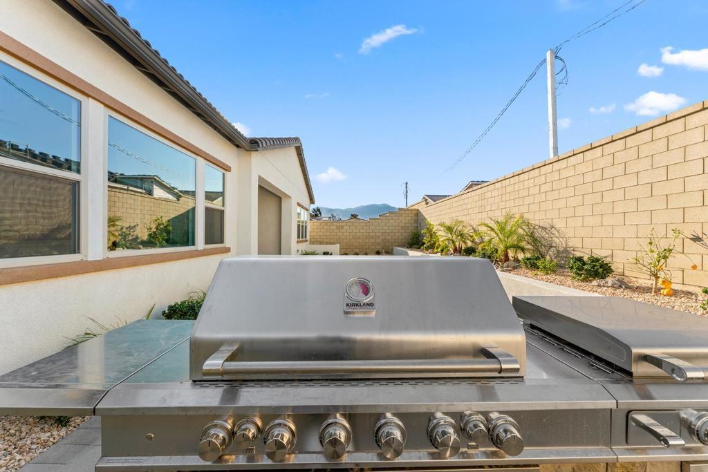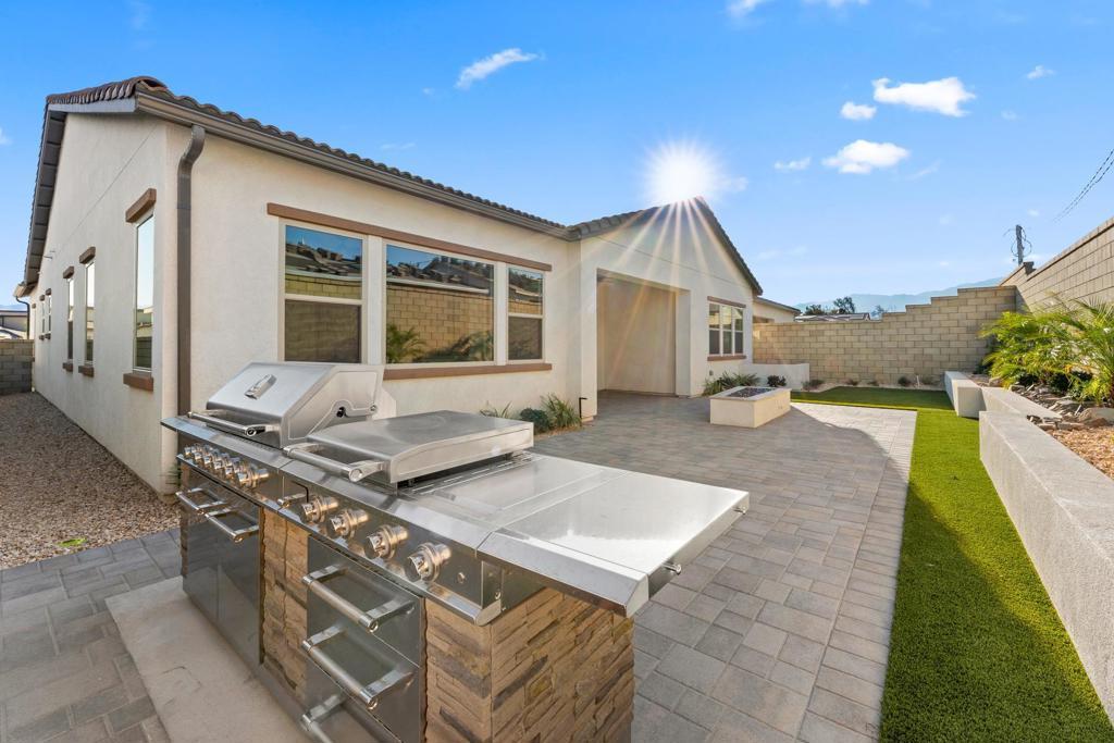 Brand-new 2025 construction located in the city of Palm Desert. This never-lived-in Auburn model built by Pulte Homes offers 3 bedrooms plus a large den and 2 bathrooms, providing a flexible floor plan ideal for a home office, gym, media room, or potential fourth bedroom. The home features a modern open-concept layout with energy-efficient construction and contemporary finishes throughout. This home has SOLAR. The fully finished rear yard is a standout feature, complete with a built-in BBQ and outdoor fireplace, ideal for entertaining and enjoying desert living year-round. The two-car garage is equipped with an electric vehicle charger. Situated within a gated, all-age community, residents enjoy access to resort-style amenities including a clubhouse, pool, spa, hot tub, outdoor cooking and barbecue areas, picnic areas, and a playground. Conveniently located near shopping, dining, golf, and major amenities, this turnkey property is ideal for tenants seeking a high-quality long-term lease in a brand-new home