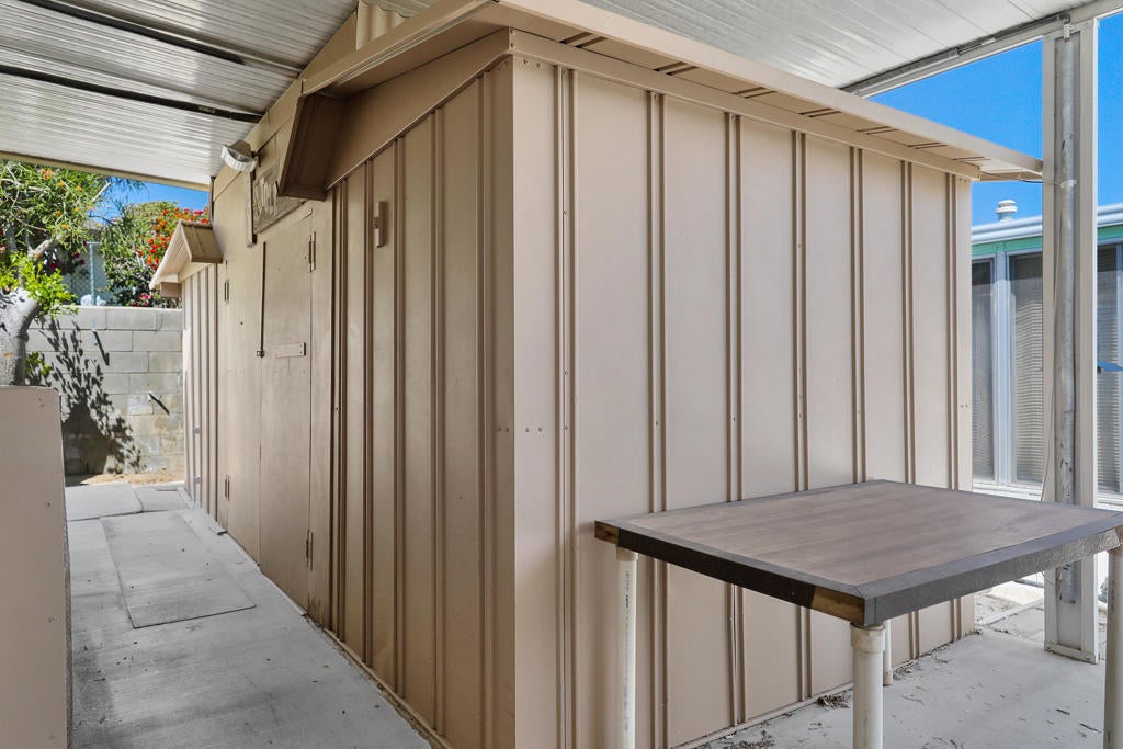 This home boasts a very private, large, fully Fenced Side Yard w/ Gazebo and a Zen-Like patio make this one of a kind home super special!!!! Nicely remodeled with open Living Room, Dining Room and Kitchen with fabulous mountain views through the oversized picture windows! Situated at the top of the park, there are fabulous views from everywhere inside the home! This Beautifully upgraded home is Open, Airy and Light filled. Glass slider doors in dining area open up to the large, patio and yard. The new metal roof Gazebo offers a great area for entertaining and the new Trex fencing offers privacy and safety for your pets! The Kitchen offers lots of storage, pantry, new Stainless French Door Refrigerator, Wall Oven/Microwave combo, 5 burner gas cooktop, and designer backsplash. Stunning lighting over 2 separate eating areas! New, easy care Vinyl Plank Floors though-out home. Separate Laundry area with lots of storage, washer/dryer included. Both Bathrooms have newer Walk-in Showers with handrails and pull down seats. Upgraded faucets, handles, & Medicine Cabinets. New round accent mirror and designer Wallpaper. Master Bathroom is extra large with his and hers sinks, linen closet and laundry hamper. Master bedroom has walk-in closet and a separate wall AC Unit. 2-car Carport with double sized Shed w/ electricity and Cabinets. Beautiful desert Landscaping w/ electric lighting complete the look! Indian Springs Mobile Home Park is a quiet and beautifully maintained Community with Greenbelts, heated Pool, Spa & Clubhouse. 360 degree Mountain views make it feel like an exclusive Resort! Located only 5 minutes from The Fabulous El Paseo Shopping & Dining District and The Living Desert Zoo! Indian Springs is a privately owned Park, the Space rent of this home is only $720 a month and is under Rent Control and has no Land Taxes ! An Amazing Lifestyle with Beauty at a Bargain awaits you! No Mandatory HOA, Enjoy a fun Resident Association Social Club!