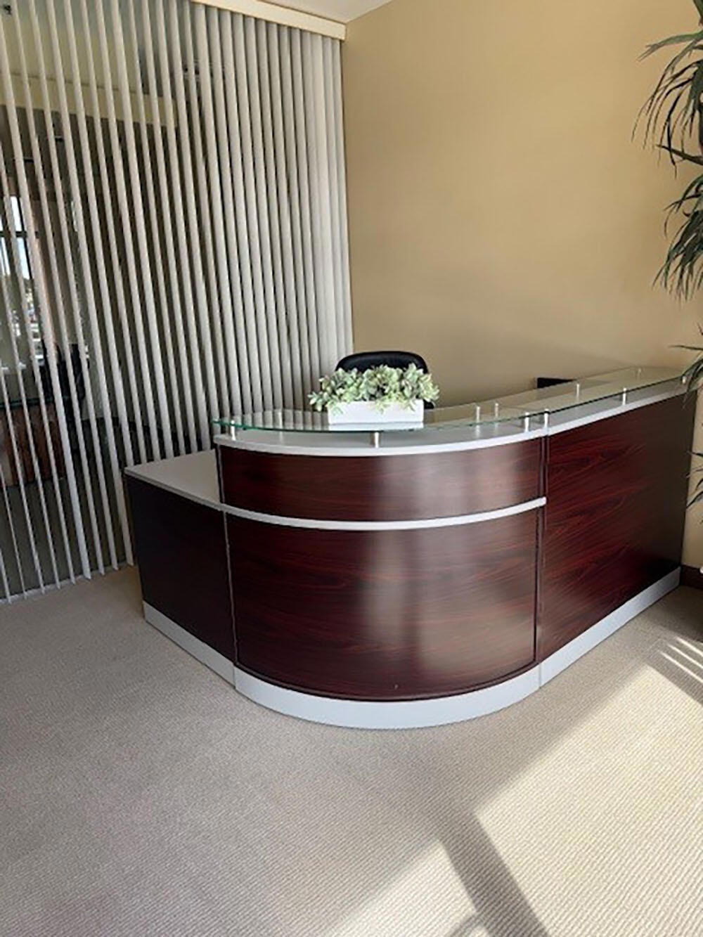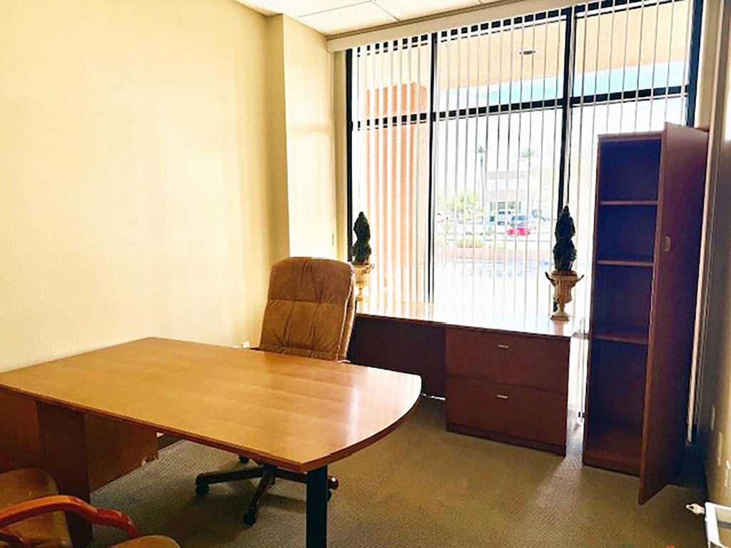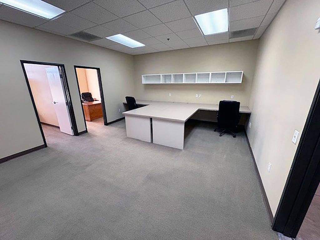 Versatile Flex Space in Washington Business Park. Close to 10 Fwy and large shopping and retail centers, major fast food chains. Ste 1/2 - Beautiful entrance with reception desk, plant, light, and airy. Nice conference room with a large desk, built-in workspace and storage, restroom ADA. Two offices are beautifully appointed. First office: large desk, credenza, storage cabinet, large desk, and three executive chairs. The second office has a large desk, credenza, bookshelf, and one executive chair. Middle bull pen section with two large workspaces and storage, also sink, kitchen area, room for refrigerator, and lots of storage. Also has paint and all text for touchups. The warehouse area is separated into two sections. Both have roll-up doors both have access to the outside. There is a chain-link gate that could go between if the client needs any additional security.