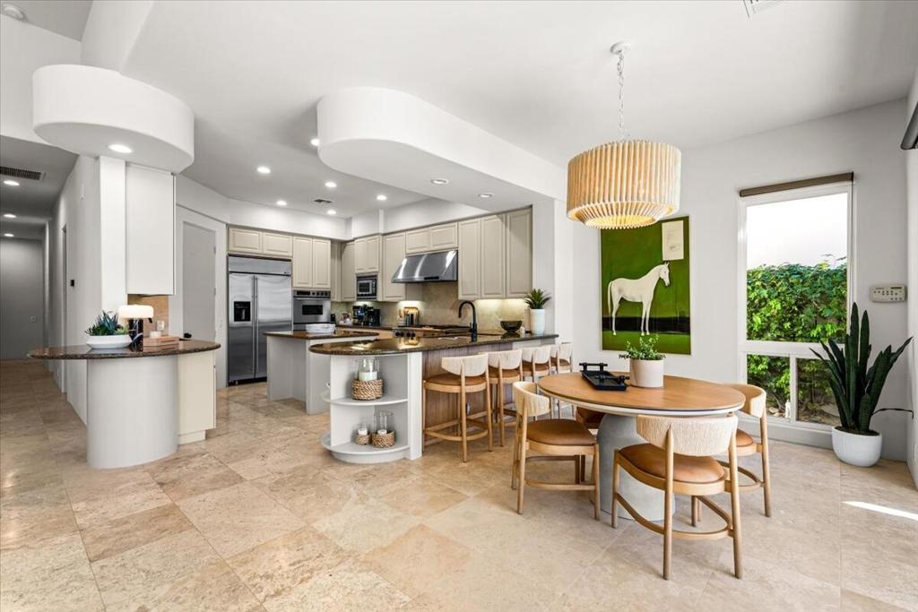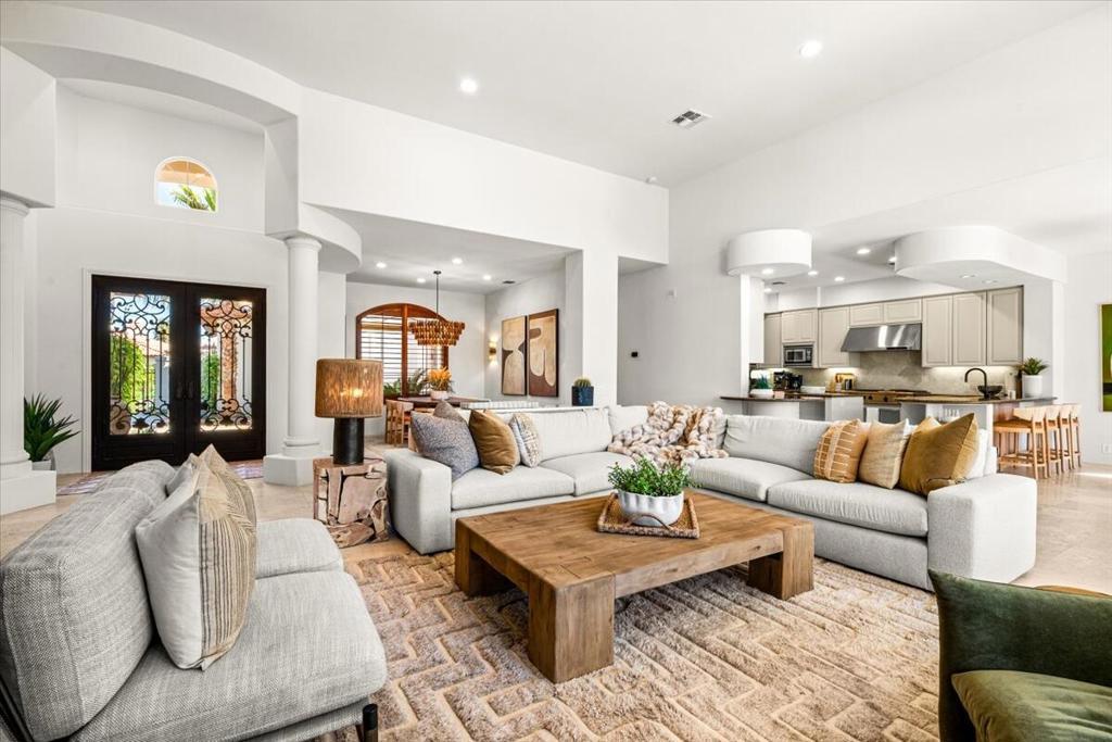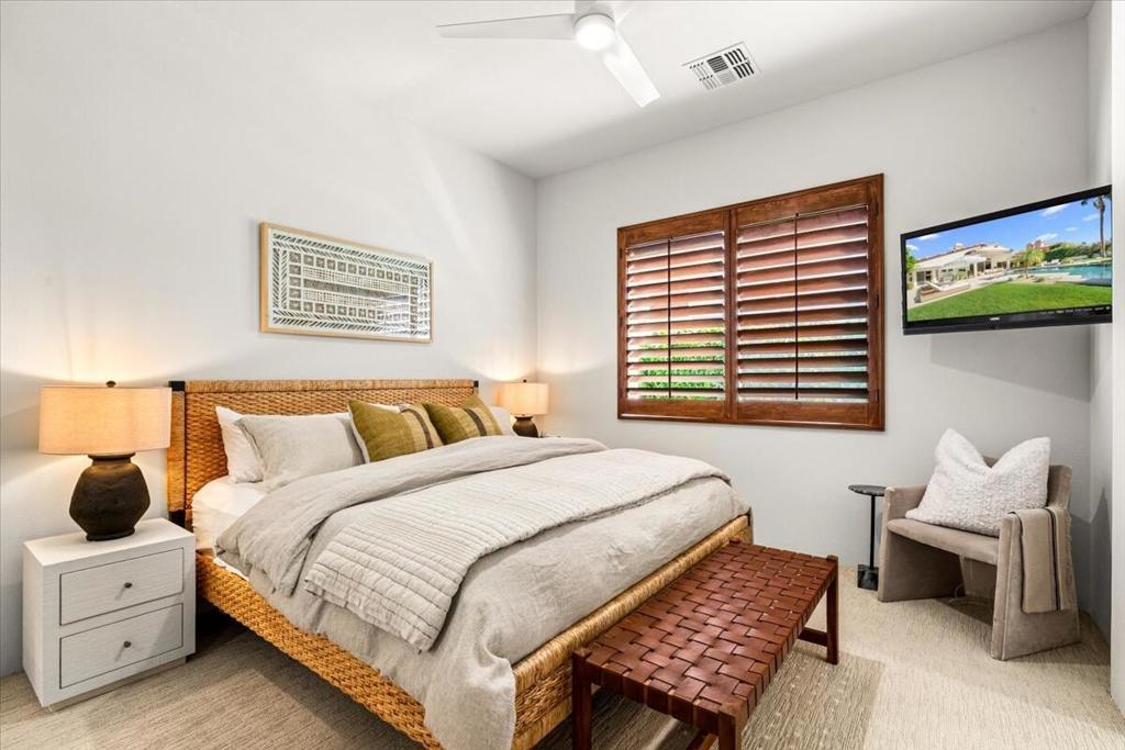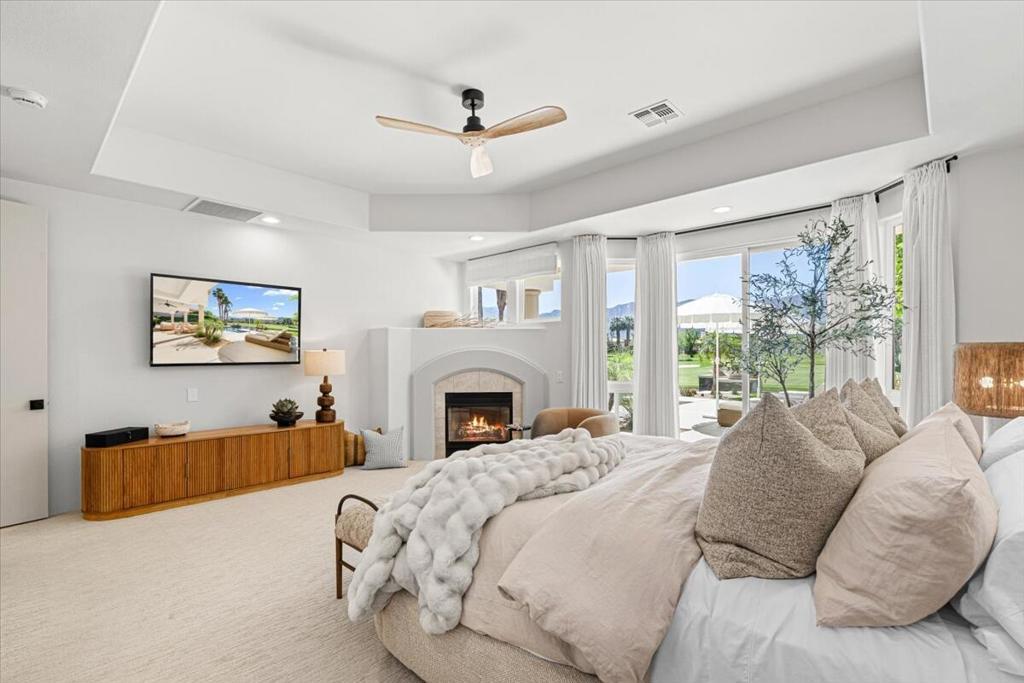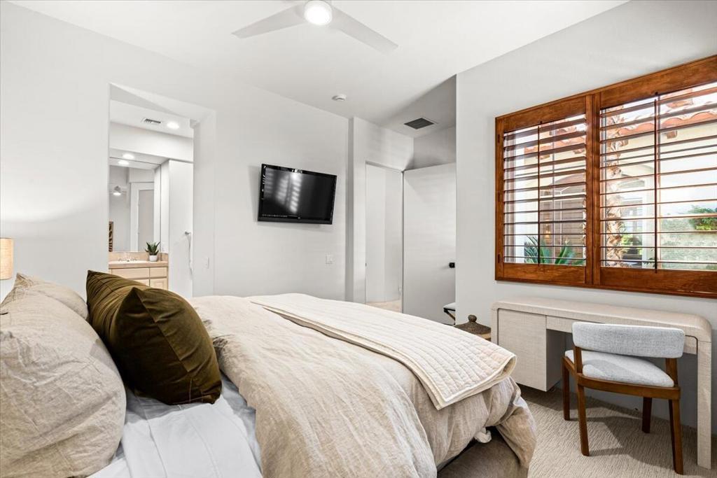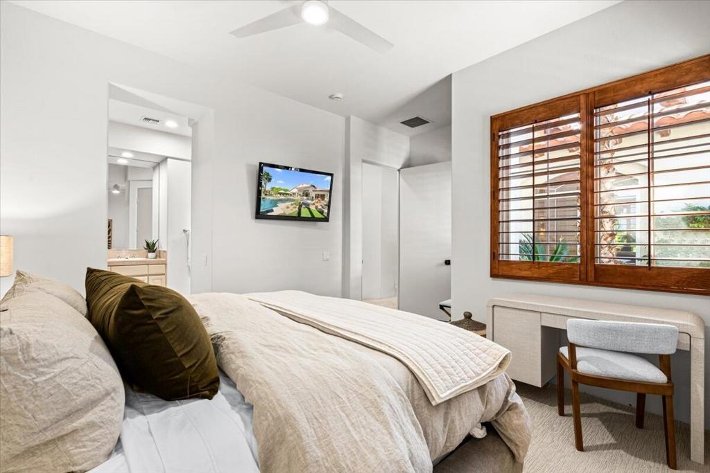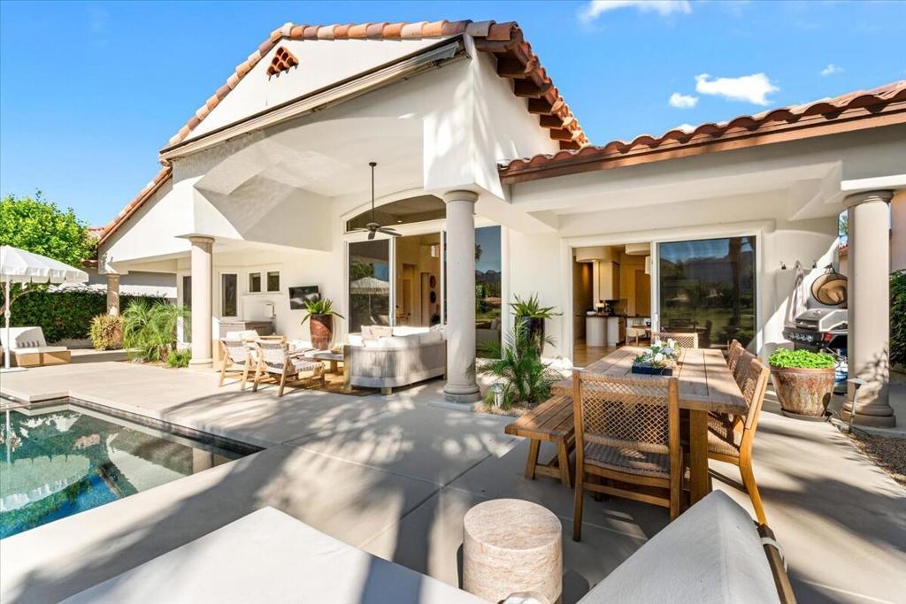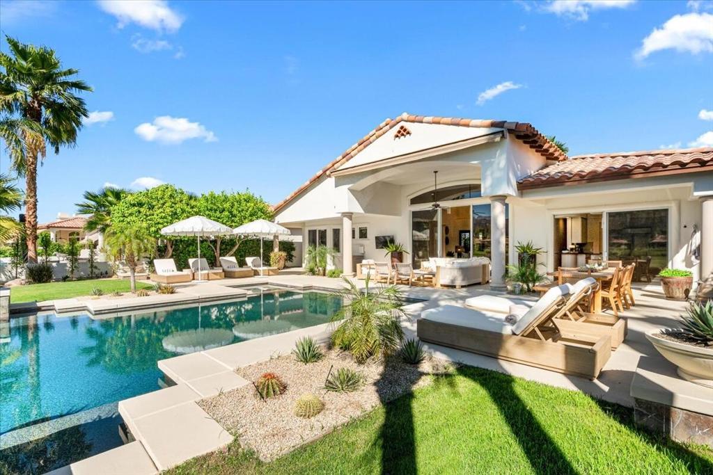 Welcome to this beautifully reimagined 3 bdrm 4 bath residence located in the highly sought after Rancho La Quinta Country Club. Thoughtully renovated with high end finishes and designer touches throughout, this home offers the perfect blend of elegance, comfort and privacy. Step inside to an inviting open concept living space featuring stylish furnishings, abundant natural light and seamless indoor - outdoor living. The spacious living room is ideal for relaxing or entertaining, while the dining area and updated kithcen provide a perfect setting for gathering. Each bedroom is generously sized with King beds and an expansive ensuite creating a turnkey luxury experience! Enjoy breathtaking views from the private outdoor spaces, designed for both relaxation and entertaining. Whether your taking in the serene surroundings or enjoying a quiet evening, this home delivers the ultimate desert lifestyle! Please call for availability!!