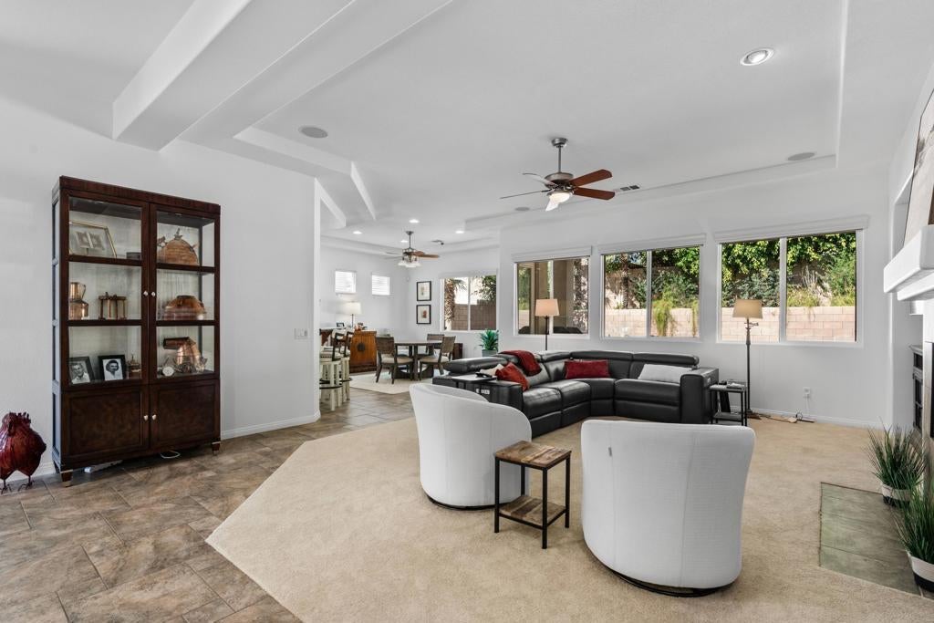 Perfectly positioned within the sought after enclave of La Quinta Del Oro, this beautifully appointed residence offers over 3,000 square feet of refined desert living designed for both ease and elegance. A thoughtfully conceived open floor plan unfolds beneath high ceilings and abundant natural light, creating a seamless connection between living, dining, and entertaining spaces. At the heart of the home, the gourmet kitchen is appointed with stainless steel appliances and generous preparation space, overlooking a spacious great room anchored by a decorative fireplace, ideal for both everyday living and effortless gatherings. The primary suite is a tranquil retreat, complemented by well-proportioned guest bedrooms and a versatile den or office, offering flexibility for today's lifestyle. Outdoors, the home reveals a private resort-style setting rarely found, an inviting pool and spa framed by mature landscaping, a covered patio for shaded lounging, and a sense of seclusion that enhances both relaxation and entertaining. Ideally located near the world class Indian Wells Tennis Garden and moments from renowned dining, shopping, golf, and cultural amenities. A detached casita provides additional privacy for guests or extended stays, completing a property that balances comfort, flexibility, and prime desert positioning. Offered furnished per inventory.