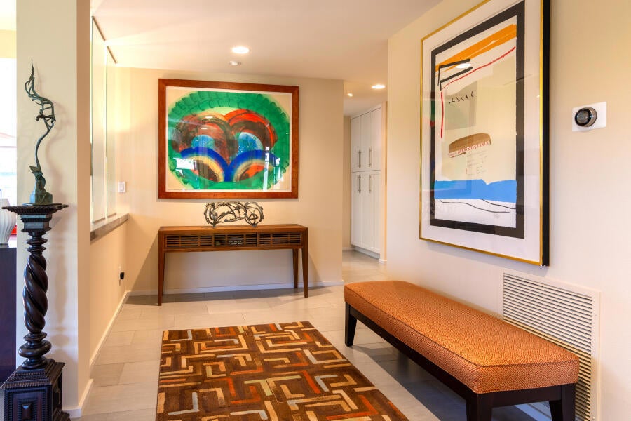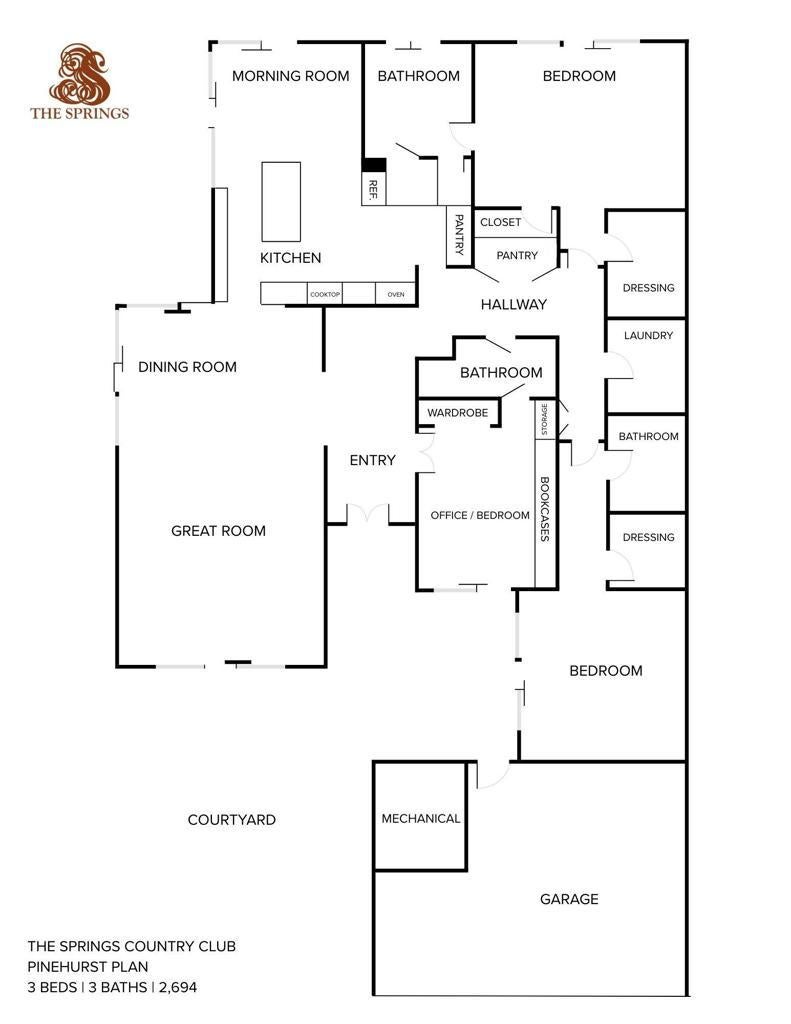 This is not your ordinary Pinehurst model, it has been highly modified and reimagined, where timeless elegance meets modern luxury. You enter through the private and peaceful front courtyard. The home has been updated with classic finishes, custom details, and sophisticated design elements creating a warm and inviting atmosphere. The open-concept living area is anchored by a stacked-stone fireplace and framed by an illuminated tray ceiling and expansive windows that bathe the space in natural light. Perfect for entertaining, the living room flows seamlessly into the dining area and chef's kitchen that features Viking and Wolf appliances, marble countertops, and mountain views. Whether you're hosting friends or enjoying a quiet evening at home, the indoor-outdoor connection creates a relaxed, connected environment. Step outside the kitchen and primary is your own personal oasis where the Pebble Tec saltwater pool and spa are surrounded by lush landscaping and ambient lighting, creating the perfect private setting for dining and evening gatherings. The built-in BBQ, spacious patio, and multiple lounging areas make it easy to enjoy the best of desert living year-round. The primary suite is a Zenlike sanctuary, opening directly to the pool and spa through floor-to-ceiling glass sliders. A spa-inspired bathroom with a soaking tub, dual vanities, and a walk-in closet complete this retreat. A second primary suite overlooks the private front courtyard, providing privacy for you and your guests. The third bedroom, which also features an en-suite bath, has been redesigned as an office--ideal for working from home. Additional highlights include temperature-controlled garages for vehicles and a golf cart, a dedicated laundry room, tankless water heater, whole-home water softener, newer HVAC systems, remote controlled shades throughout, and audio-visual setups with Sony video and Sonos sound. Environmentally conscious features include an electric vehicle charger and 31 leased solar panels providing sustainability and efficiency. Located on a corner lot, within the prestigious Springs Country Club, residents enjoy world-class amenities including championship golf, tennis, pickleball, fitness and wellness facilities, and a vibrant social calendar that defines the desert resort lifestyle. This extraordinary home offers the perfect blend of style, comfort, privacy and convenience in one of Rancho Mirage's most desirable communities.