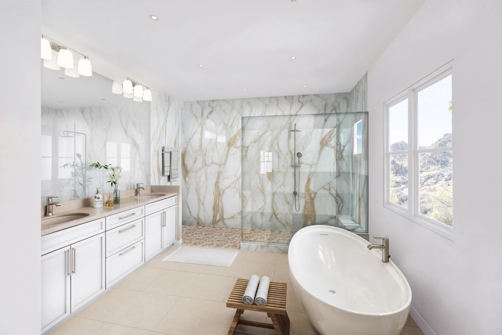 Welcome to Desert Creek at Stone Eagle, an exclusive enclave in South Palm Desert. We are nearing completion by summer. This residence is one of just six homes in the final phase of a limited collection of 46 luxury homes, peacefully tucked into the mountains and surrounded by natural beauty--a shimmering lake, running streams, cascading waterfalls, and endless mountain vistas. Located in a gate-guarded community only 1.3 miles from El Paseo--renowned for upscale dining, boutique shopping, art galleries, and year-round events--Desert Creek also sits adjacent to the famed Stone Eagle Golf Club. Residents enjoy private access to hiking trails that wind through the majestic Santa Rosa Mountains, right from their front door. The exterior showcases timeless Tuscan architecture, while the interiors offer a refined soft-contemporary design. Exceptional features include: *Wolf & Sub-Zero appliances *Quartz countertops *Ceramic or plank flooring options *Lutron smart-home system *Solar power system *Spacious walk-in closets & pantry *Great room with wall-to-wall disappearing glass doors for seamless indoor-outdoor living *Private pool & spa, fire-pit, lounge, and creekside setting with the soothing sound of a nearby waterfall *Oversized portico pre-wired for TV and speakers *Beautifully designed landscape And so much more...... This thoughtful great-room floor plan includes four bedrooms, five bathrooms, a guest den, and a flexible office/bonus room. The backyard borders a natural creek, enhancing the tranquil ambiance that defines Desert Creek at Stone Eagle. Come experience the serenity, luxury, and natural beauty that makes this community truly exceptional..