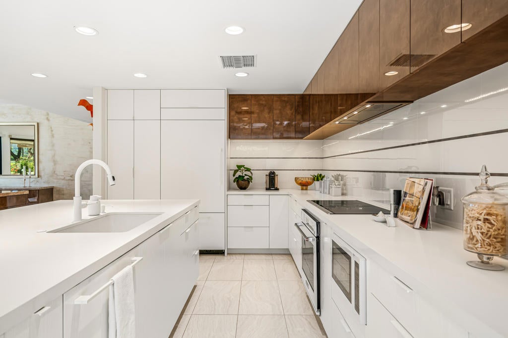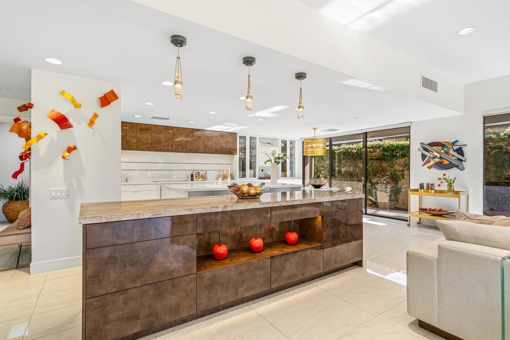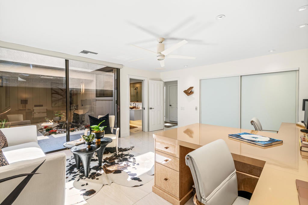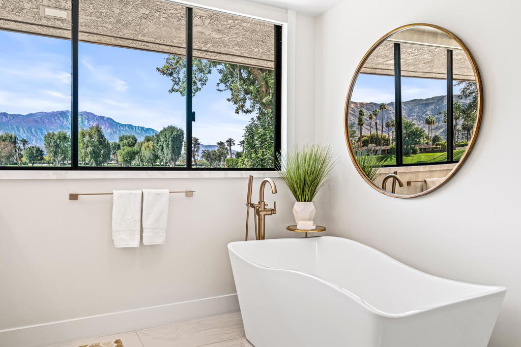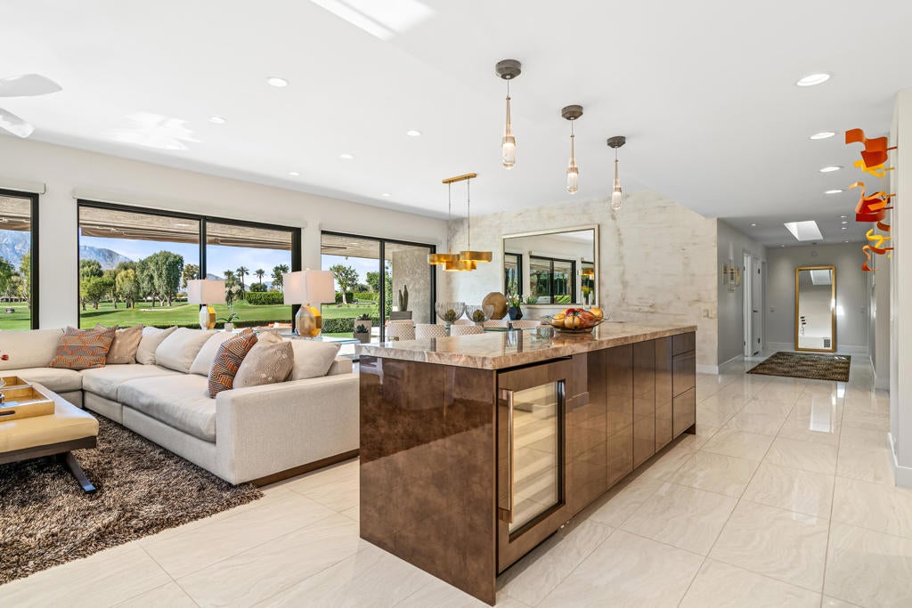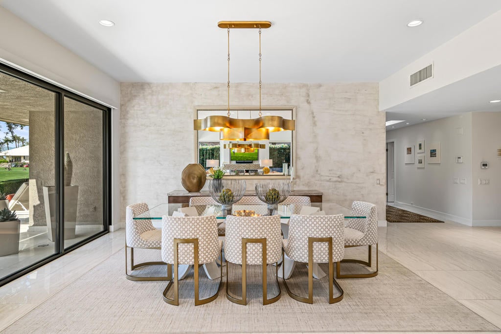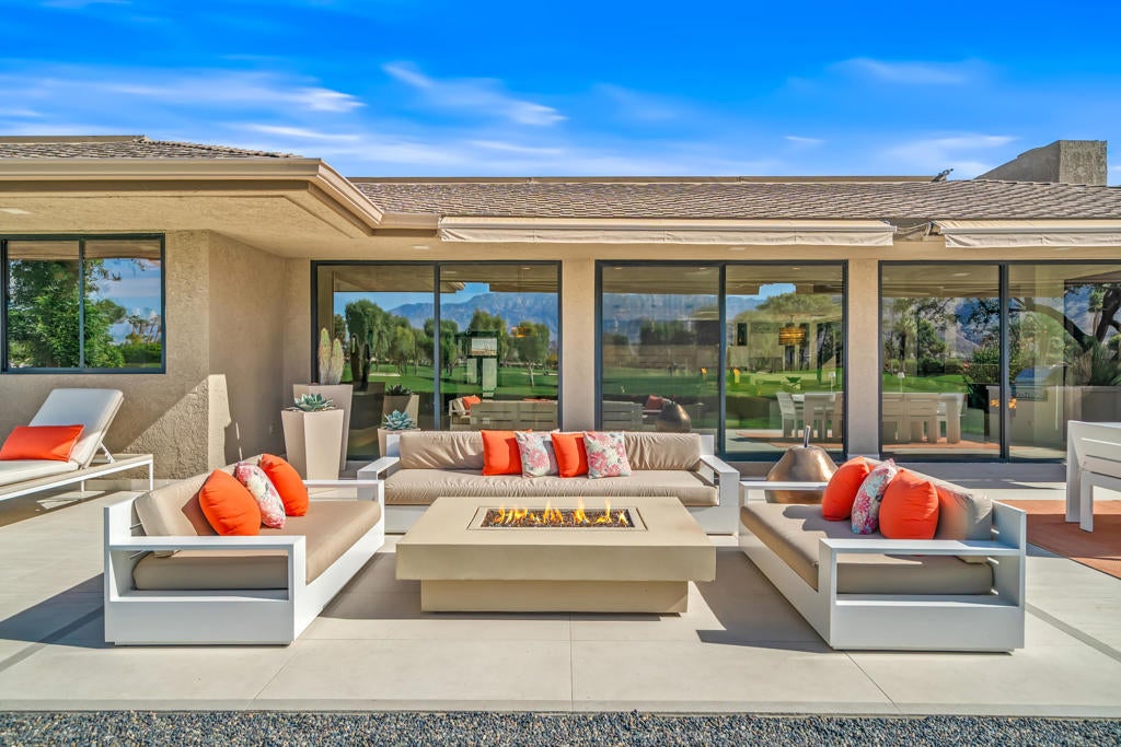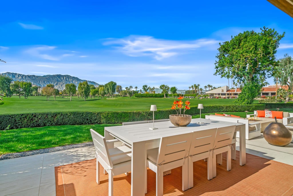 Spectacular west-facing residence sits on one of the most coveted panoramic lots in The Springs Country Club, offering sweeping fairway views, endless desert sky, and dramatic sunsets over Mount San Jacinto.Enter through twin pivot doors into a light-filled interior where soaring ceilings and walls of glass immediately draw the outdoors in. The home balances architectural presence with everyday comfort, delivering a calm, sophisticated environment designed for effortless luxury living.This is a true top-to-bottom rebuild completed to exceptional standards. It was thoughtfully designed and finished without consideration for resale profit--this is not a flip. Every surface, system, and detail reflects high-quality materials, expert craftsmanship, and careful planning. The home presents like new construction. Includes solar for low cost energy.Offered fully furnished, the custom pieces were selected specifically for the space to enhance both the serene setting and the overall luxury experience.The west-facing outdoor living area is designed for year-round enjoyment, with multiple lounge spaces, firepit, dining area, and built-in grill--all positioned to capture changing skies, mountain light, and miles of golf course views.The floor plan includes three ensuite bedrooms, with one guest suite currently configured as a custom double office. The primary suite offers spa-level finishes and its own stunning panoramic outlook.For buyers seeking a rare combination of premier location, exceptional quality, and move-in perfection, this is a must-see.