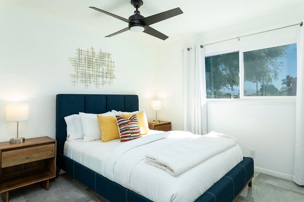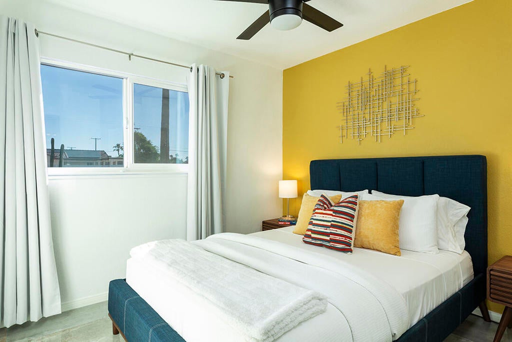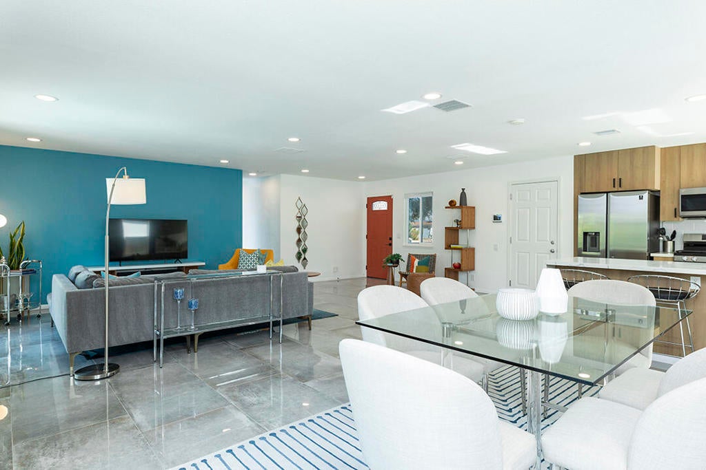 Experience luxury desert living at its finest with this fully updated and stylish 3-bedroom, 2-bathroom home offering a resort-style backyard and beautiful mountain views. Situated on a generous corner lot, this immaculate property is perfect for both entertaining and relaxing in true Palm Springs style.From the moment you enter, modern design and comfort greet you. Updated windows and doors fill the home with natural light while showcasing the gleaming tile flooring, designer color palettes, and surrounding mountain scenery. The flexible layout includes a spacious living area and a secondary sitting area ideal for lounging or reading.The open kitchen features light wood cabinetry, a full suite of stainless-steel appliances, a sleek tile backsplash, and a dining counter with a waterfall edge. Adjacent to the kitchen is a welcoming space with a fireplace currently serving as the dining area, which is ideal for gatherings and conversation. From here, sliding glass doors connect the interior to a private resort-inspired backyard complete with a sparkling pool, raised spa, and multiple seating areas. Several lounging zones feature low-maintenance artificial turf and there is a cozy gas firepit for evening enjoyment. A stylish dining pergola with bistro string lighting adds a touch of romance to outdoor entertaining.The primary suite opens directly to the backyard and offers a tranquil retreat with mountain views, ample closet space, and a beautifully updated en-suite bathroom. Two additional bedrooms are located at the front of the home with bright eastern exposure, accompanied by a designer hall bath featuring modern tile and fixtures.Additionally, there is an attached two-car garage with stacked laundry. The side yard provides RV parking in case your Airstream needs a home. For buyers seeking economic flexibility, this property qualifies for a junior rental permit through the City of Palm Springs, allowing up to six short-term rentals annually and unlimited stays of 30 days or longer--making it a perfect option for those wishing to offset living expenses with rental income.