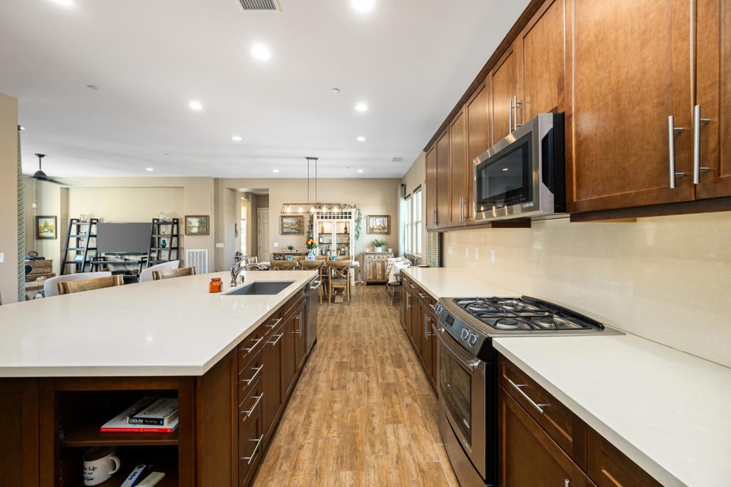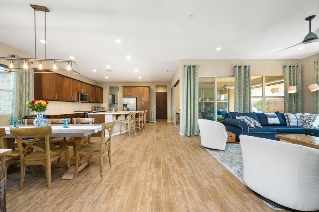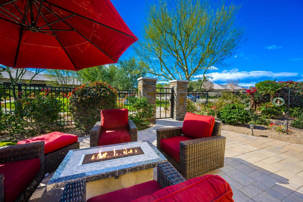 Located in the 'all ages' section of Trilogy Polo Club, this rarely available Solare model, with an exterior 'desert' elevation, features an open concept floorplan with a south-east facing greenbelt/park setting. Upgrades include a pre-paid solar lease to keep your electric bills to a minimum, a 15' rolling wall of glass that extends your living space onto the covered & pavered patio, tile flooring throughout most of the house, recessed lighting, upgraded shaker-style cabinetry and more! To maximize privacy for your guests, the guest suite is located on one side of the home, with the guest bathroom having a ceramic tile shower-over-tub combo. The den overlooks the front patio which is connected to the side yard. The kitchen boasts a large center island and has Jenn-Air stainless steel appliances. Perfect as a home office, the smart-space/laundry room features upper/lower cabinetry and built-in desk space with drawers. The primary bathroom has dual vanities and a large tile shower with glass/stone tile accent band. To keep your belonging cool during the warmer months, the garage features a mini-split a/c unit, along with epoxy flooring and built-in storage cabinets. Furnishings are available, ask agent. Meticulously upgraded and impeccably maintained, this exceptional home shows better than a model and reflects the seller's unwavering attention to quality and detail. Offering the ultimate in resort-style living. Call for a private showing today.