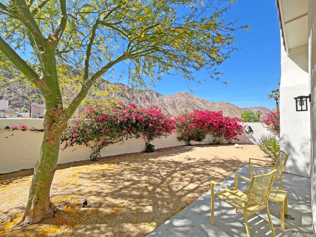 Located on a quiet corner lot in the scenic La Quinta Cove with DRAMATIC MOUNTAIN VIEWS, this exceptional, NEWLY UPDATED AND Partially FURNISHED HOME delivers the perfect balance of all the modern comfort and unparalleled desert charm. NO HOA, and no land lease. Whether you're looking for a full-time residence, vacation getaway, or investment property with steady revenue, this low-maintenance home checks every box. Built in 2002 and updated in 2025 inside and out with designer finishes.Stepping in from the charming gated courtyard you will enjoy an OPEN CONCEPT LAYOUT featuring vaulted ceilings with abundant natural light. The kitchen is a modern workspace with wood construction cabinetry, BRAND NEW ENERGY EFFICIENT STAINLESS STEEL APPLIANCES AND QUARTZ COUNTERTOP. It also features a wood paneled range hood and a long peninsula to provide greatest function and pleasing aesthetics at the same time. The floor plan offers easy flow through the dining and living areas which is great for entertaining. The bright living room is anchored by a cozy fireplace. From there, step outside through the sliding door to the west facing peaceful OUTDOOR SPACE that is sure to impress with breathtaking views framed by happy bougainvillea . There is ROOM FOR A POOL, or other personalized landscaping. The PRIMARY SUITE - also with direct access to the outdoors - is a nice retreat, complete with a stunning en-suite bathroom with OVERSIZED TILED WALK-IN SHOWER, all new fixtures and designer wallpaper along with a WALK-IN CLOSET. The TWO ADDITIONAL BEDROOMS offer flexibility for family life, guests or a home office with a shared full bath. Additional conveniences include an interior laundry room and an attached 2 car garage with storage space and extra outdoor space at the back of the garage. Electricity is provided by IID, known for lower utility rates. This highly sought-after La Quinta neighborhood offers quick access to excellent dining and entertainment opportunities in Old Town La Quinta. Enjoy the weekly farmers market, the thriving arts scene and the scenic HIKING TRAILS JUST 2 BLOCKS AWAY. Golfers will find themselves surrounded by world-class courses, and it's an easy drive to downtown Palm Springs, the high end shopping of Palm Desert's El Paseo or Indio's world famous music festivals! Adjacent empty lot is also for sale if you wanted to extend the property.