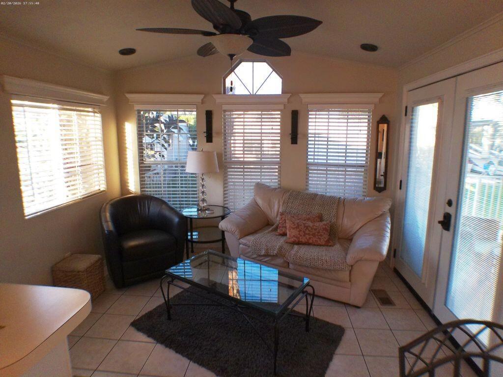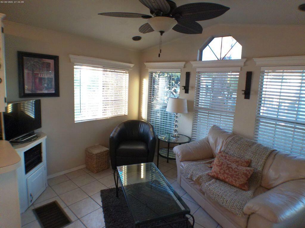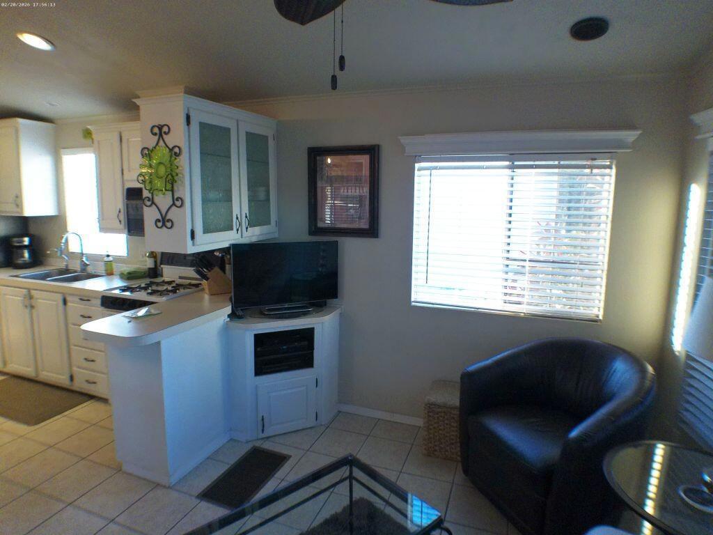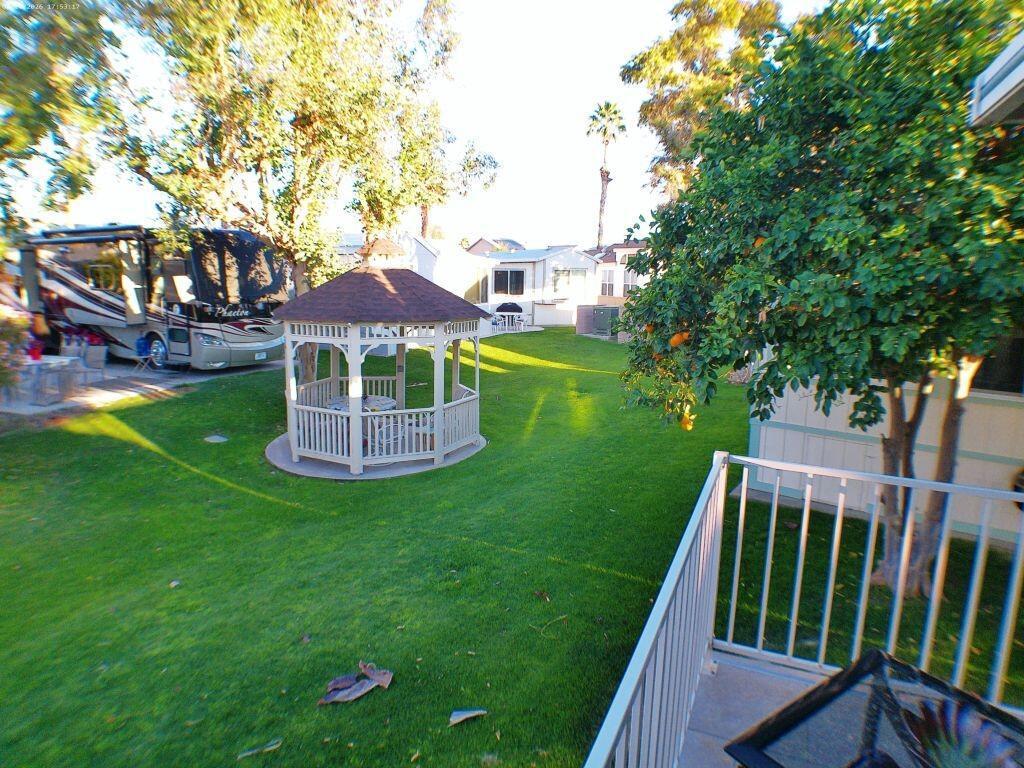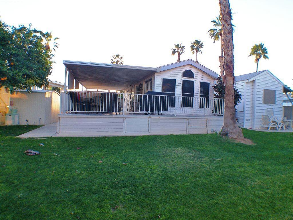 This 1991 Fleetwood has been updated over the years has offers a semi-private deck with a community gazebo behind on the green belt. It has a W/d in shed, tiled deck area, TV's, Interior & exterior furniture and is Turnkey. Located very close to Club House 1.