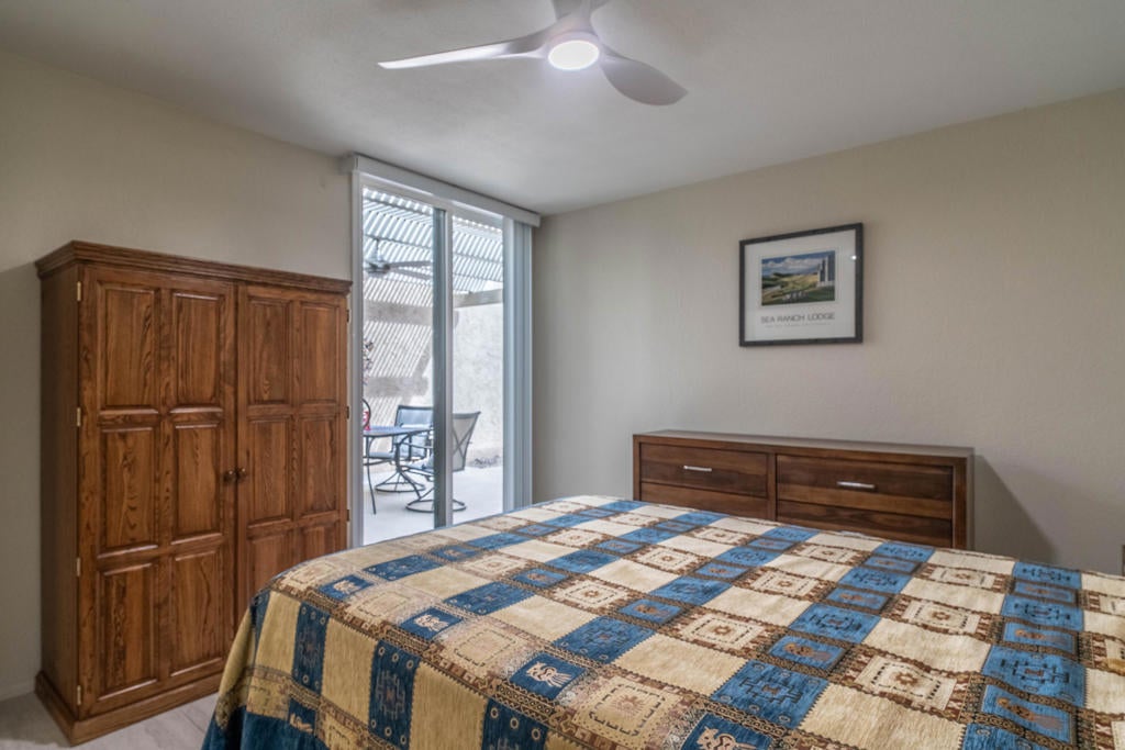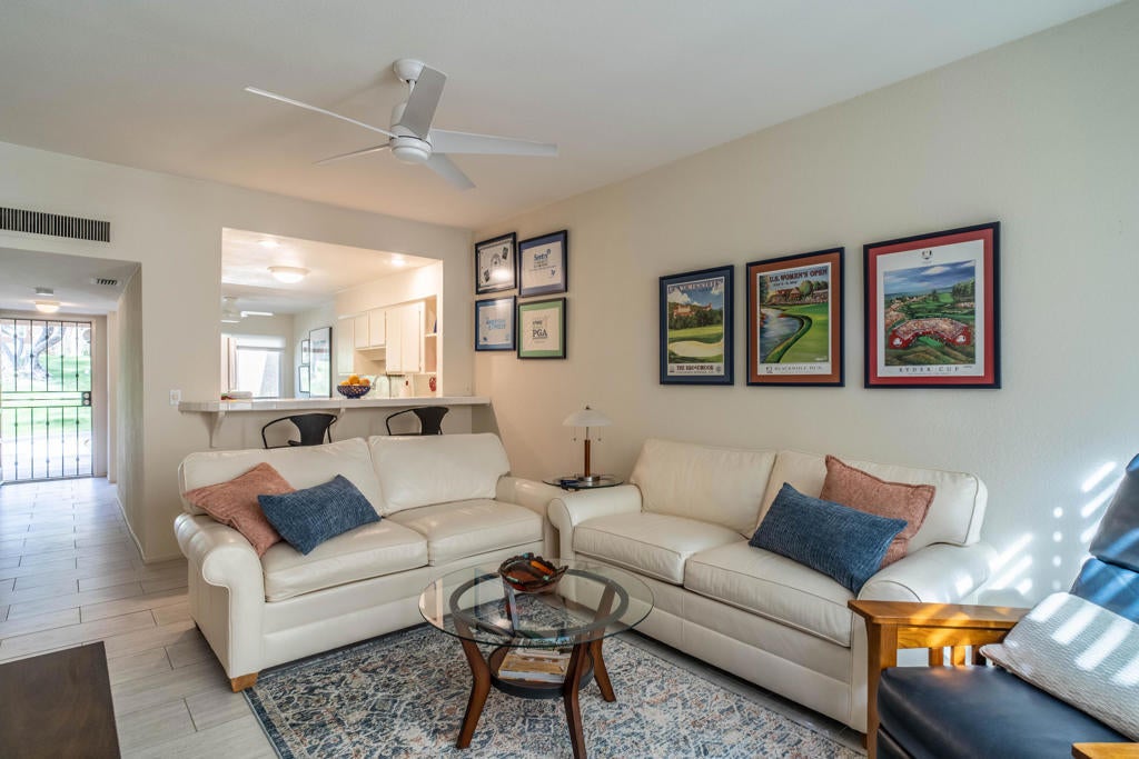 Discover your quiet desert getaway inside the gated community of Corsican Villas in the heart of South Palm Desert. This single-story, 2-bedroom, 2-bathroom condo features a light and airy floor plan accented by newer wood-look tile flooring in a versatile neutral palette. The kitchen offers a sunny dining nook plus a breakfast bar that opens seamlessly into the living area. Relax in comfort in the primary suite, which includes a double-sink vanity, walk-in shower, and walk-in closet. Corsican Villas HOA fee covers water, cable/internet, roof maintenance, exterior paint/stucco, and grounds upkeep plus premium amenities, including four pools and spas, tennis/pickleball courts and a small putting green. Perfectly located across from The Living Desert and just minutes from the world-class shopping and dining on El Paseo.