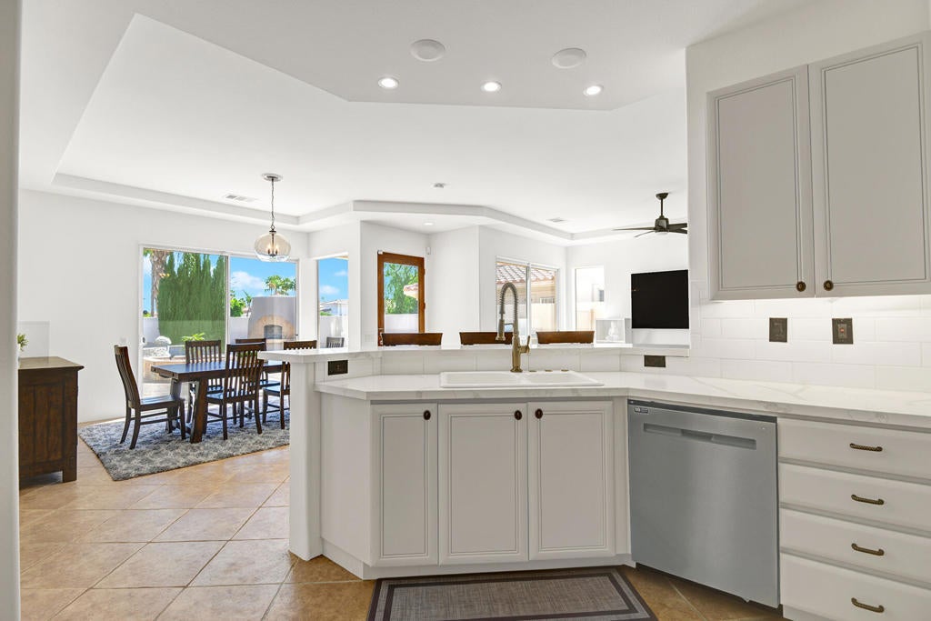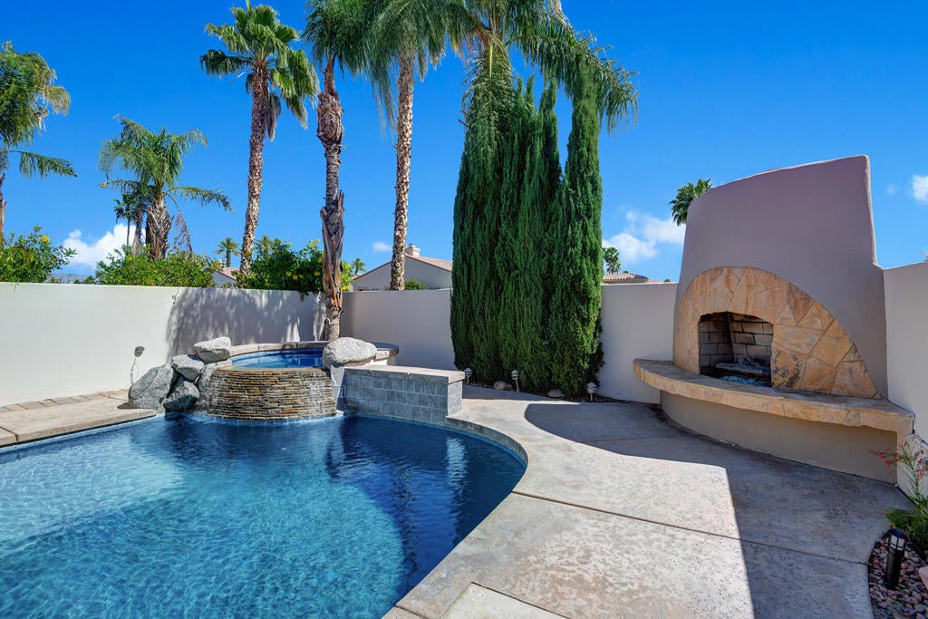Freshly Painted and Ready for Move-in! You will be immediately struck by the newly renovated kitchen space as you walk in the door, along with the ultra-functional layout that provides 3 spacious bedrooms and 3 full bathrooms, two of which are en suite! The pool area has been repainted and restored to boast ample space for family and friends to enjoy, including a built-in BBQ area and retractable awnings. The back patio provides another open space, great for young children or pets to roam about safely, with newly installed artificial grass. All new pool equipment installed in 2024, fully operational remotely from your phone! The community includes a pedestrian gate out of the community for quick access to Old Town La Quinta or The Citrus Club golf course. Don't miss out on this ready-to-go gem! Low HOA fees include a guard gate, exterior tree and yard maintenance, WIFI, Cable TV and trash collection.