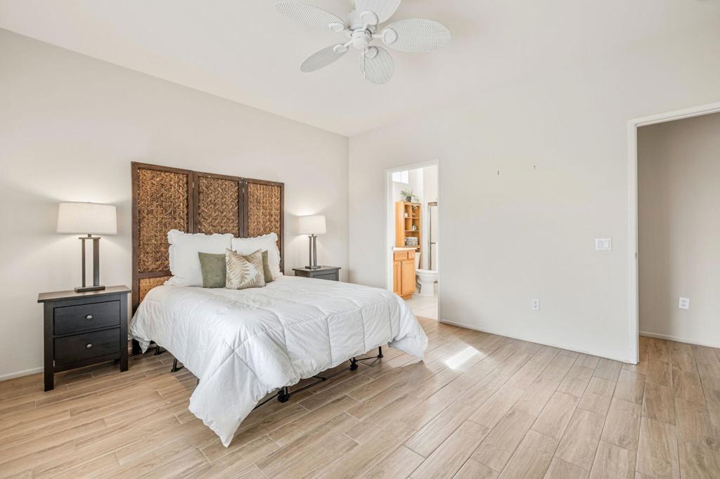 Located in the best 55+ community in the Valley, Sun City Palm Desert, this Pasadena model is one of the favorites. It has a NEW HVAC in 2024, Plantation Shutters throughout, 2 bedrooms, 2 bathrooms, and a 2-car attached garage. The kitchen opens to the living room with an open concept, and has a slider to the large, private backyard with an Alumawood cover, built-in BBQ, and extended patio. The master suite views the backyard and has a walk-in shower, and a walk-in closet. The guest bedroom has a Murphy bed, and is adjacent to the 2nd full bathroom. The 2-car garage has the laundry, which is included, and a newer hot water tank. This is a great home at a great price. SUN CITY PALM DESERT IS ALL ABOUT LIFESTYLE!! It has many clubs, activities, amenities, and low HOA dues. Play at 2 championship 18-hole golf courses and practice facilities, pickle ball, tennis, softball, bocci ball, an 18-hole miniature golf course, an honor library, arts and crafts, a ballroom for special entertainment, and 4 saltwater pools kept at 87 degrees with hot tubs. Enjoy 2 great restaurants, a martini/coffee bar, and even a post office. There is a newly renovated classy indoor/outdoor bar with fire tables to enjoy the awesome views and our beautiful desert weather.