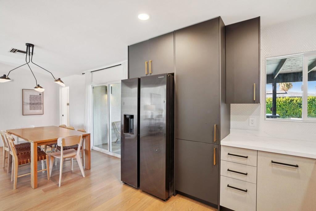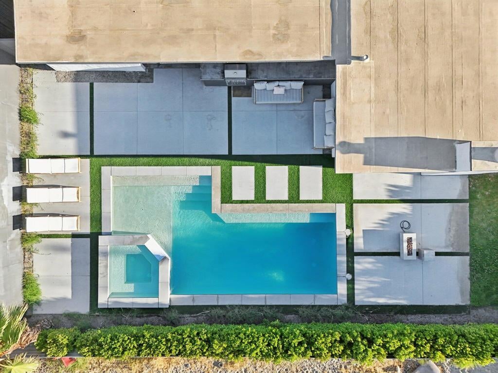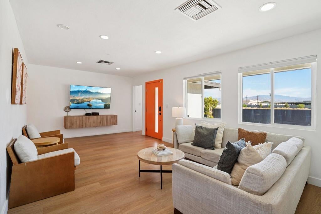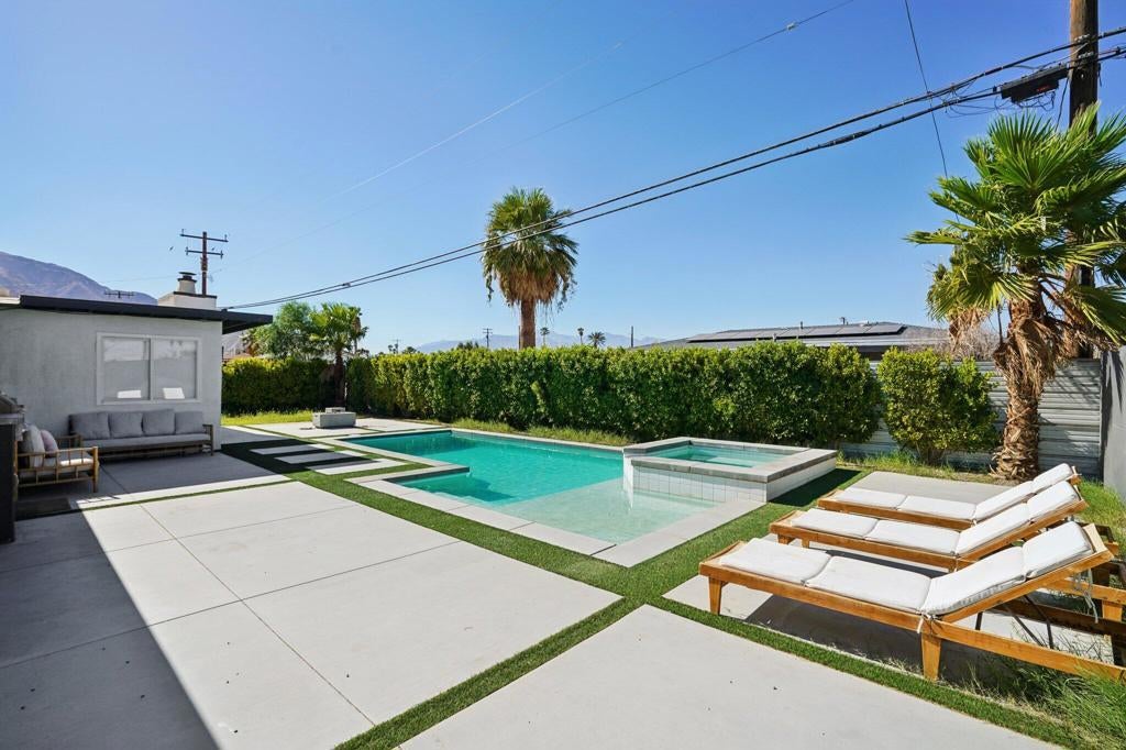TURN-KEY and fully remodeled, this vibrant mid-century masterpiece is move-in ready and packed with style, views, and endless possibilities! The moment you step inside this 4 bedroom, 3 bathroom, nearly 1,900 SF home, modern design and sleek finishes welcome you at every corner. The open living room flows effortlessly into a chef's dream kitchen, complete with Italian-imported cabinets, black stainless steel appliances, quartz countertops, counter to ceiling white penny round tile backsplash, floating shelves, and a floor-to-ceiling pantry- perfect for cooking, entertaining, and showing off in style! Step outside and prepare to be amazed--this backyard is the ultimate desert playground! A covered patio with a 16-foot bar, built-in grill, and mini fridge makes entertaining a breeze, while the brand-new landscaping and hardscape frames a sparkling pool with raised spa and modern tanning shelf. And just wait until you see the jaw-dropping San Jacinto Mountain views! There's even a separate seating area with a gas fire pit, making this the ultimate hangout spot day or night. Back inside, the primary suite is cozy with a spacious seating area, show stopping fireplace and tons of natural light making this the perfect private retreat. The spa-inspired bathroom featuring a dual vanity, fully titled walk-in shower, and an oversized walk-in closet (a rare find in mid-century homes!). Plus, with direct access to the backyard, your morning coffee or evening unwind has never looked better. The 3 other guest bedrooms are just as nice and inviting for all of your family and friends. The game room is truly an added bonus to this home with 2 arcade consoles, foosball table, air hockey, and space to watch all of the big sporting events! And here's the kicker--this property isn't just gorgeous, it's a money-maker too. With peak season rental rates around $450 per night, it's the perfect high-performing short-term rental, vacation getaway, or forever home. This Palm Springs stunner has it ALL--style, views, and income potential. Don't wait... your dream lifestyle starts here!