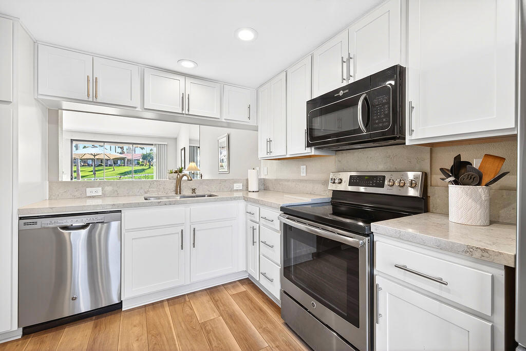 Welcome to this beautiful south-facing Jacaranda in sought-after Palm Valley Country Club, where desert living feels effortless. With a remodeled kitchen, new flooring, and a light, open layout, this home is truly move-in ready, just bring your personal touches and start enjoying the lifestyle. Featuring two bedrooms and two baths, the open-concept design creates a comfortable flow perfect for relaxing or entertaining. Enjoy morning coffee in the private courtyard or unwind on the fairway patio surrounded by mountain views, swaying palm trees, and a peaceful, serene setting that captures the beauty of the desert. The garage has Epoxy flooring too.Whether you're looking for a seasonal retreat or a full-time home, this property offers the perfect blend of comfort, style, and the easy indoor-outdoor living Palm Valley is known for. Palm Valley Country Club offers true resort-style living with two golf courses, one championship course and one challenge course. A state-of-the-art fitness center, restaurants, and a warm, welcoming community. Come experience relaxed desert living at its finest Come experience the sunshine, the views, and the lifestyle waiting for you here. ☀️🌴